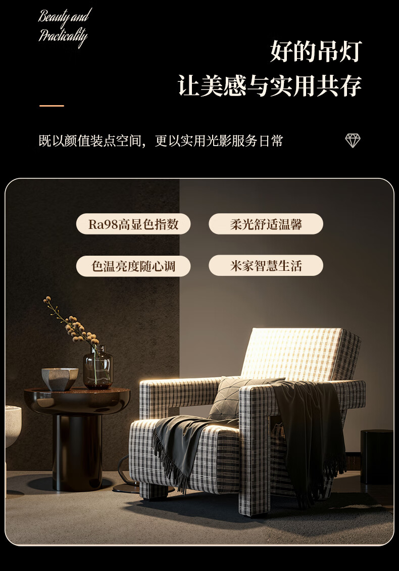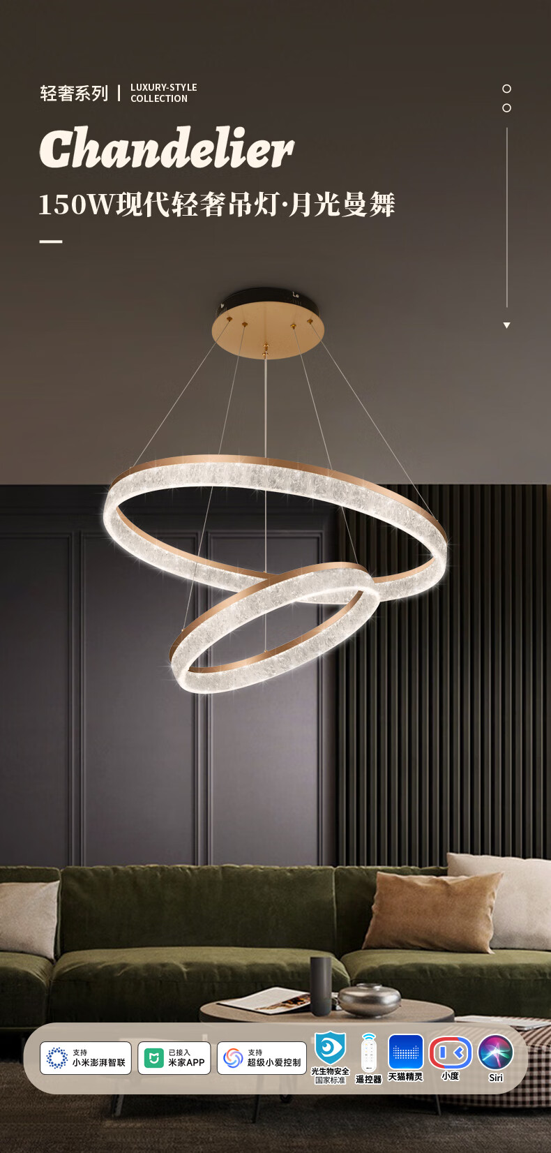 雷士照明全光谱现代简约轻奢法式高级感护眼客厅吊灯卧室吊灯新款灯具轻奢 【月光曼舞】60W智能RA98全光谱