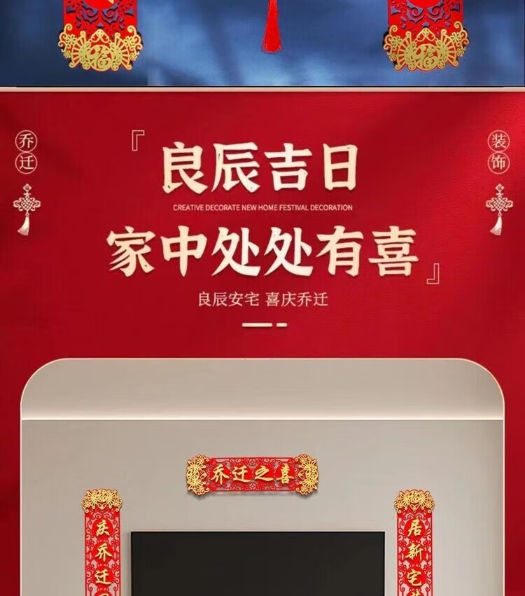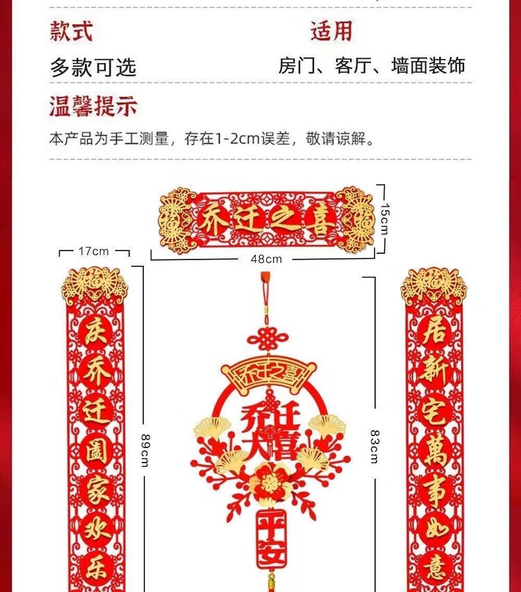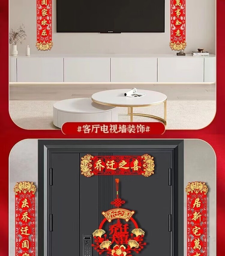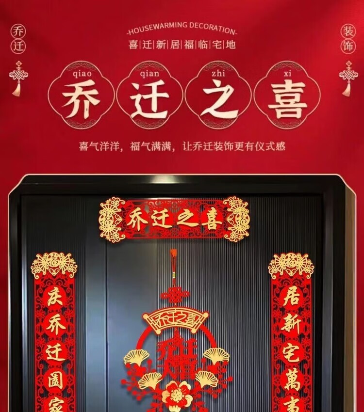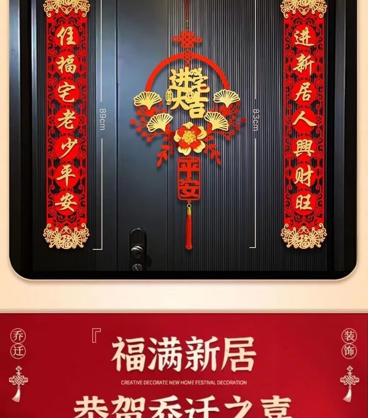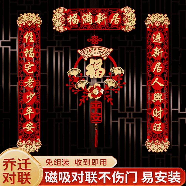 OYKTN磁吸乔迁之喜对联搬家仪式新居入宅挂件装饰新房大门门贴用品福字 【磁吸款式对联】针对铁门使用 A款进宅大吉对联【只有对联】