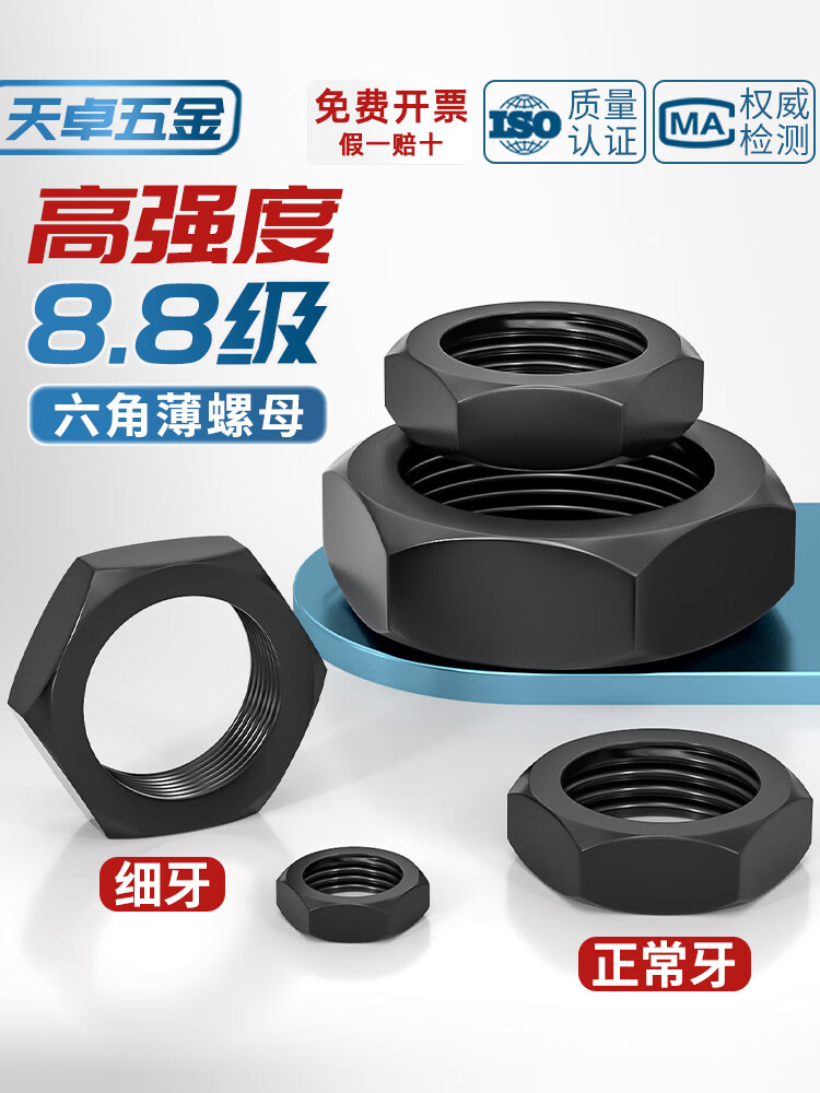 天卓五金8.8级细牙六角薄螺母扁螺帽MM8M10M12M14M16M18M20*1*1.25*1.5*2 ---以下为【薄细牙GB6173】---