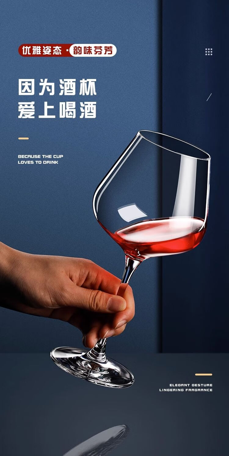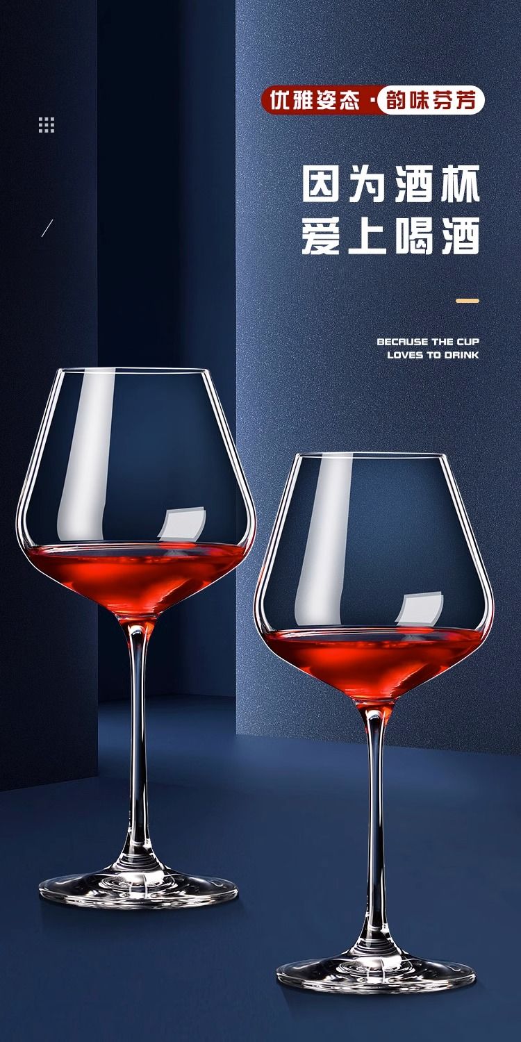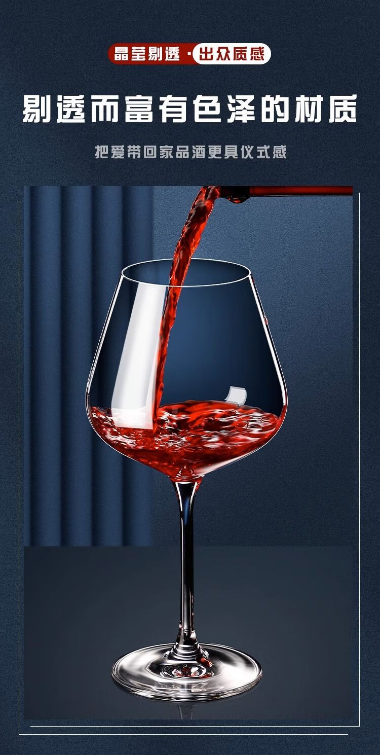 简漾大肚勃艮第红酒杯套装家用水晶玻璃葡萄高脚杯创意大号醒酒器杯子 勃艮第550ml-2只装