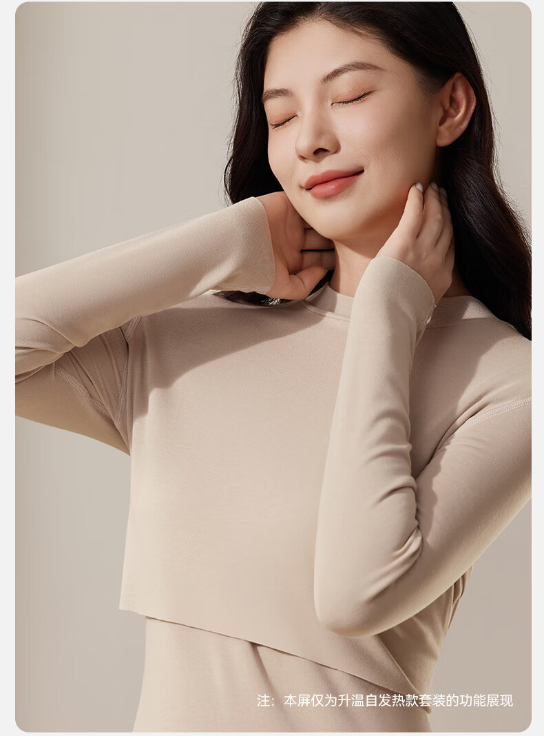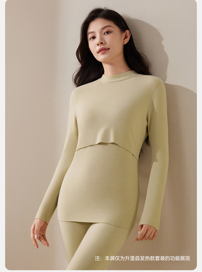 十月结晶秋衣裤套冬季孕产妇保暖内衣睡衣半高圆领打底衫带胸垫 丝雾棕L