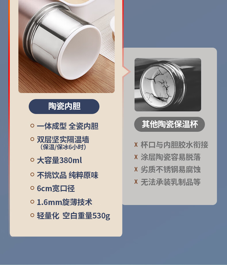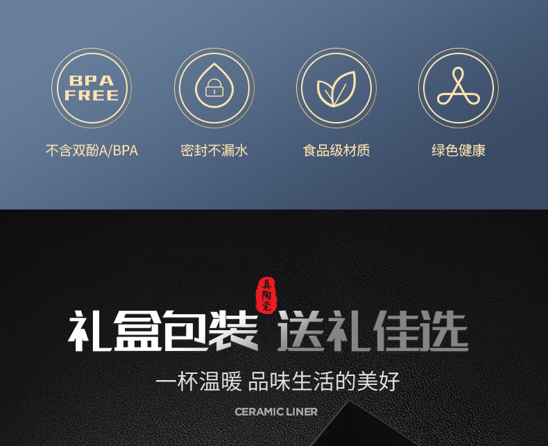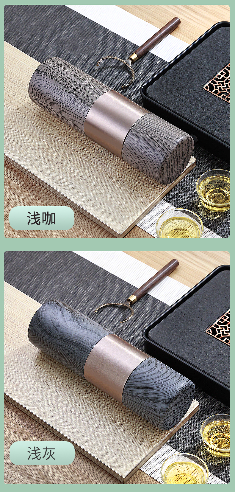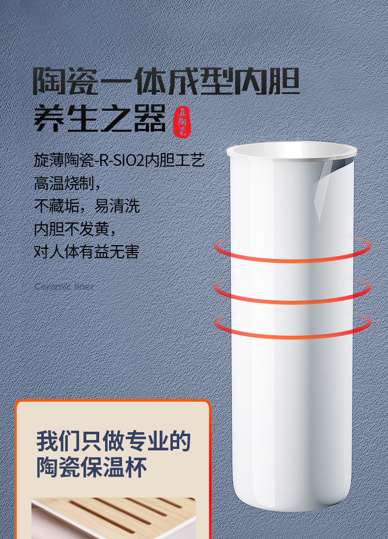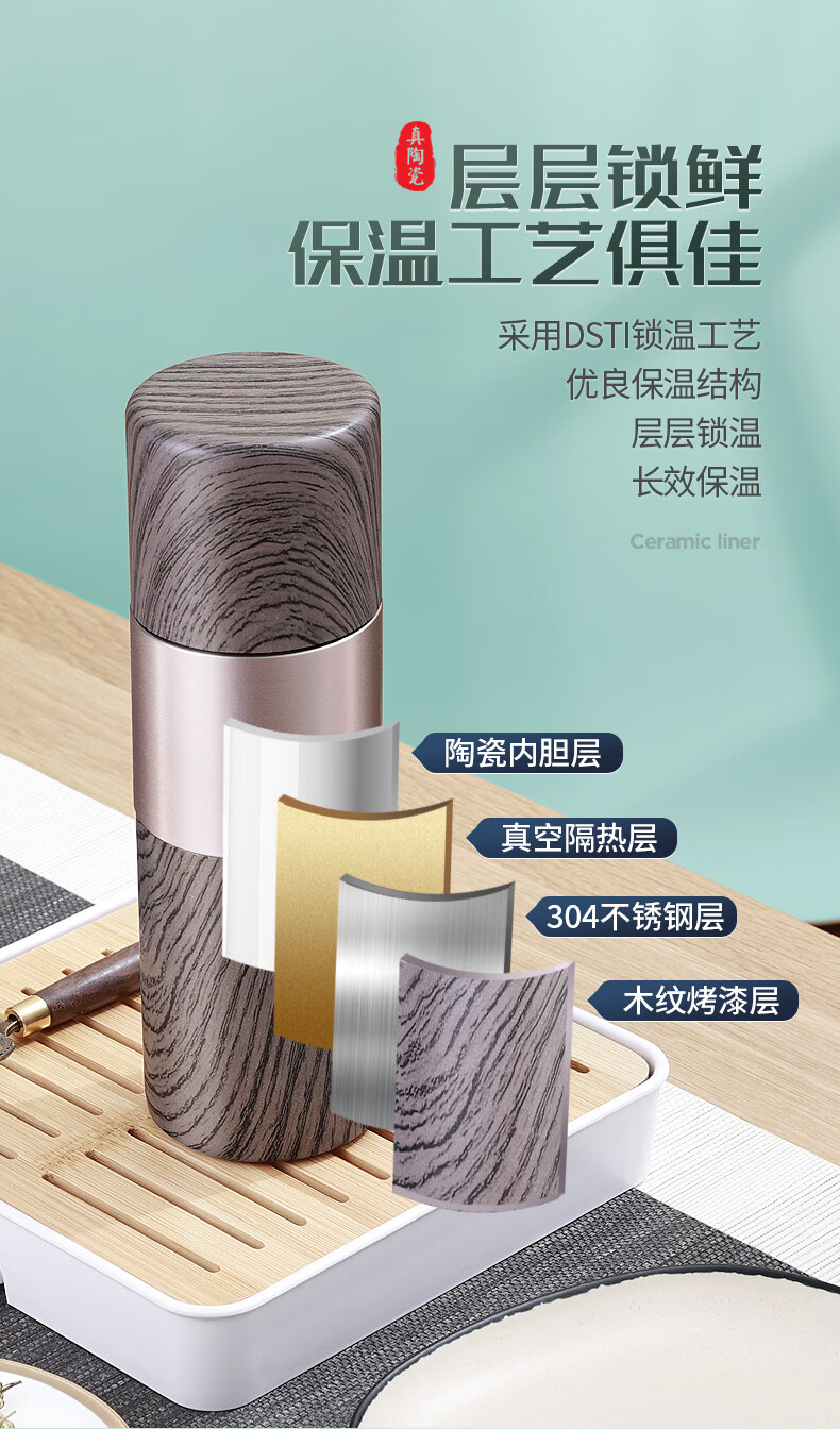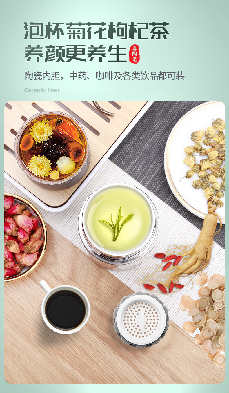 GROOT陶瓷内胆保温杯木纹运动便携水杯子男女办公室商务泡茶水杯礼品杯 升级款带陶瓷茶隔(浅棕色)