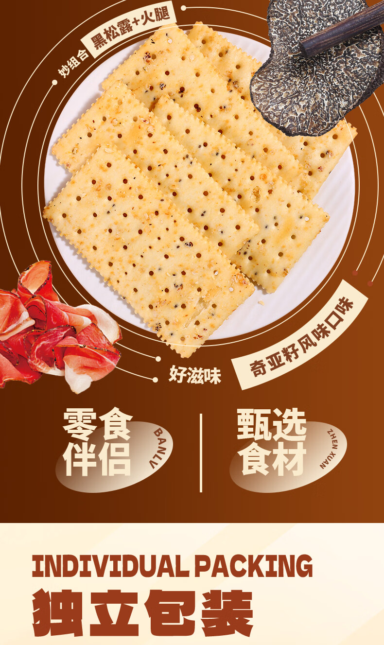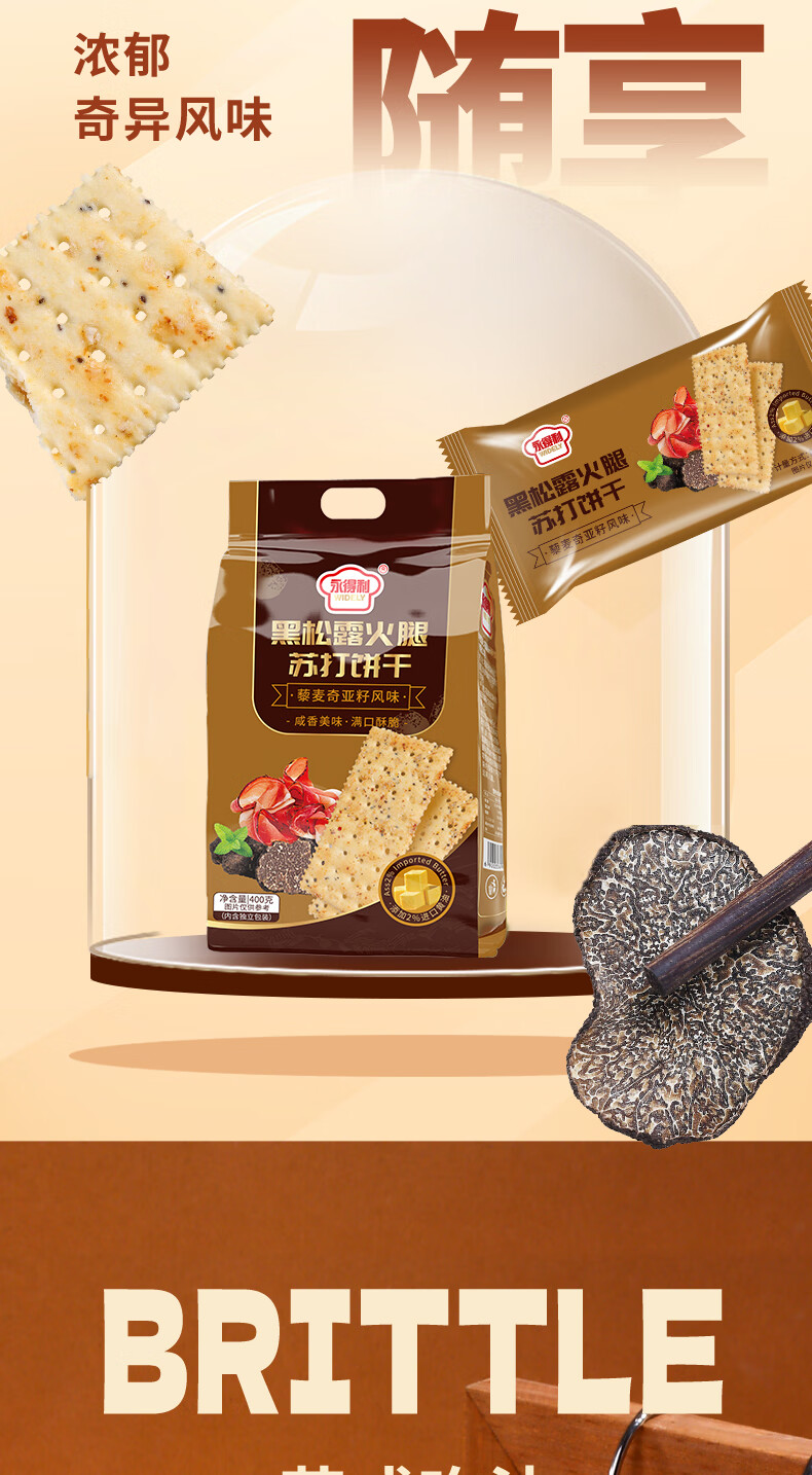 永得利(WIDELY)黑松露火腿苏打饼干400g酥脆薄饼休闲零食代餐梳打饱腹食品下午茶