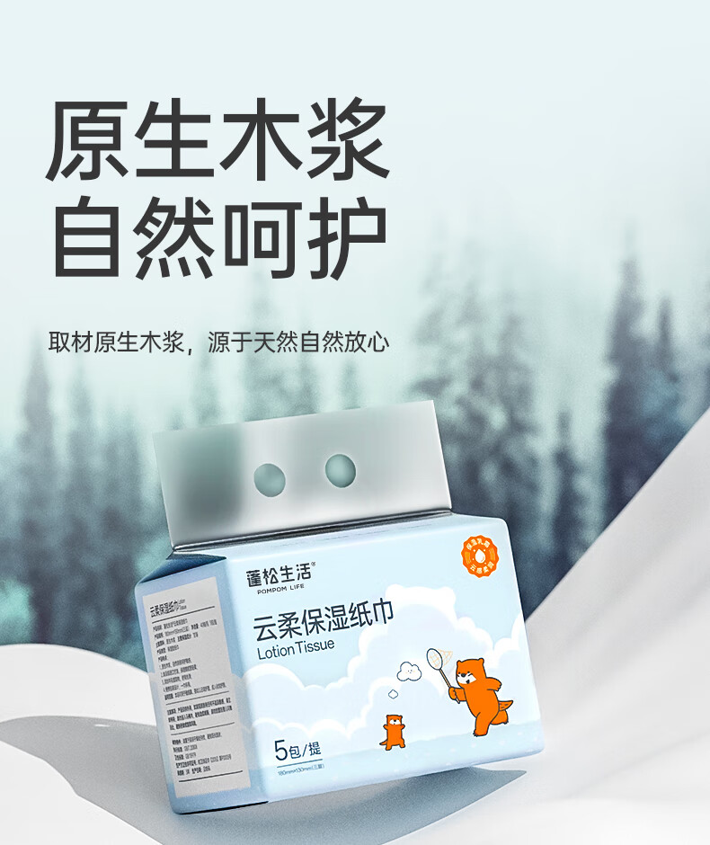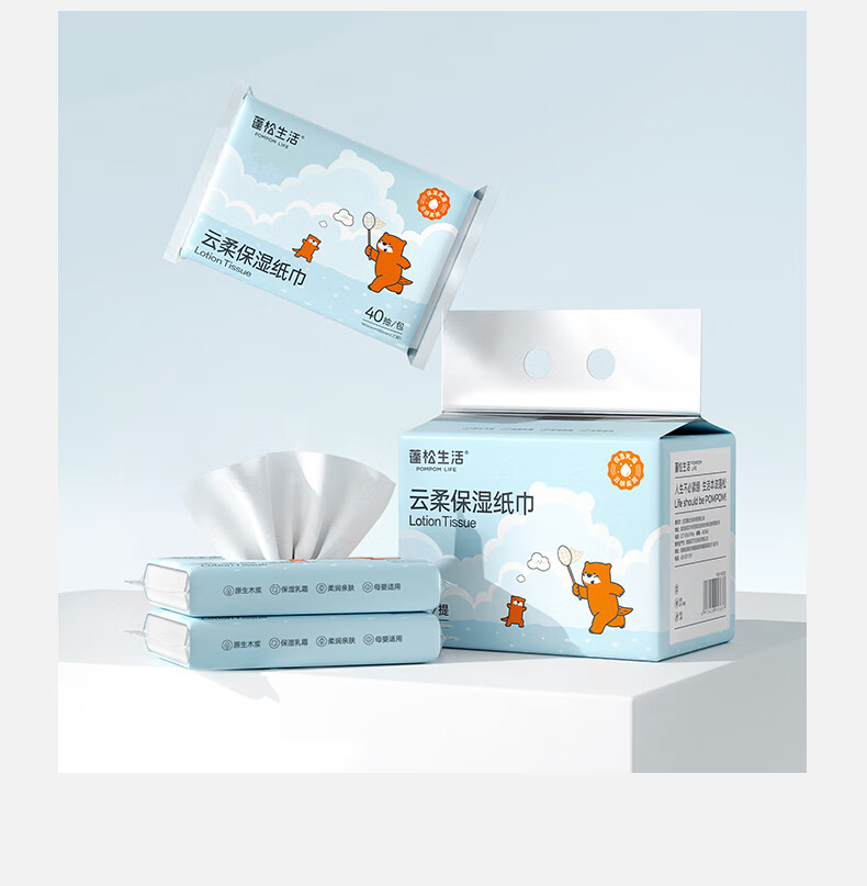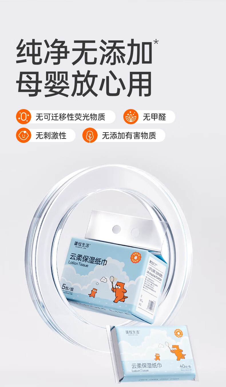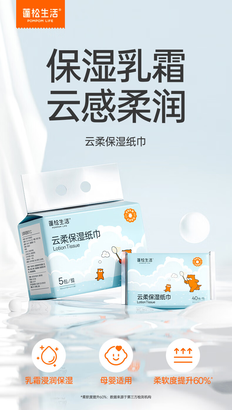 蓬松生活婴儿乳霜纸云柔巾3层40抽*5包保湿纸柔软新生儿宝宝便携装