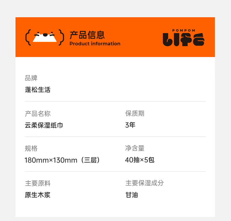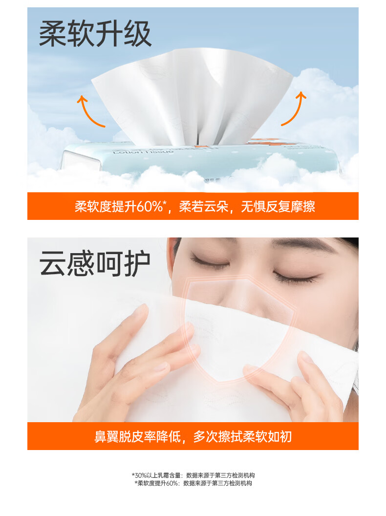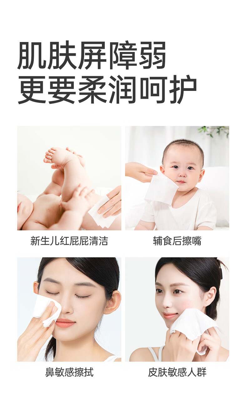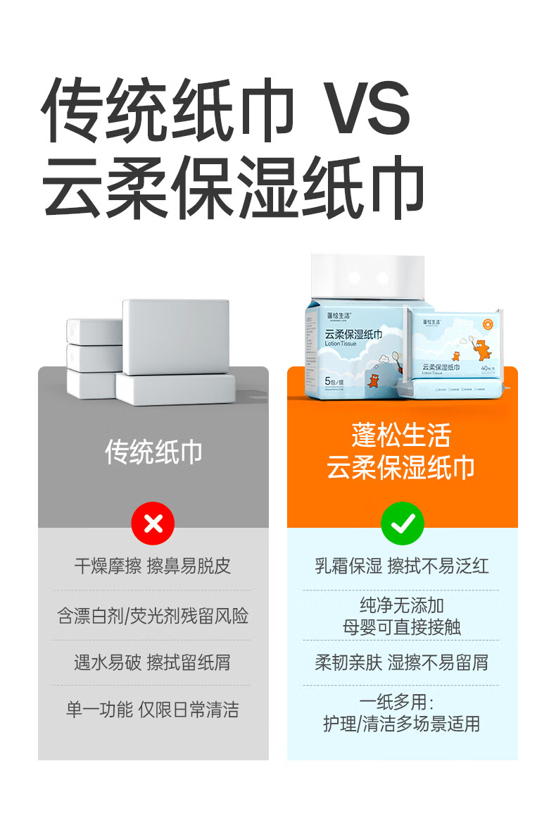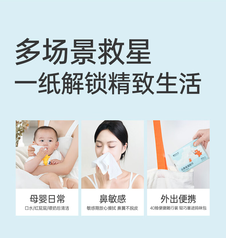 蓬松生活婴儿乳霜纸云柔巾3层40抽*5包保湿纸柔软新生儿宝宝便携装