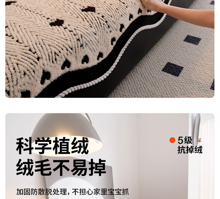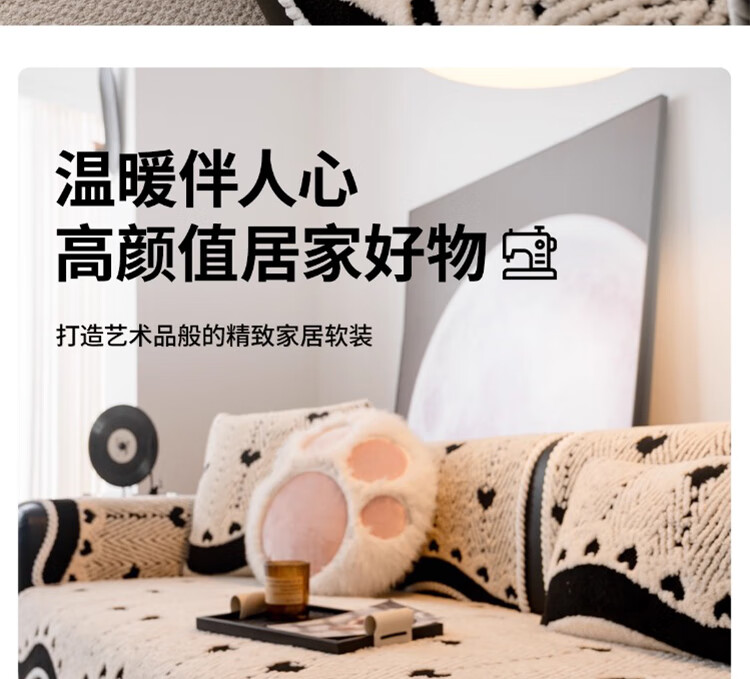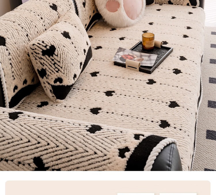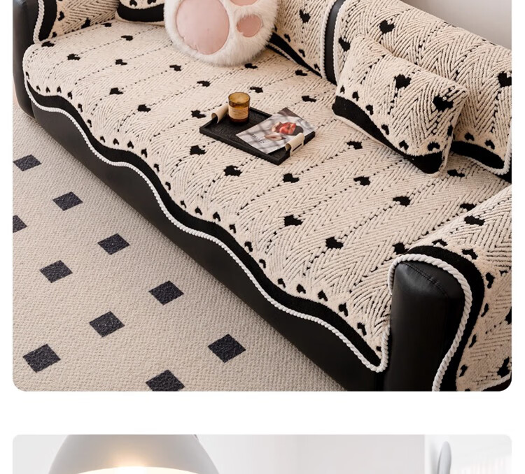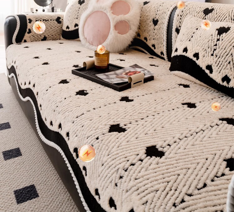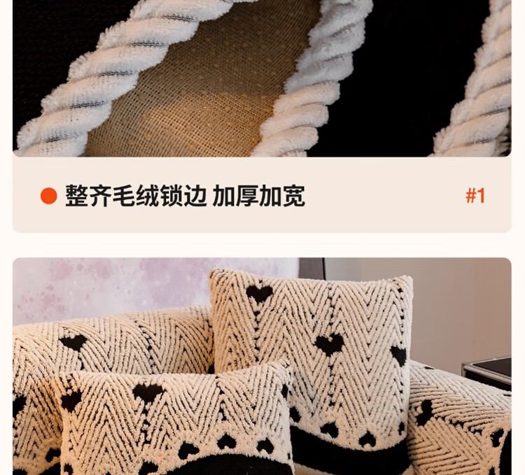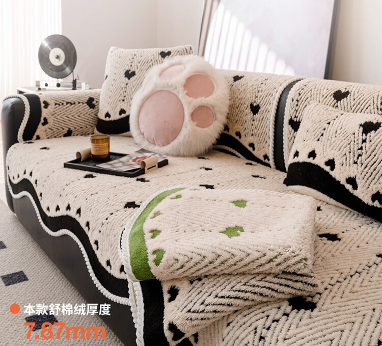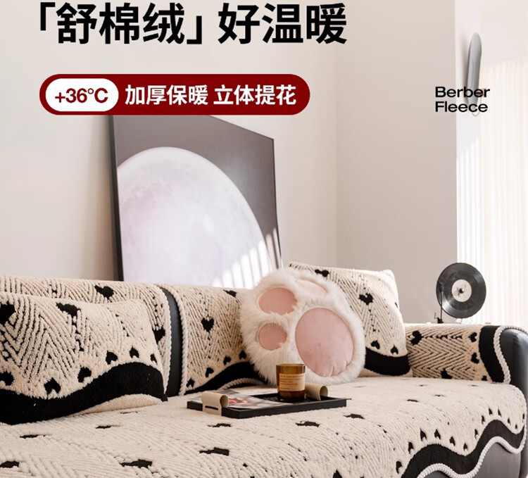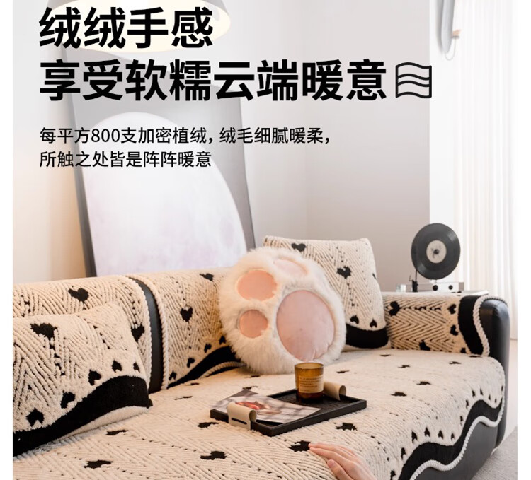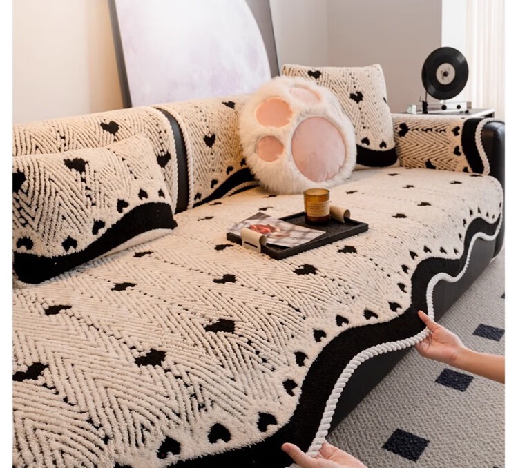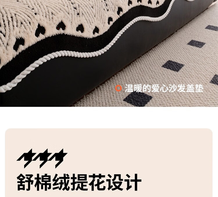 无印良品毛绒加厚沙发垫冬季2025新款皮沙发专用座垫固定防滑直排沙发坐垫 异形浪漫-黑色【亲肤级舒棉绒 | 一触即暖】 90*240cm (三人位/小四人位)