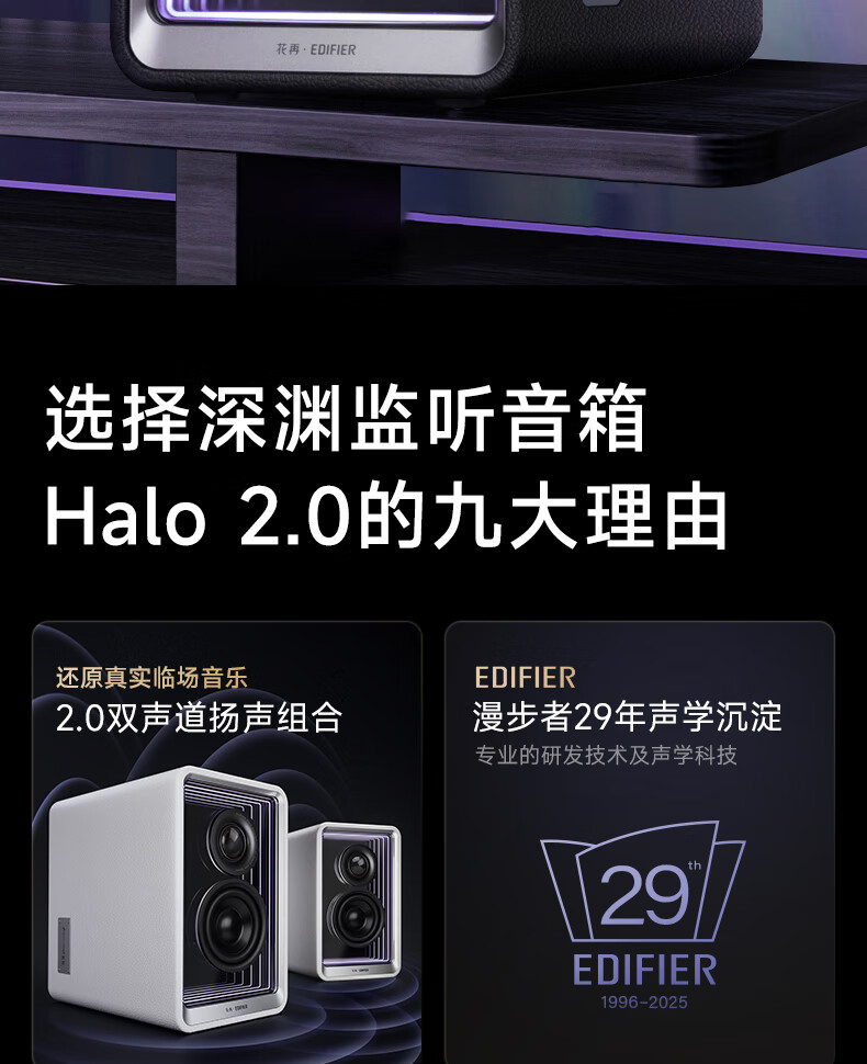 漫步者花再Halo 2.0 深渊监听音箱 蓝牙电脑音响 桌面音响 HIFI级音质 电视音响 客厅音响 破晓白