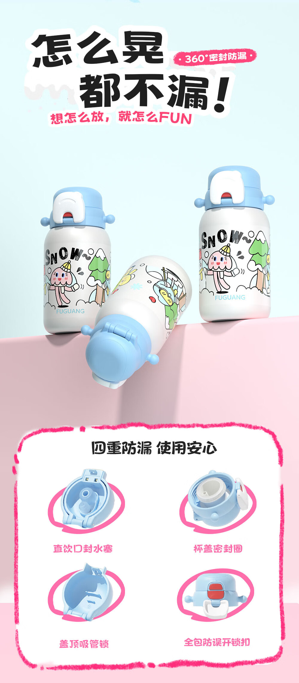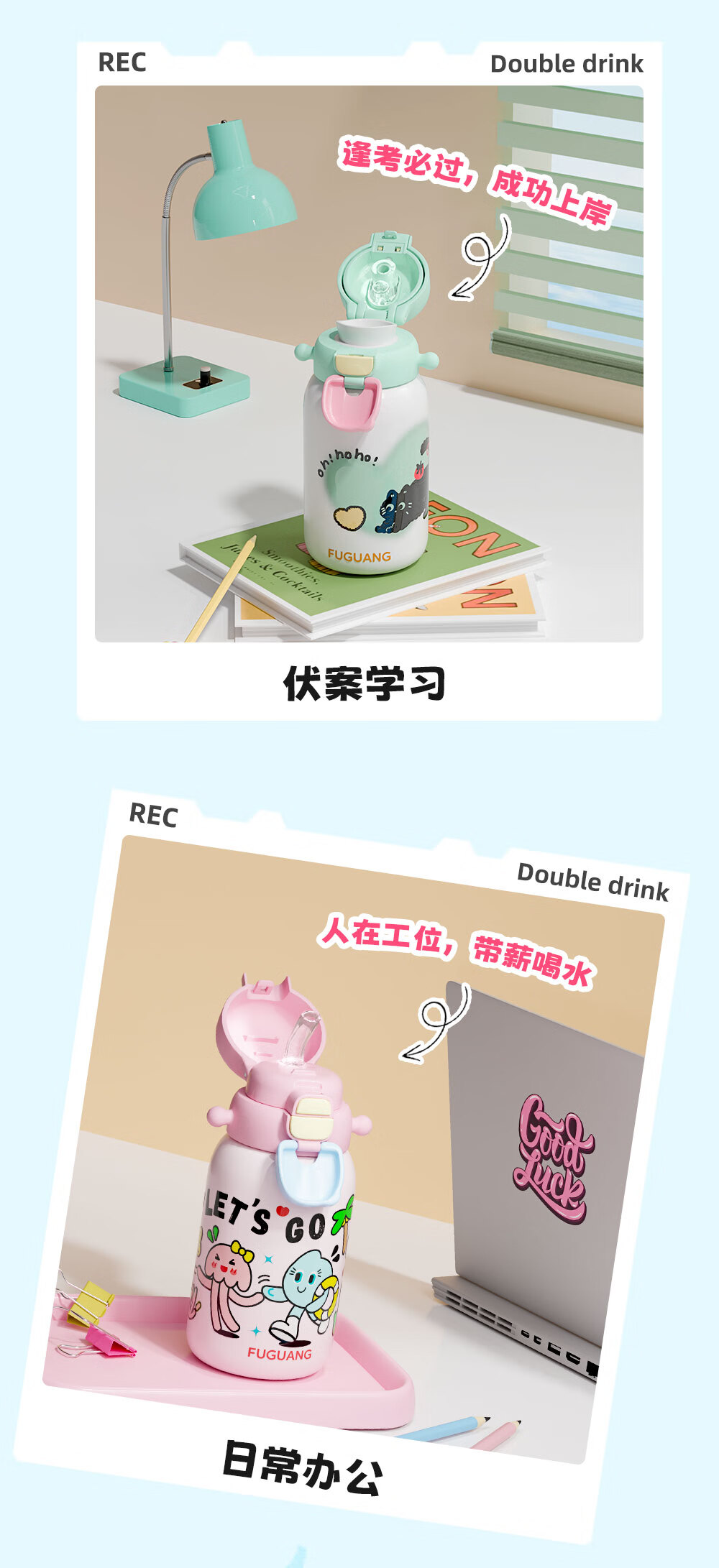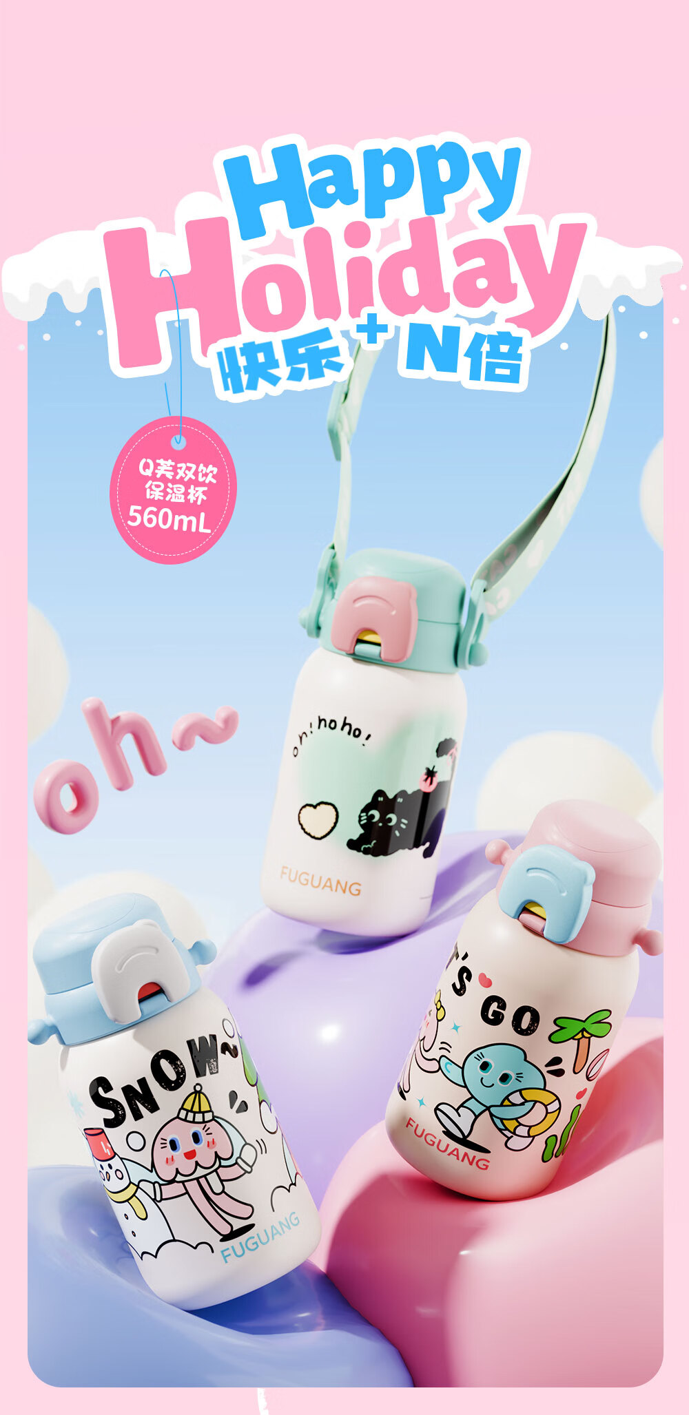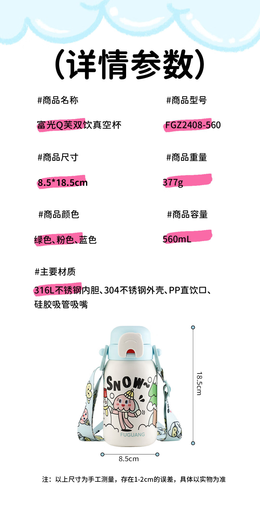FGA富光儿童保温杯316不锈钢女士高颜值吸管水杯学生大容量壶560ml