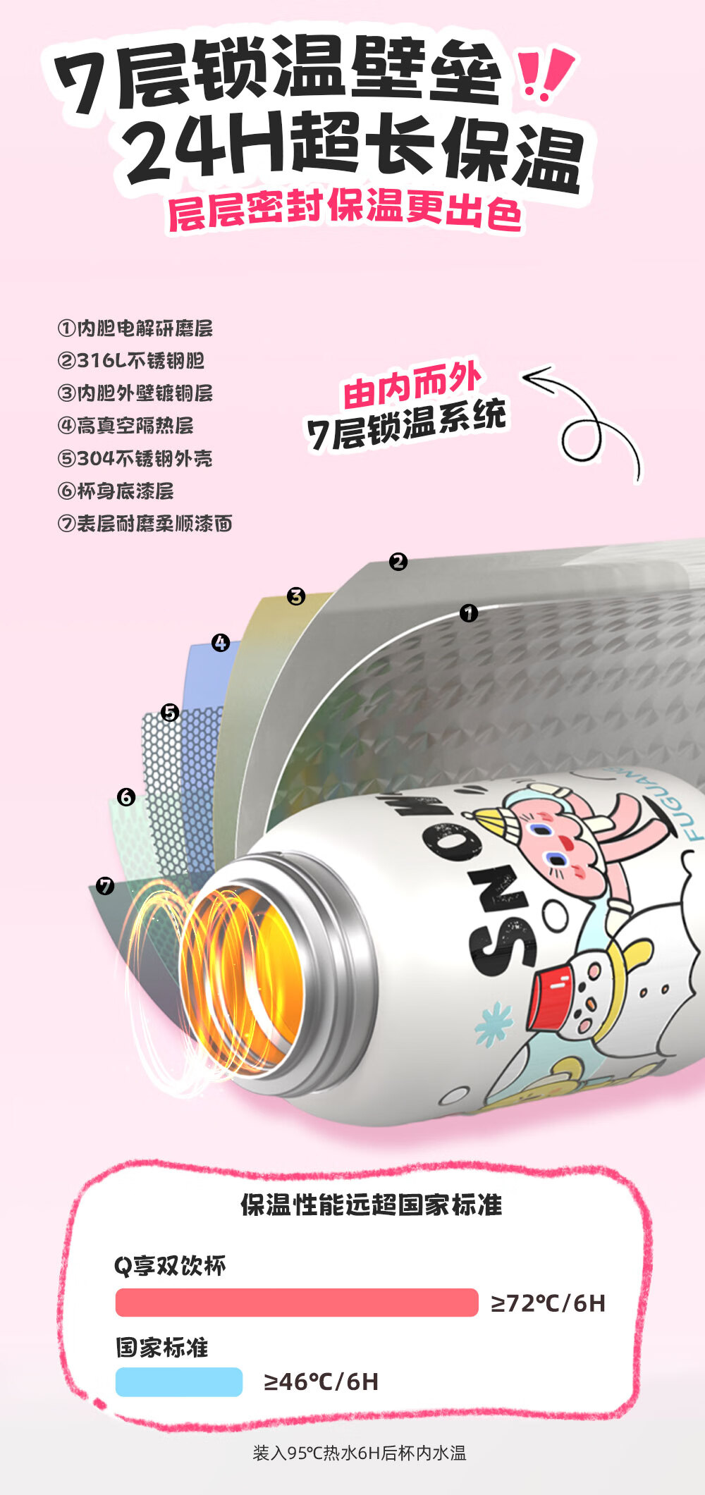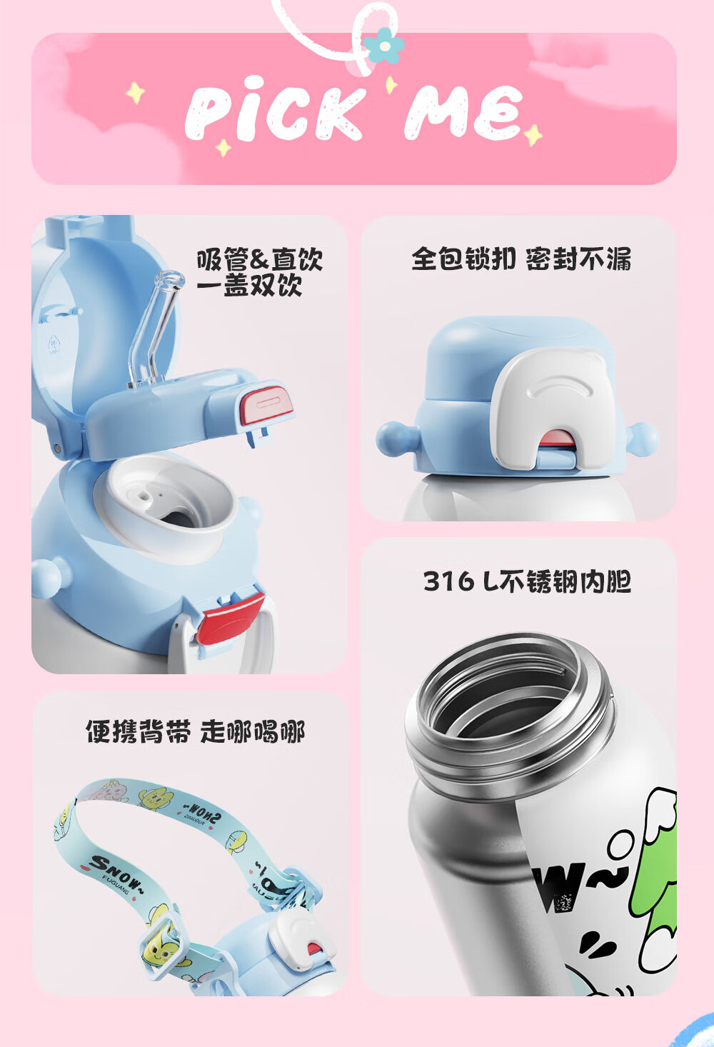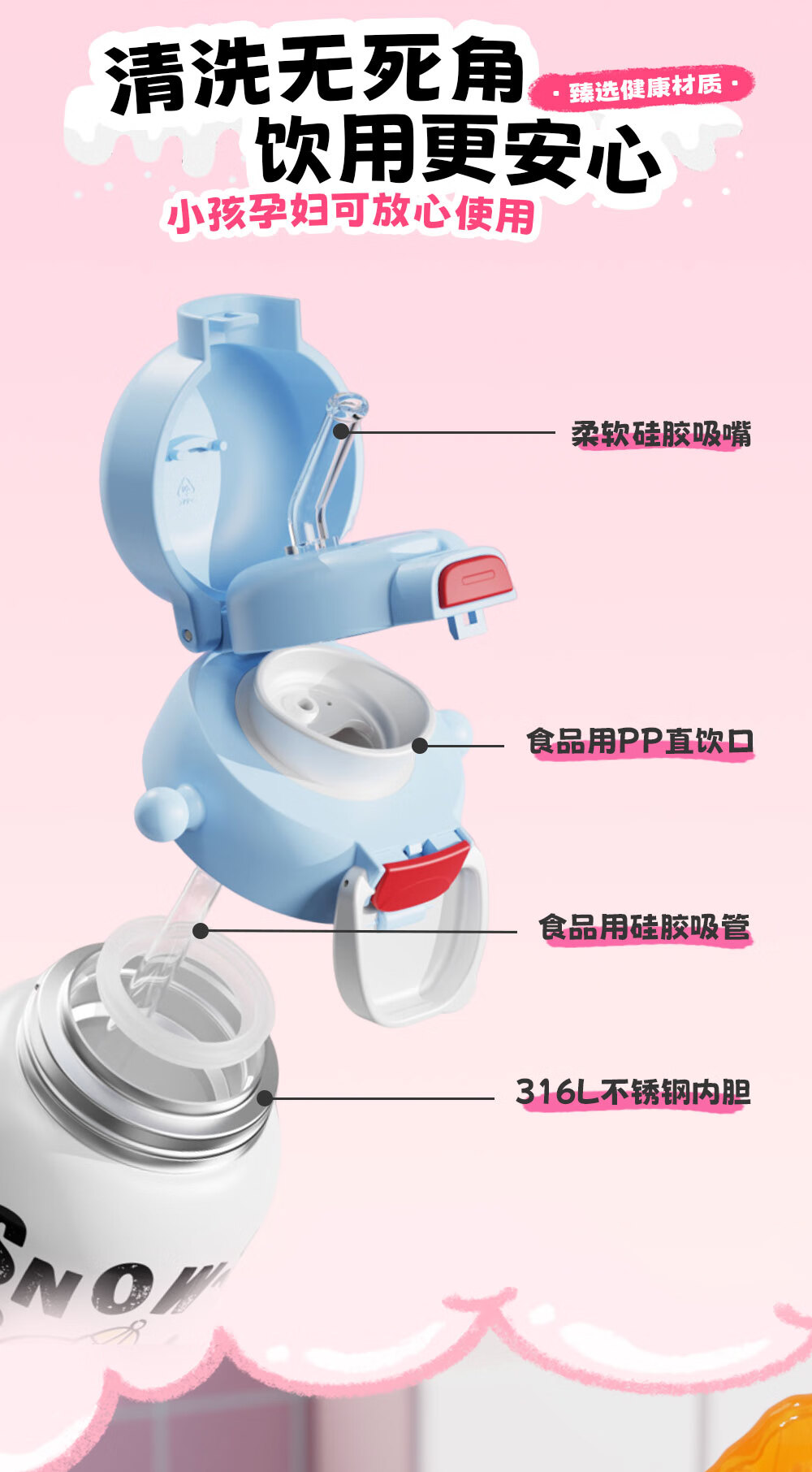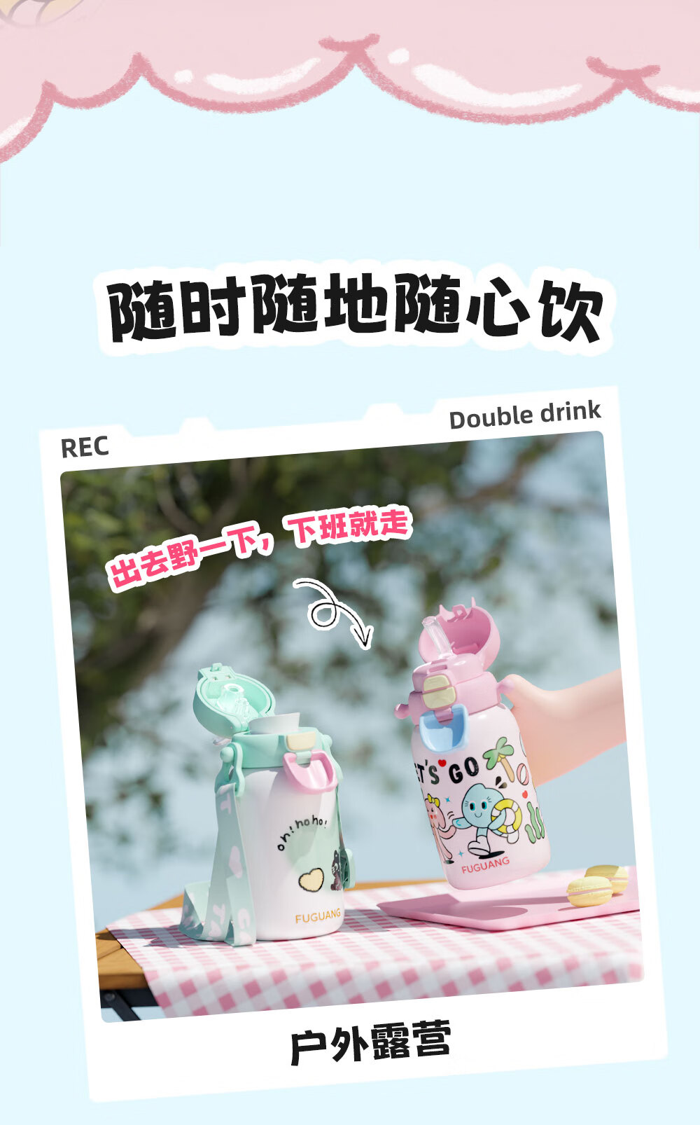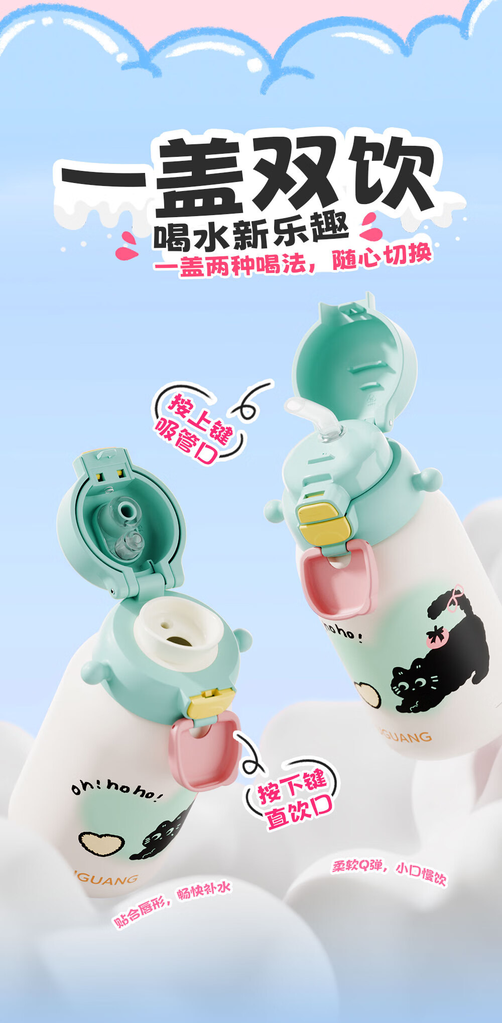 FGA富光儿童保温杯316不锈钢女士高颜值吸管水杯学生大容量壶560ml