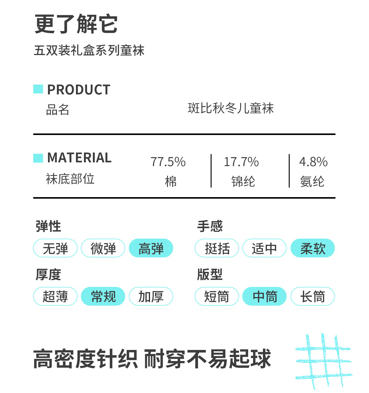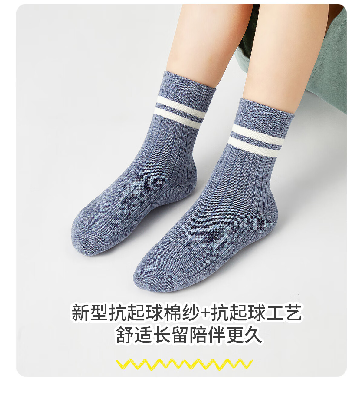 斑比儿童袜子秋冬季学生男孩大童春秋无骨中筒棉袜BB22512 22-24码