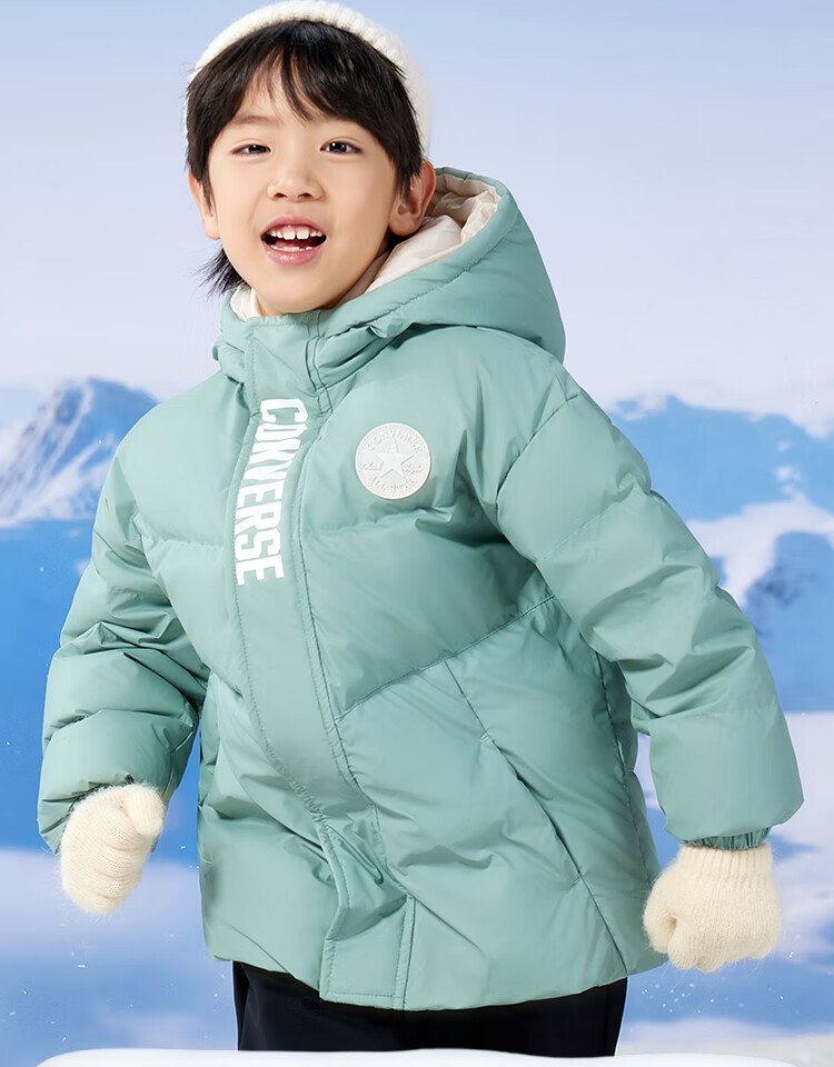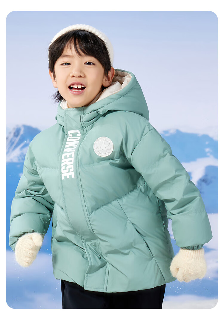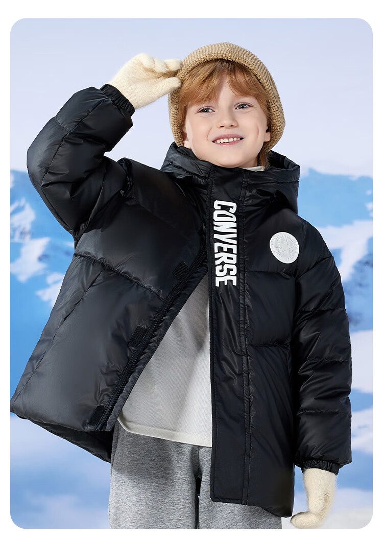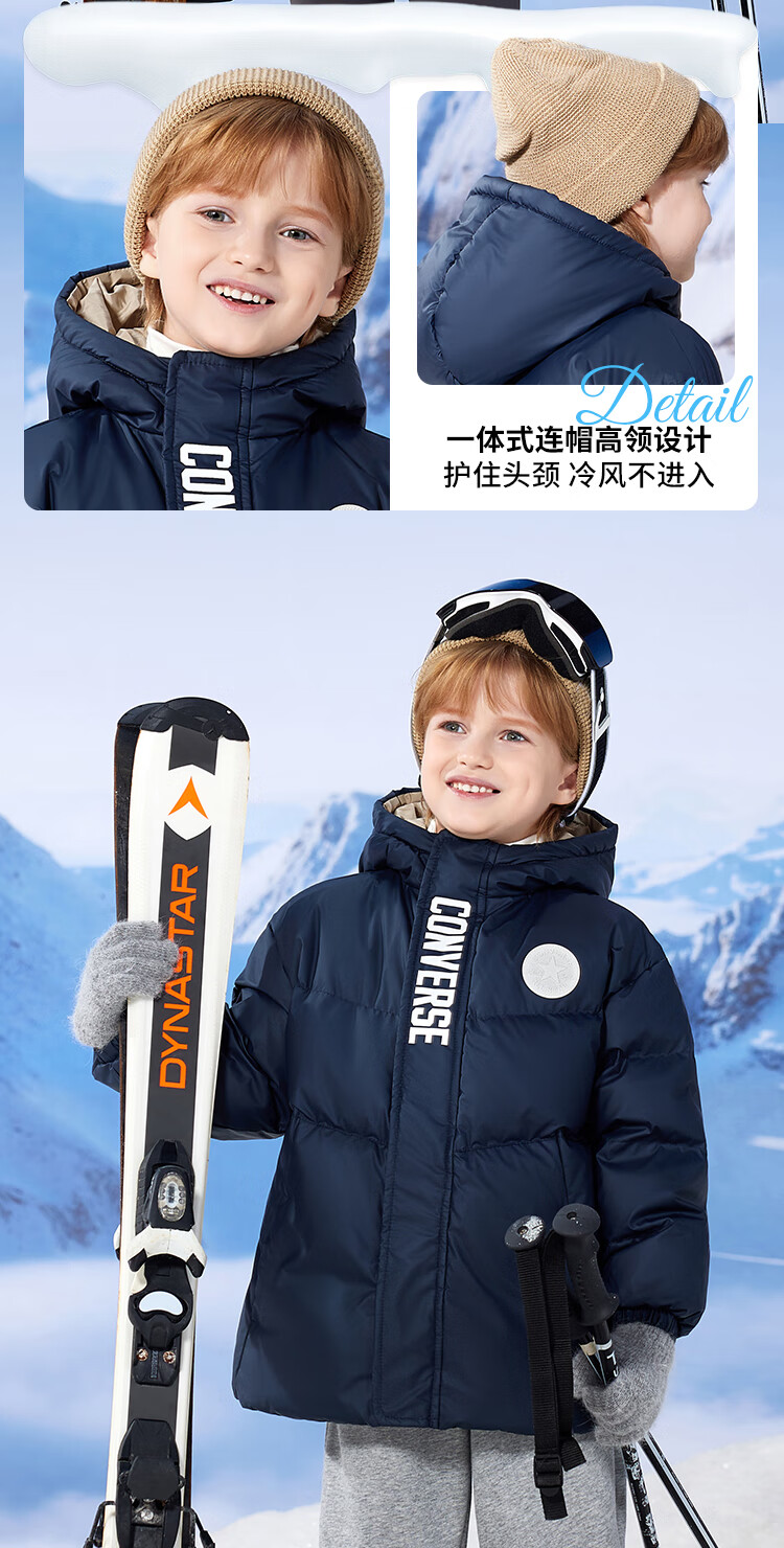Converse匡威儿童装新款泡芙柔软面包服保暖上衣男女童加厚短款连帽羽绒服 藏青蓝 140 /68 充绒量约143g 【建议身高128-140cm】