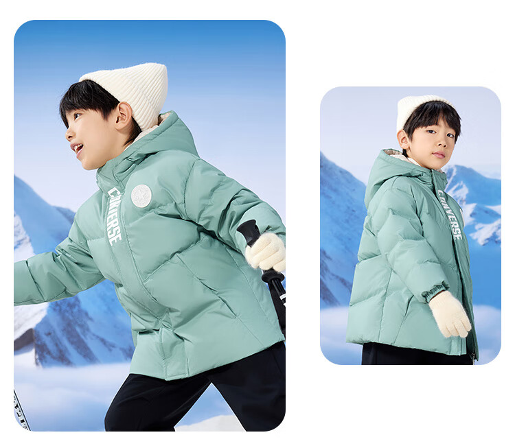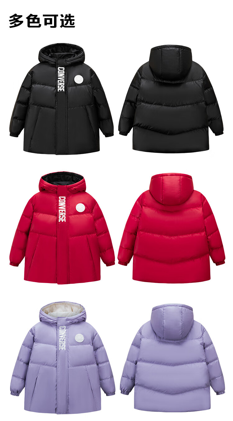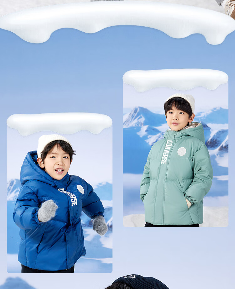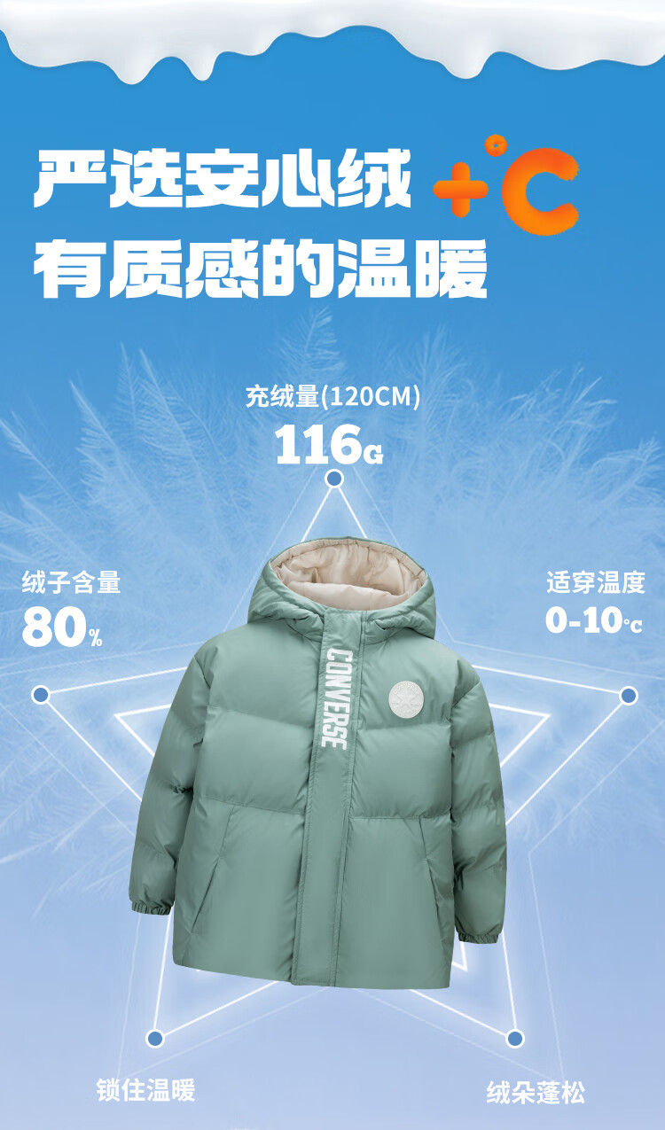 Converse匡威儿童装新款泡芙柔软面包服保暖上衣男女童加厚短款连帽羽绒服 藏青蓝 140 /68 充绒量约143g 【建议身高128-140cm】