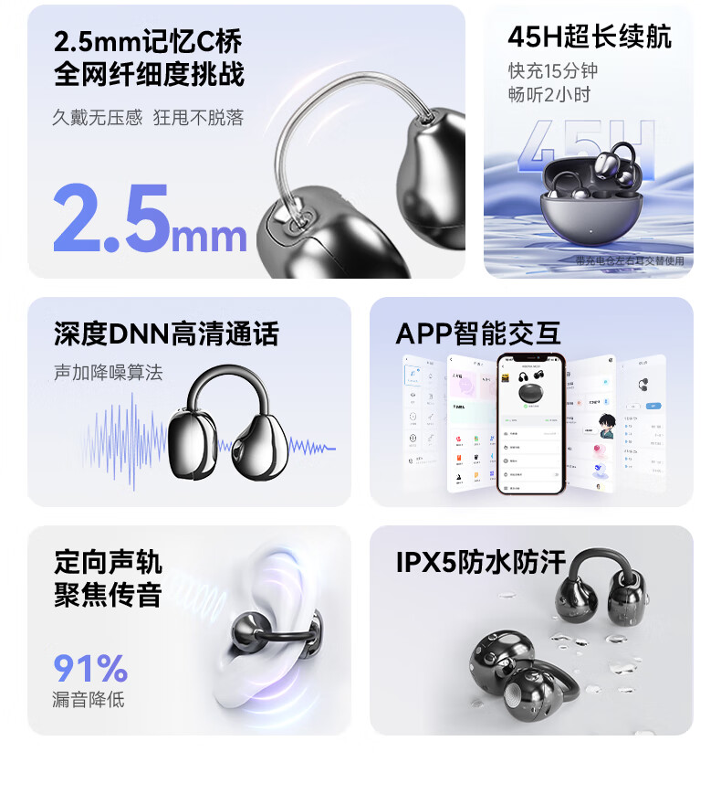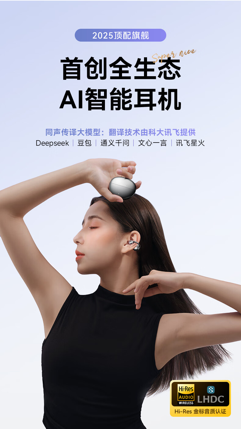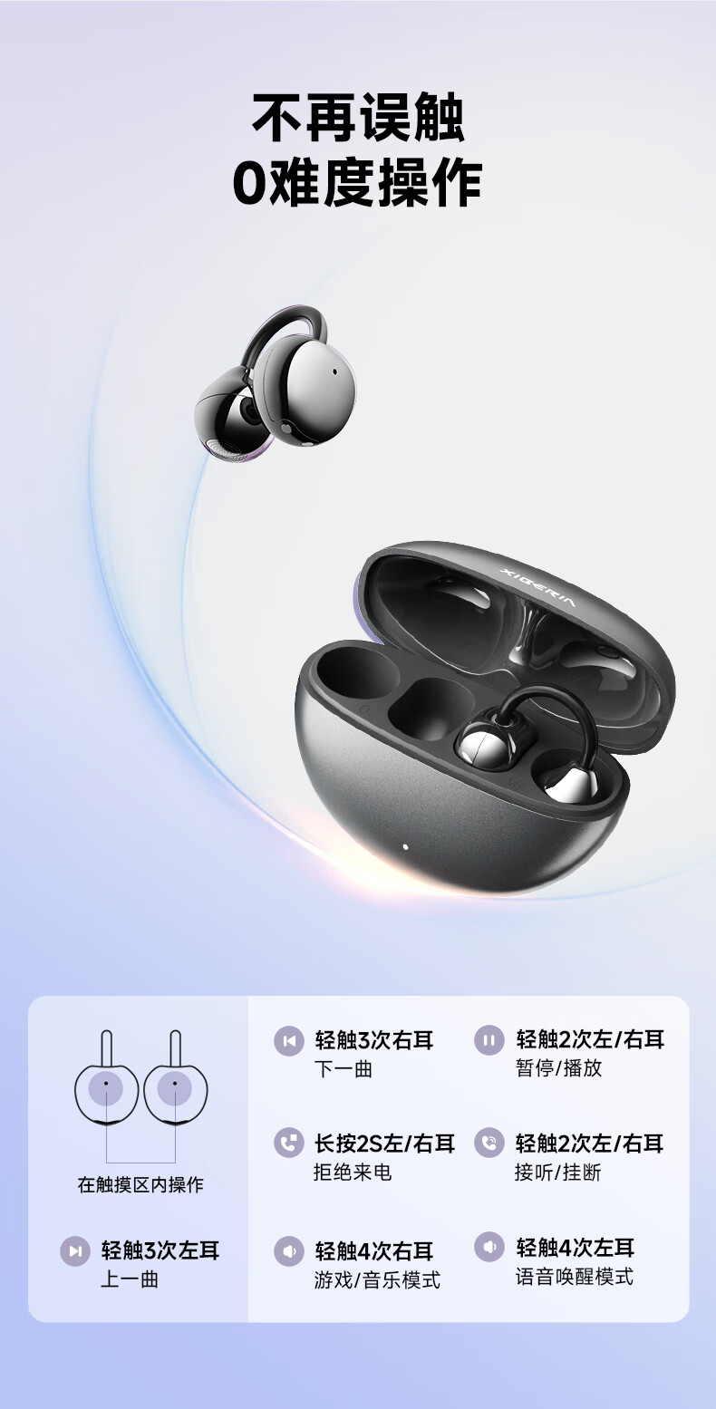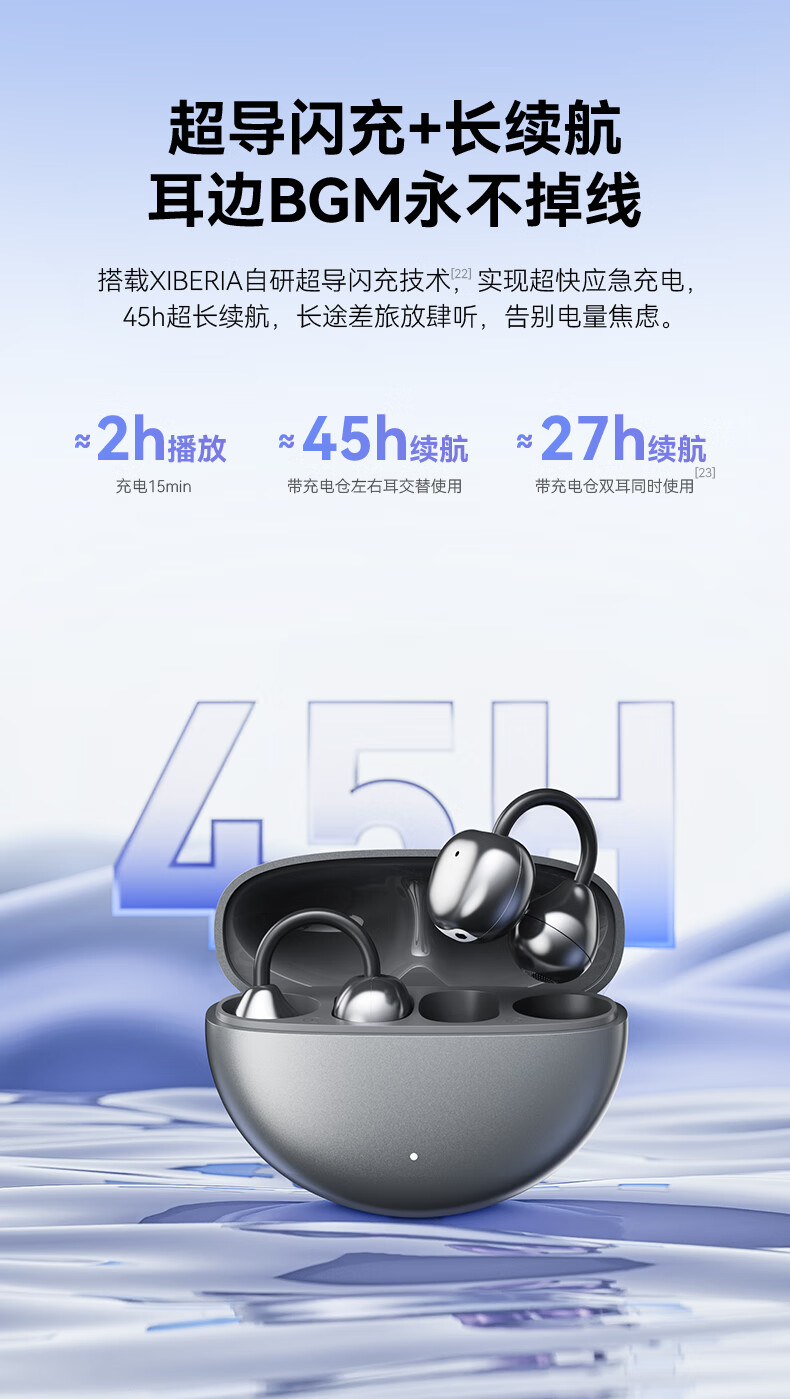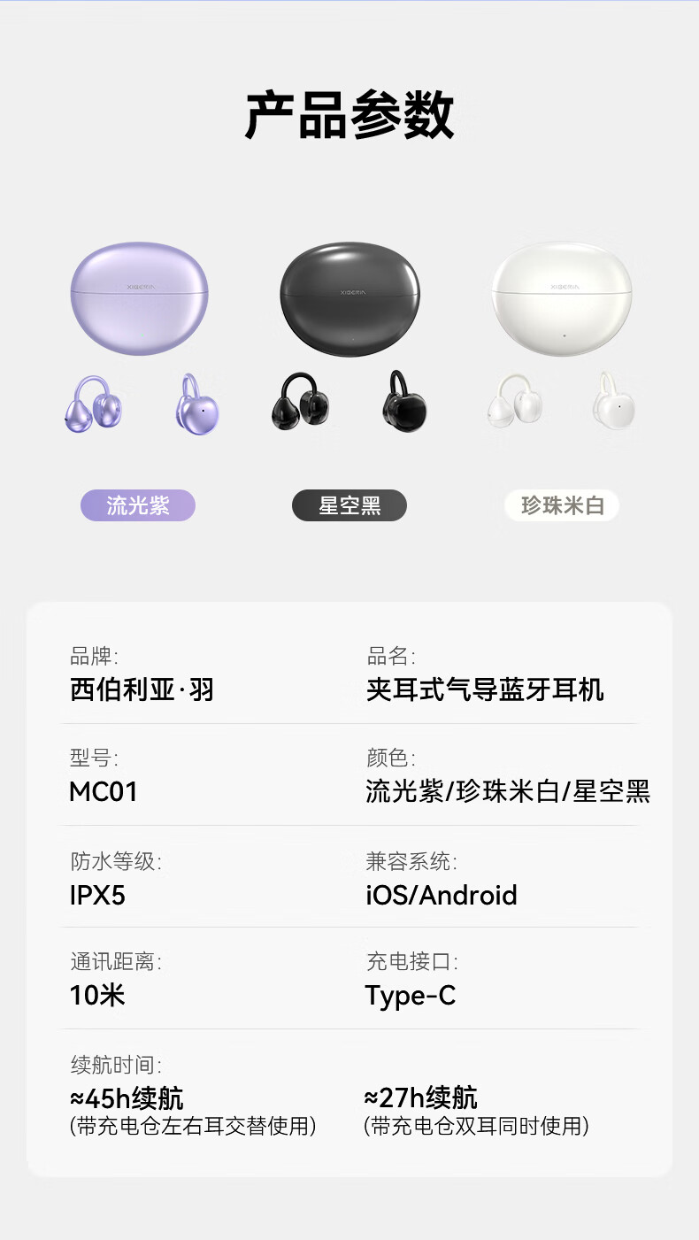 西伯利亚(XIBERIA)【明星同款】羽MC01蓝牙耳机耳夹式开放式运动耳机AI翻译耳机通话降噪骨传导无线挂耳星空黑