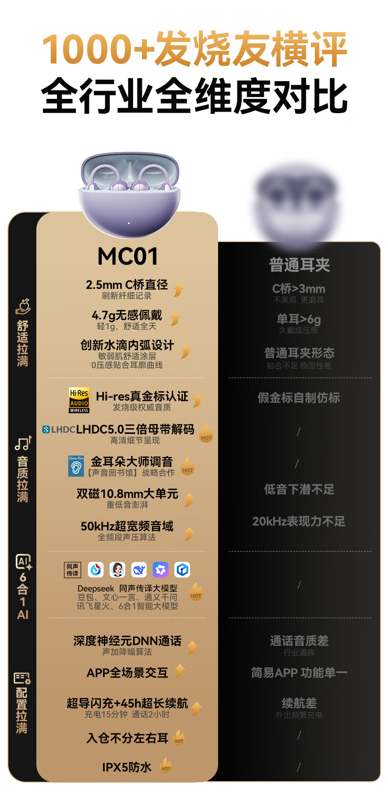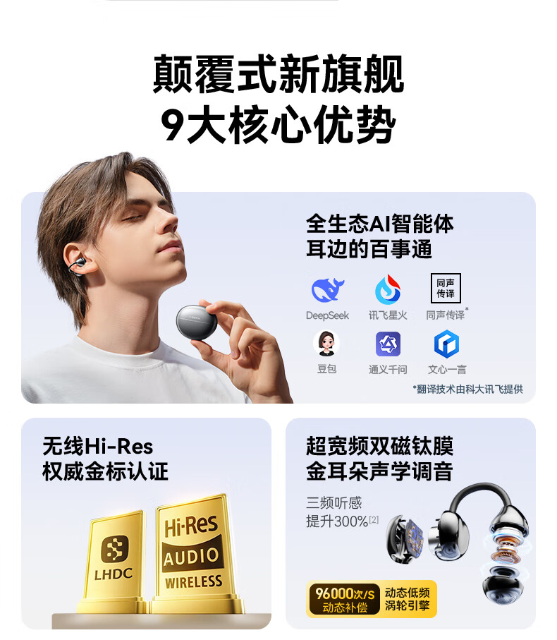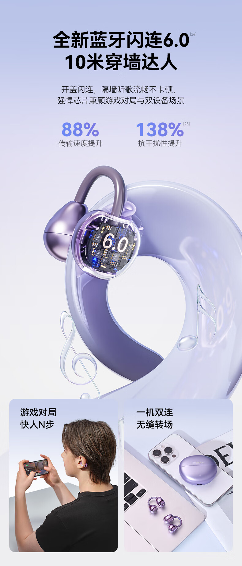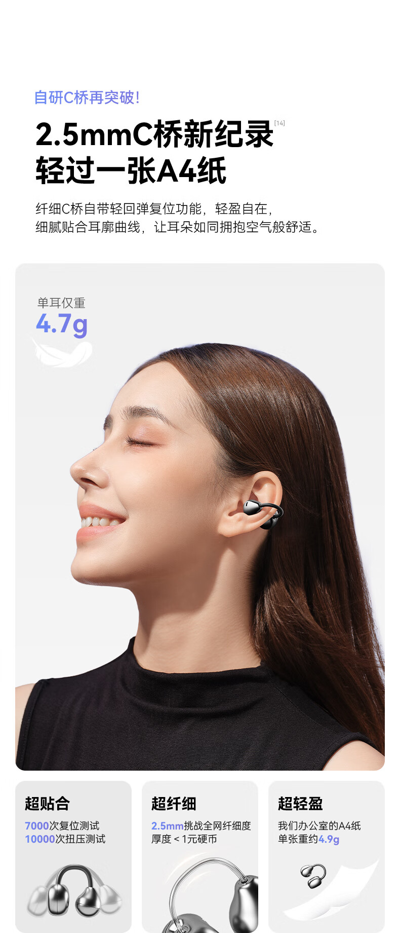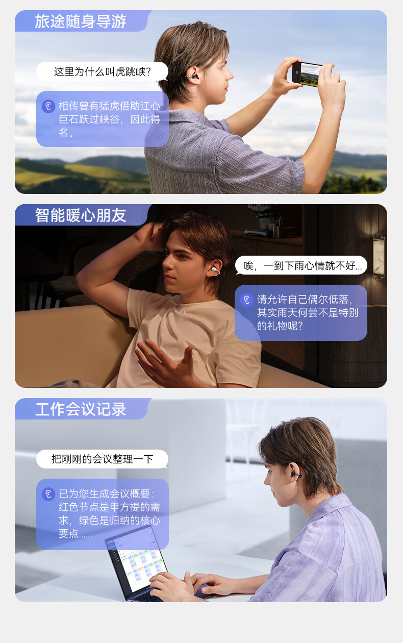 西伯利亚(XIBERIA)【明星同款】羽MC01蓝牙耳机耳夹式开放式运动耳机AI翻译耳机通话降噪骨传导无线挂耳星空黑
