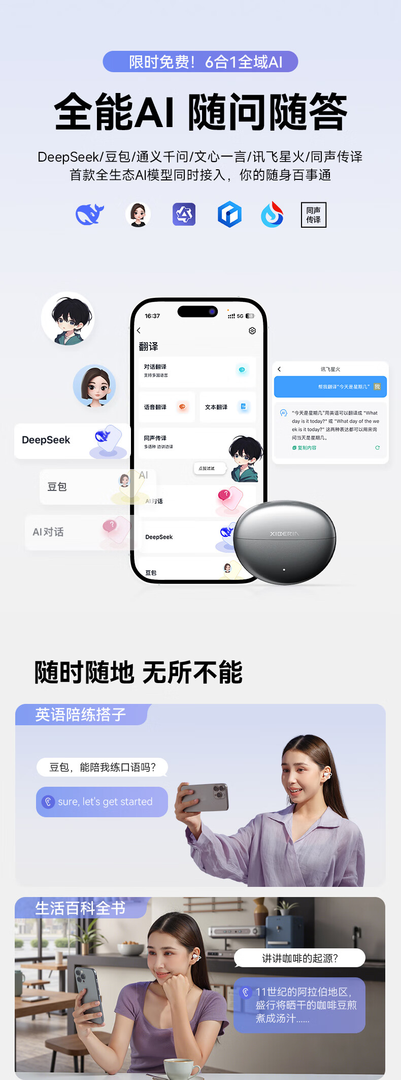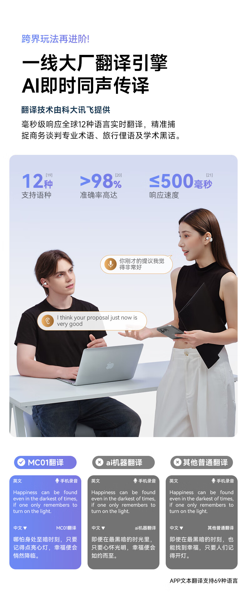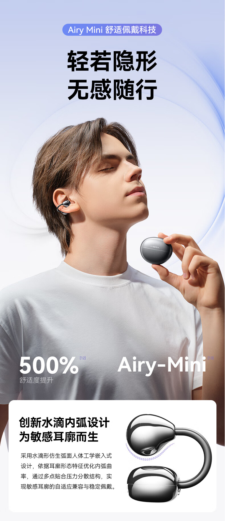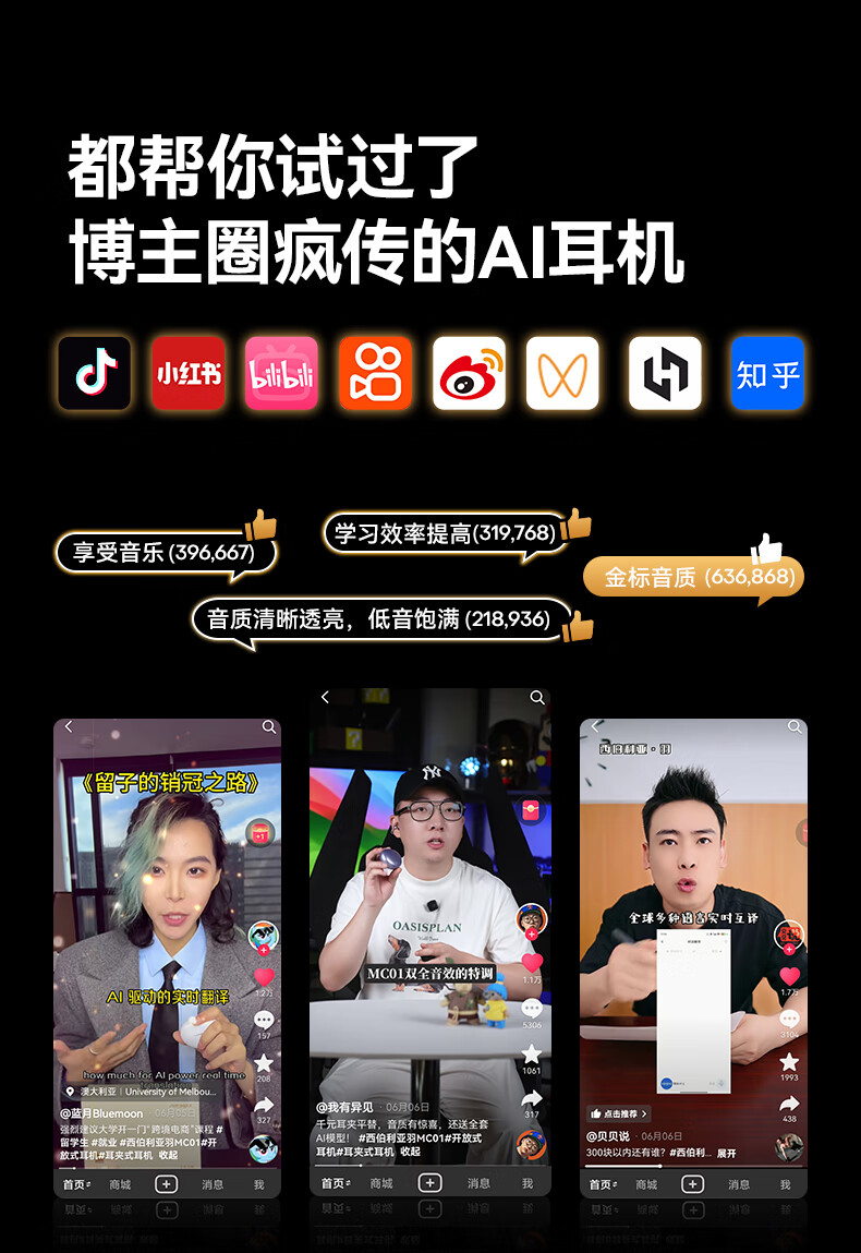 西伯利亚(XIBERIA)【明星同款】羽MC01蓝牙耳机耳夹式开放式运动耳机AI翻译耳机通话降噪骨传导无线挂耳星空黑