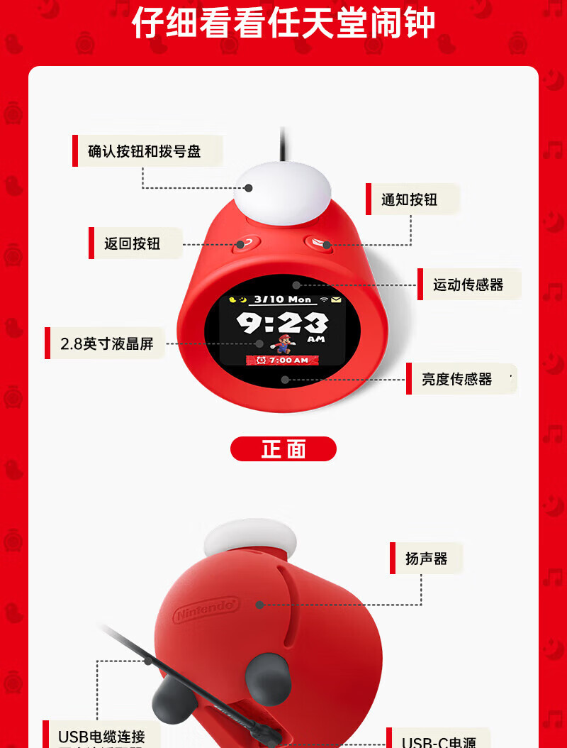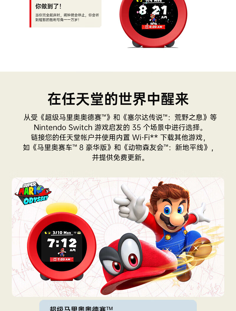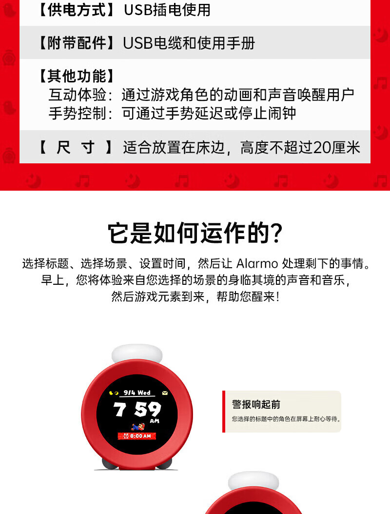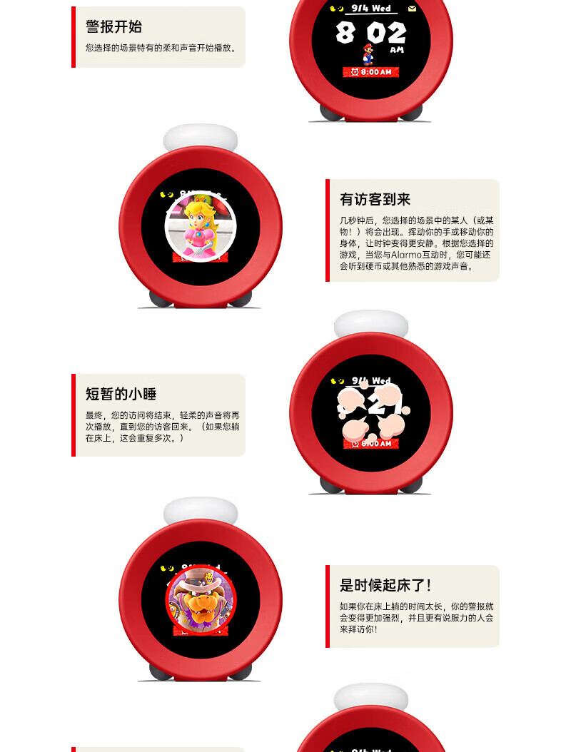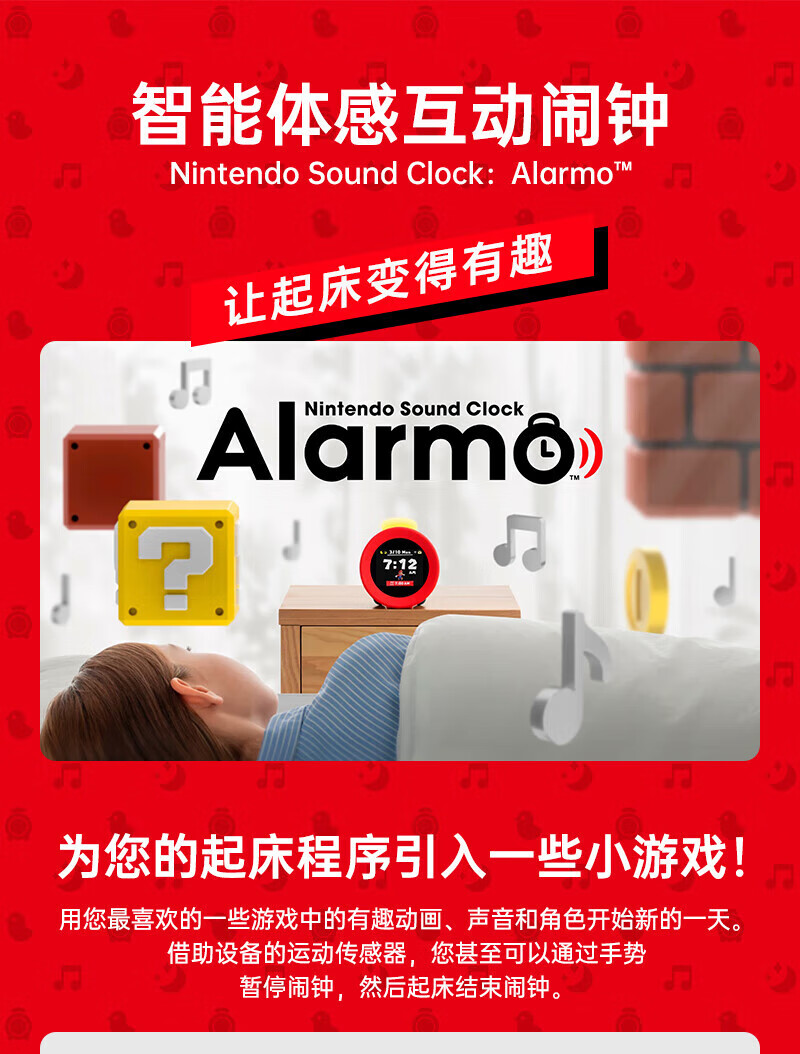 任天堂(Nintendo)【国内保税仓】Alarmo闹钟 马里奥闹钟 35个场景动画声音游戏元素 原装日版Alarmo闹钟 官方标配