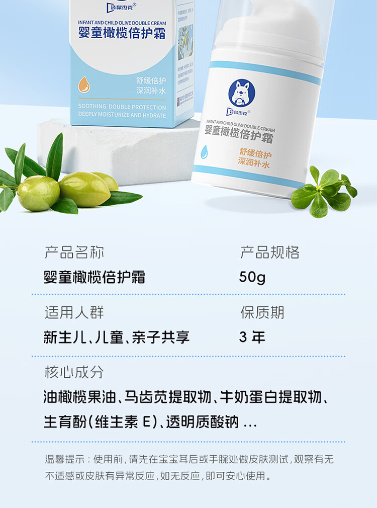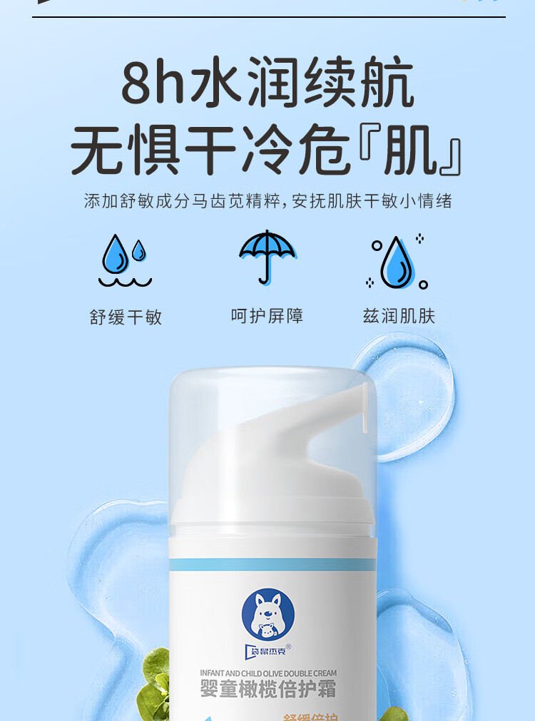 袋鼠杰克儿童面霜6-12岁滋润保湿晒后修复舒缓婴儿宝宝0-3岁保湿霜50g 【换季保湿】儿童秋冬滋润霜50g