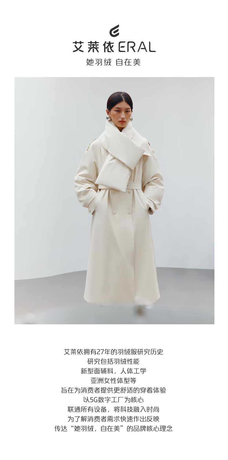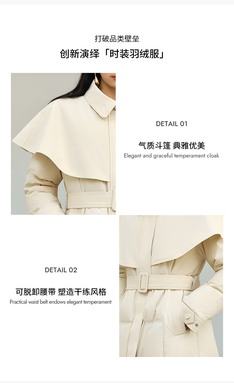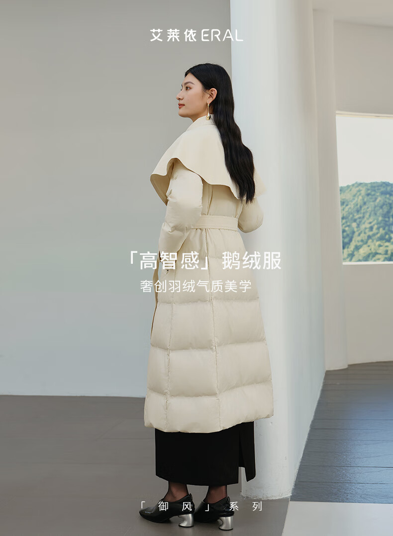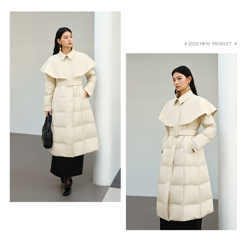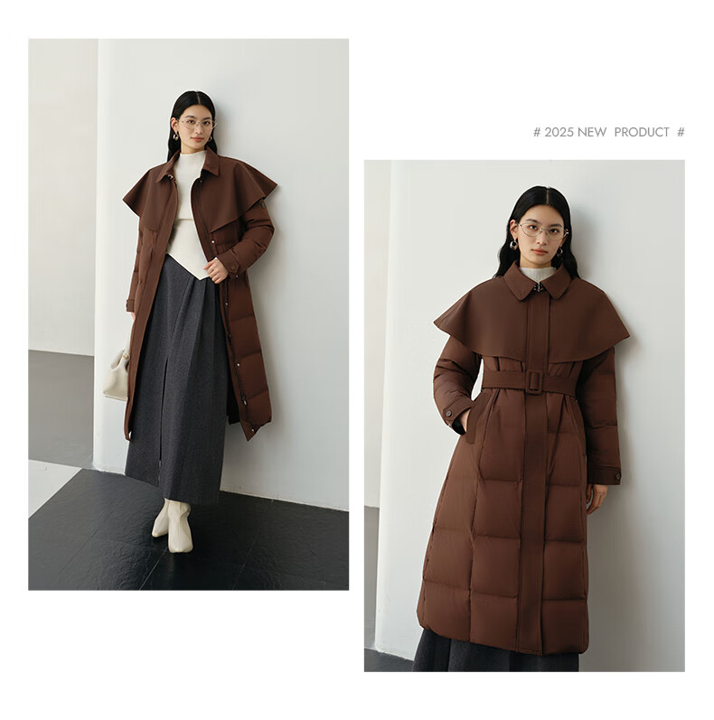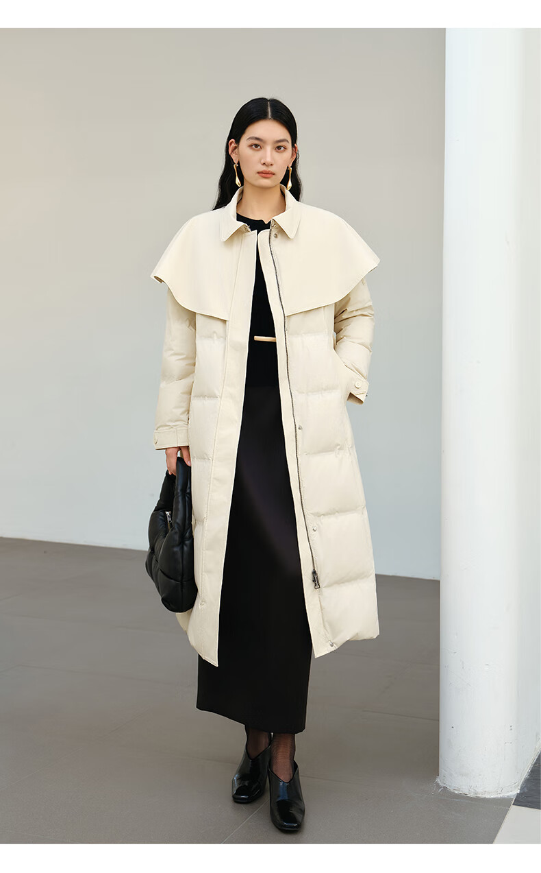 艾莱依(ERAL)女士羽绒服气质风衣斗篷长款外套披肩鹅绒收腰显瘦新年战袍骐骥红 炭黑 XL 170【建议125-140斤】