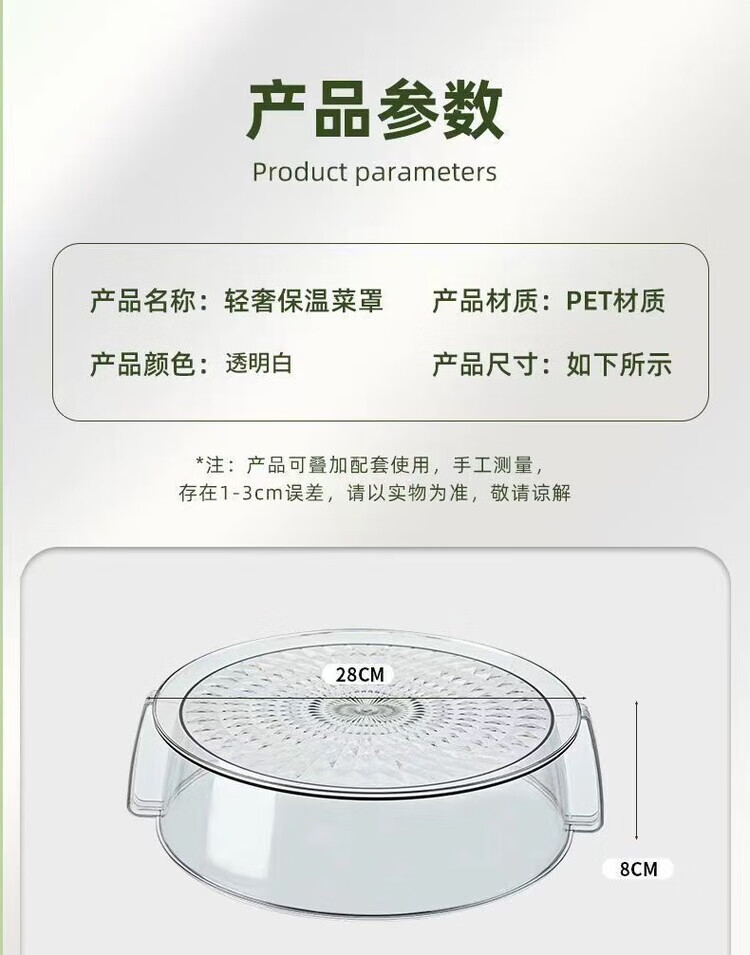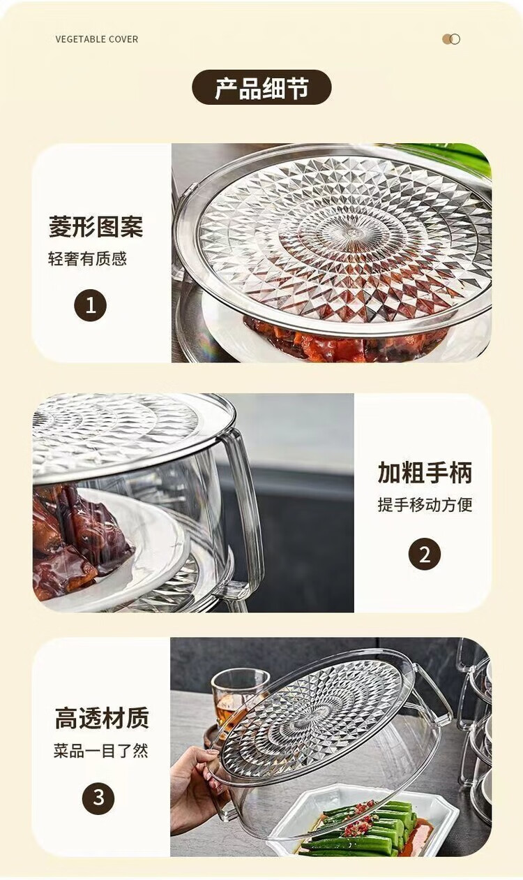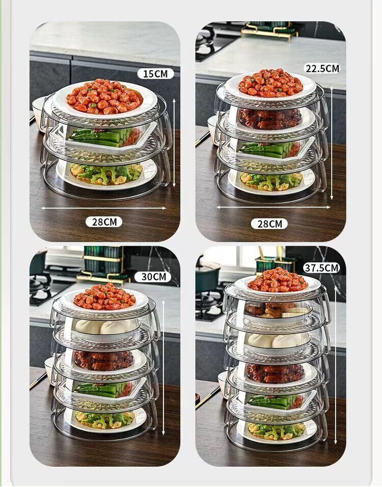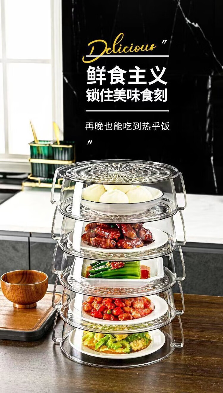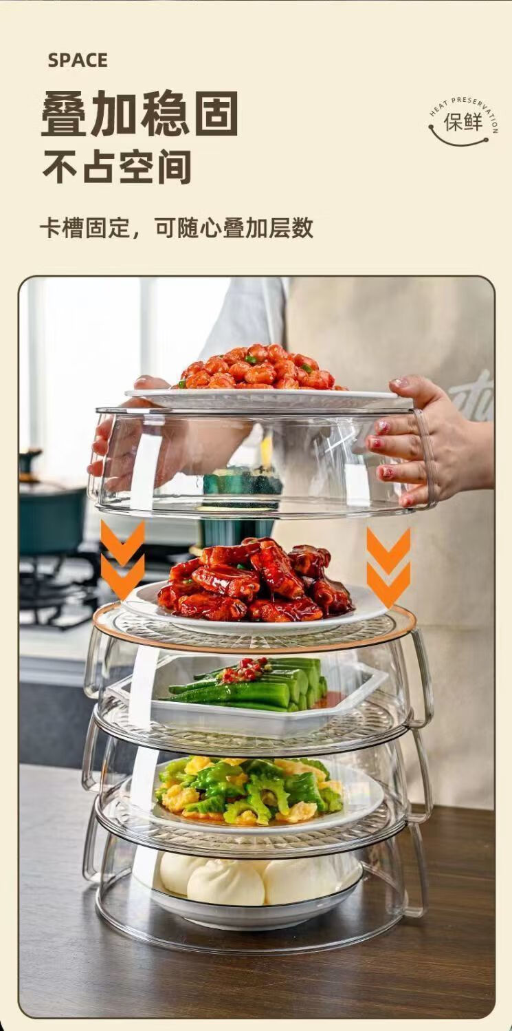 泰禧阁高档加热保温菜罩带盖家用厨房食物罩防尘多层遮剩菜餐桌罩可冷藏 透明白 5层装