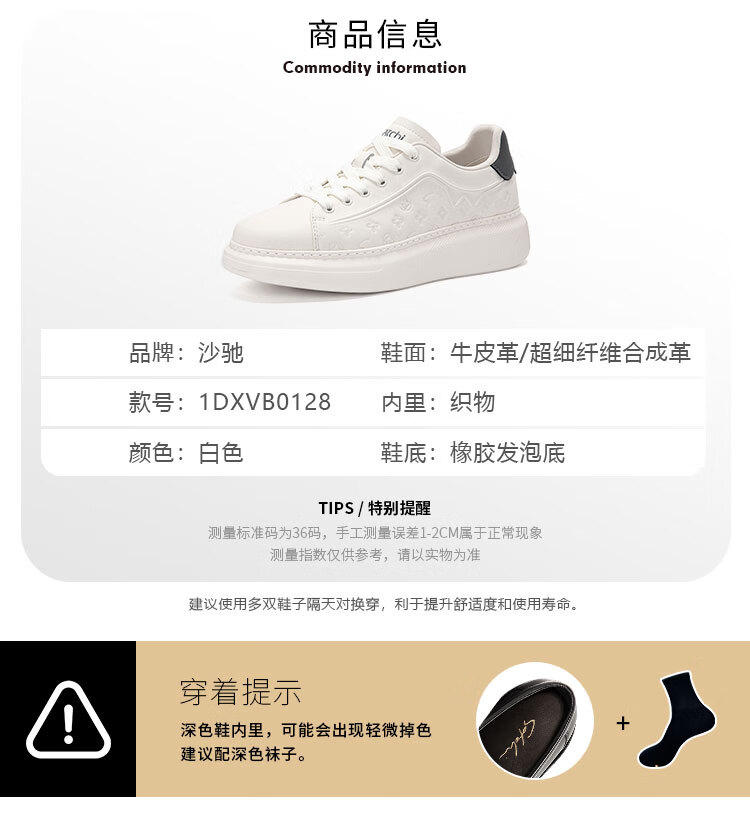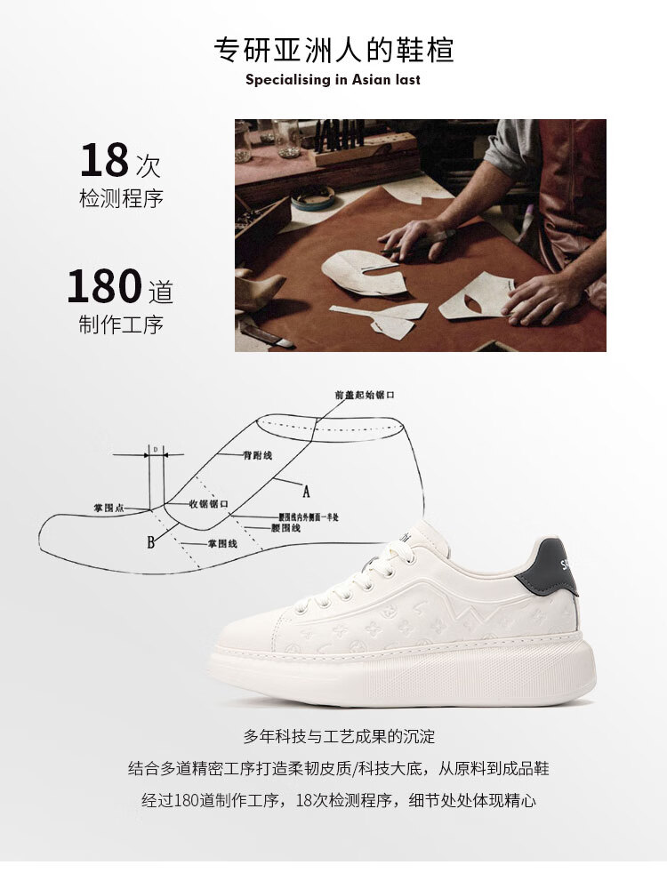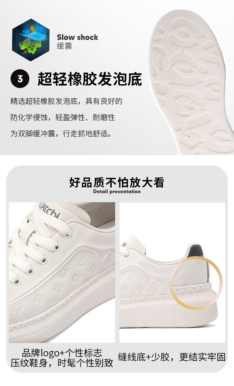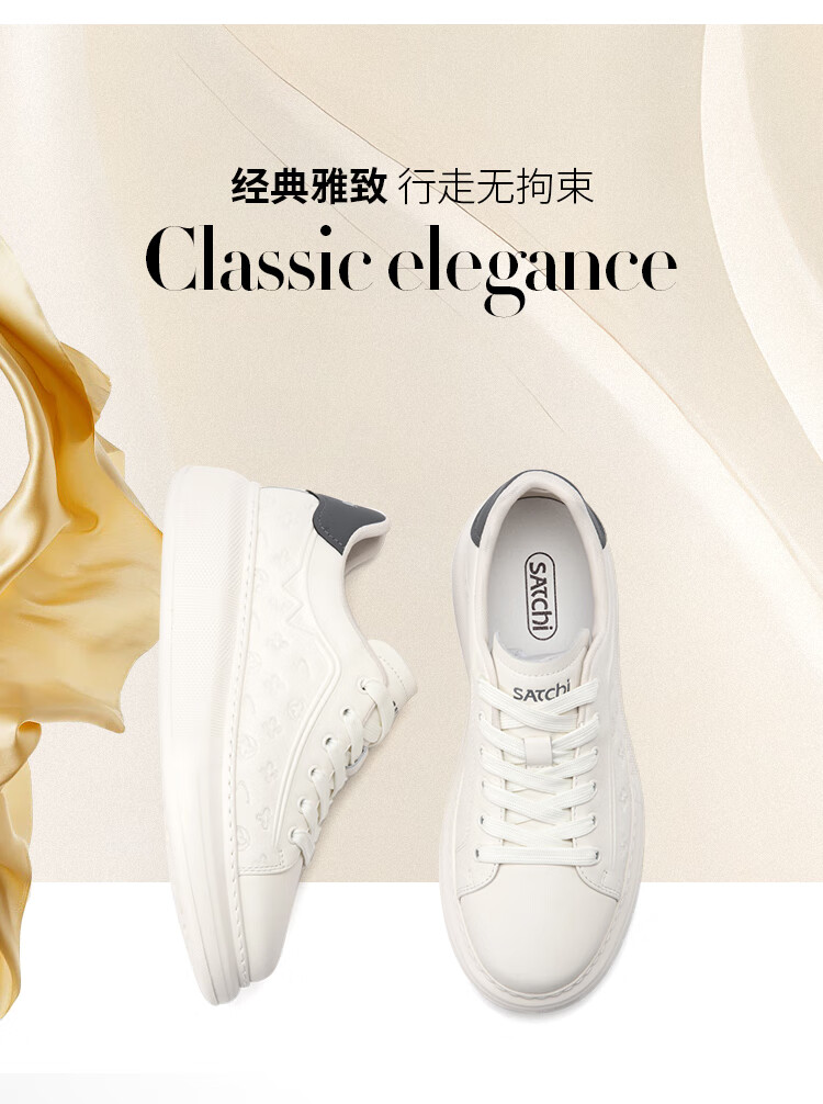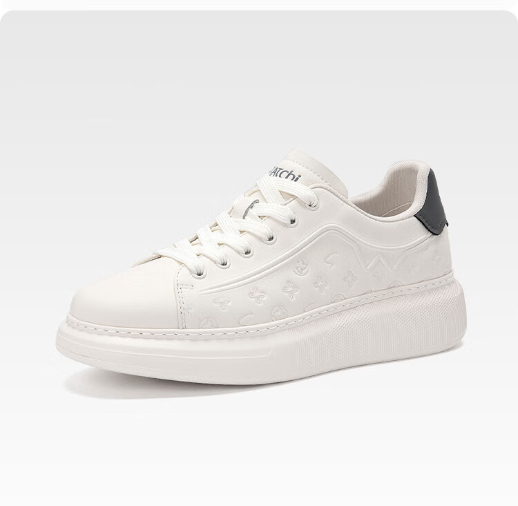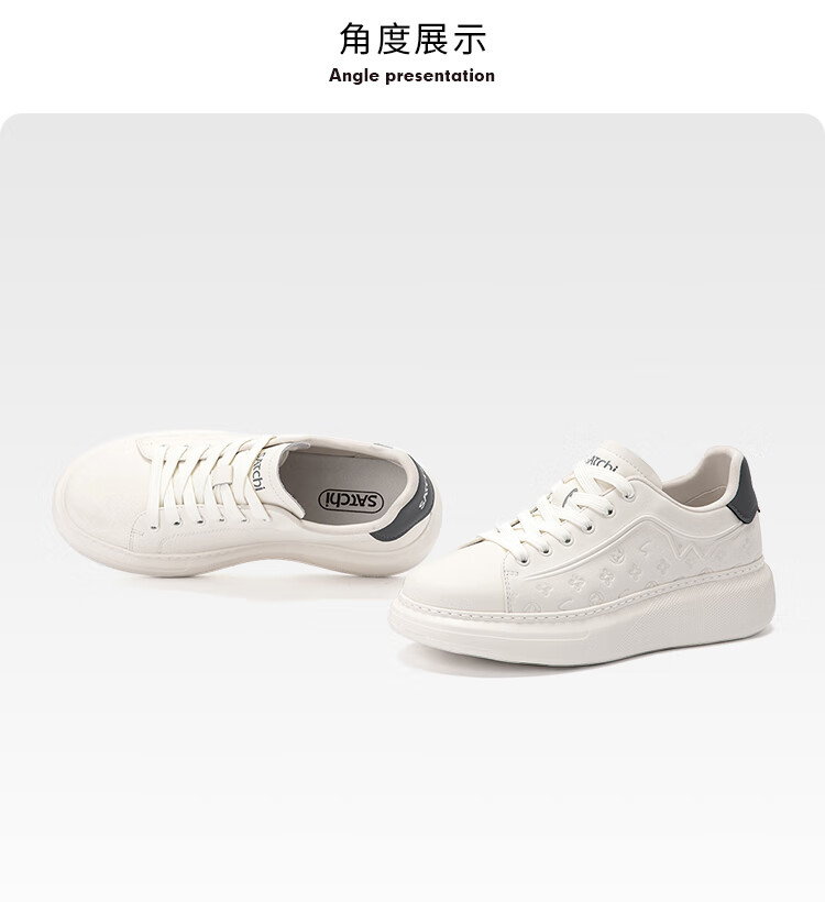 沙驰(SATCHI)男鞋新款牛皮拼接摩登印花厚底小白鞋百搭舒适板鞋休闲鞋运动鞋 白色(1DXVB0128) 41 欧码(选小一码)