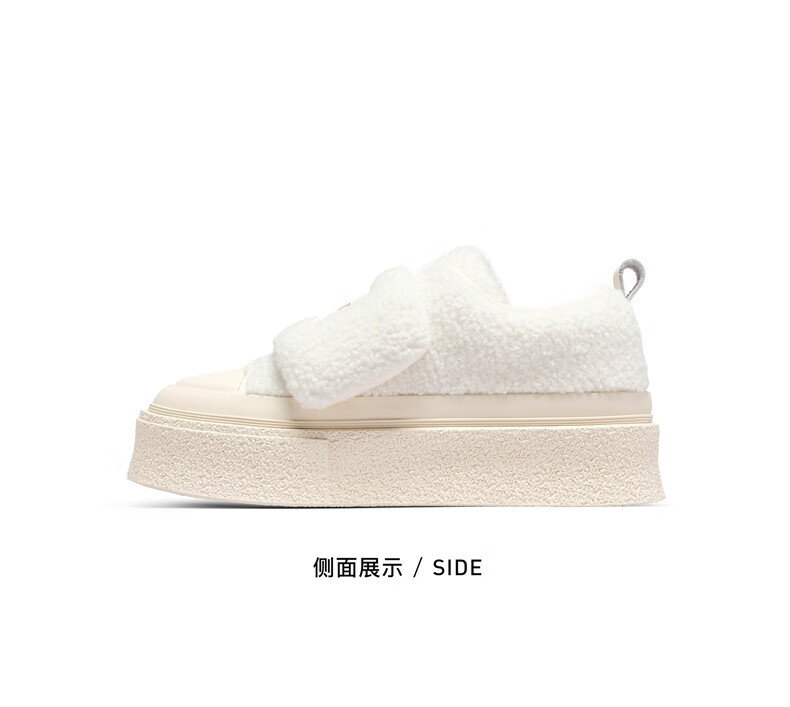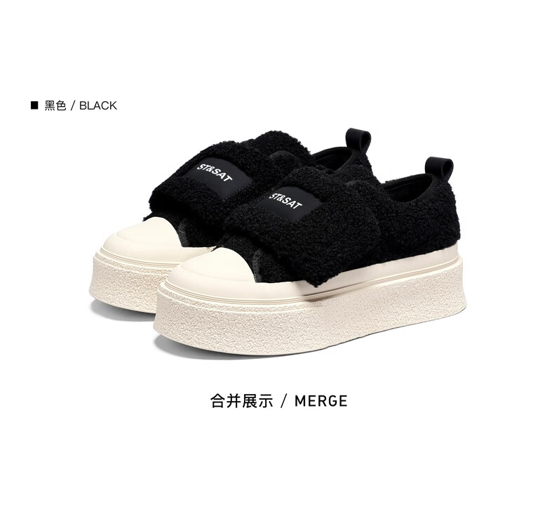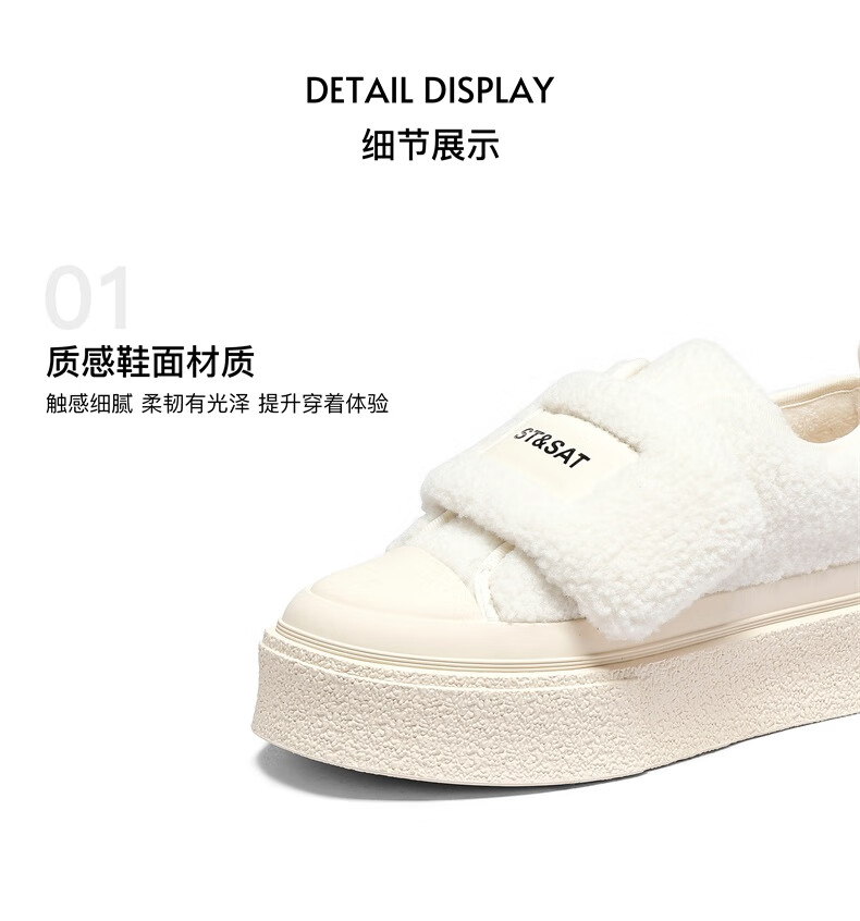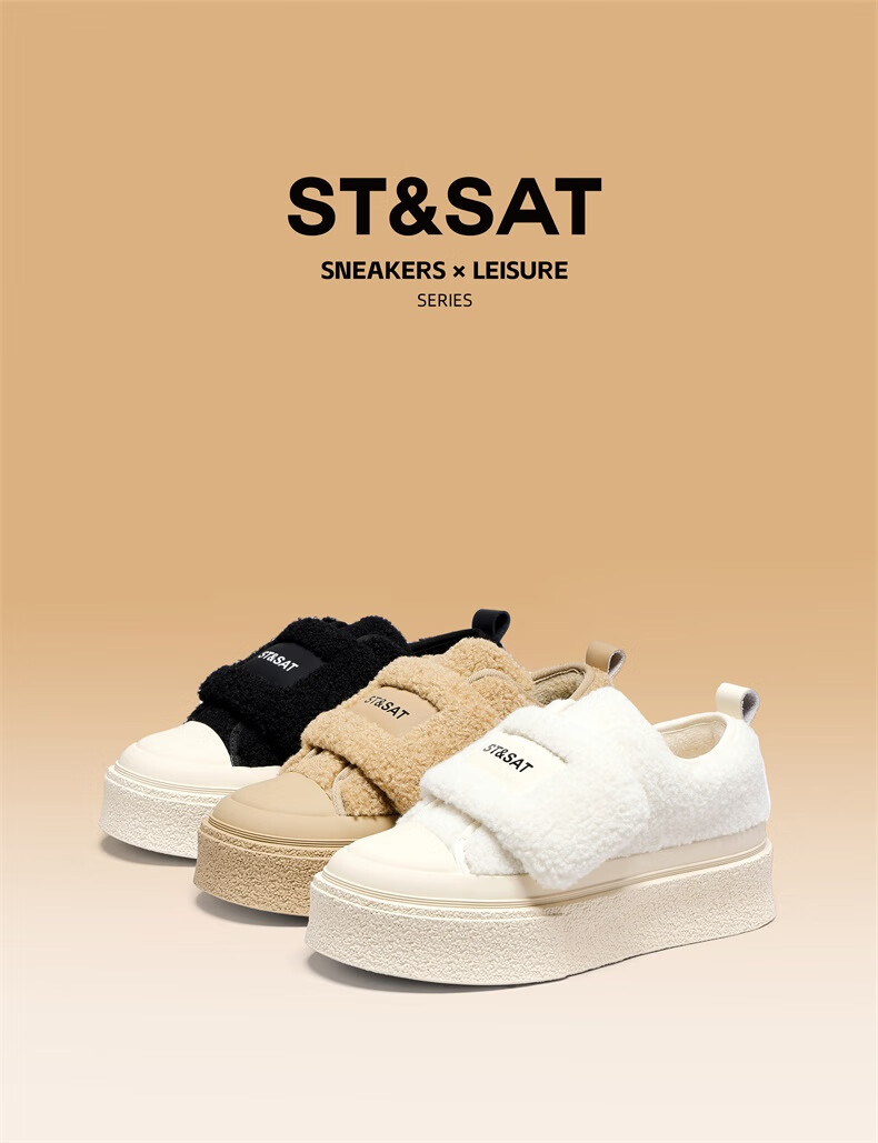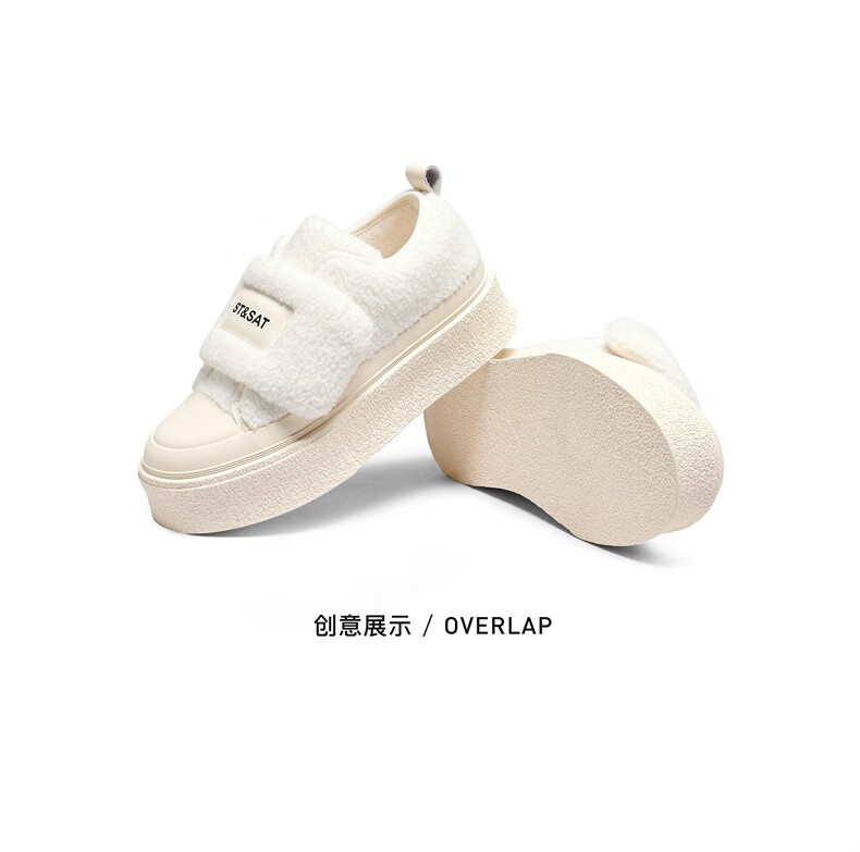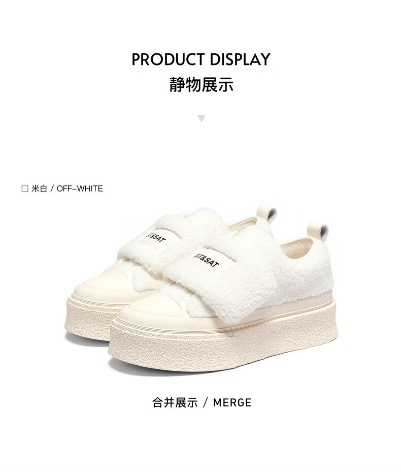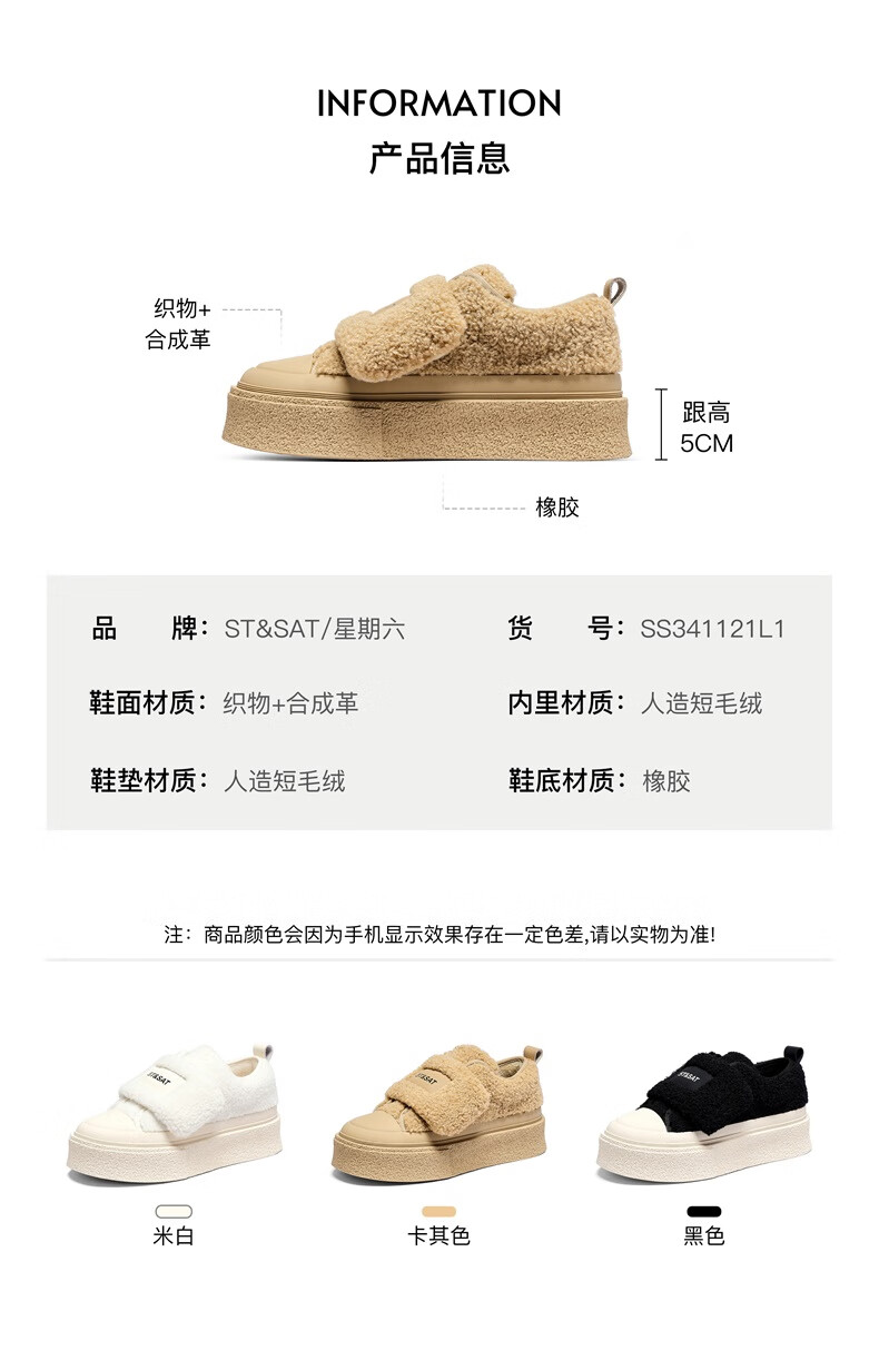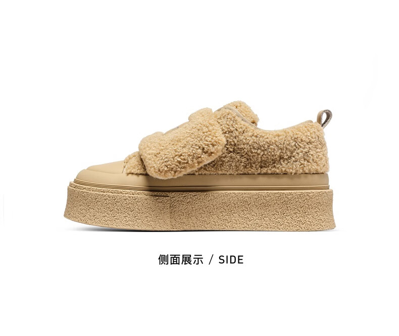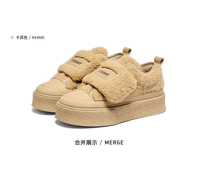 星期六(St&Sat)毛毛鞋女2025新款时尚百搭纯色厚底圆头运动休闲鞋 卡其色 36