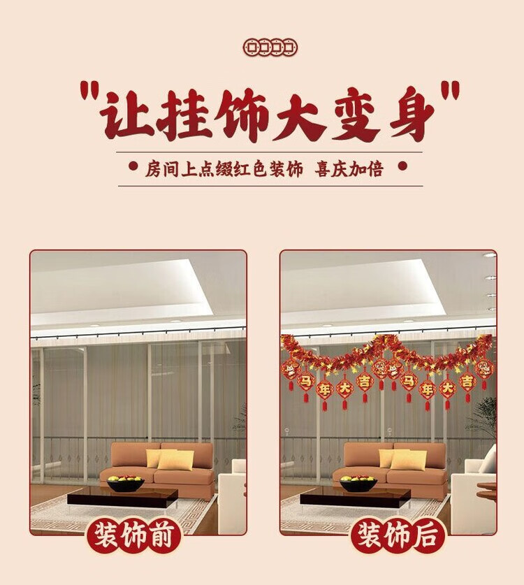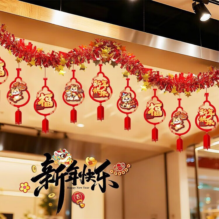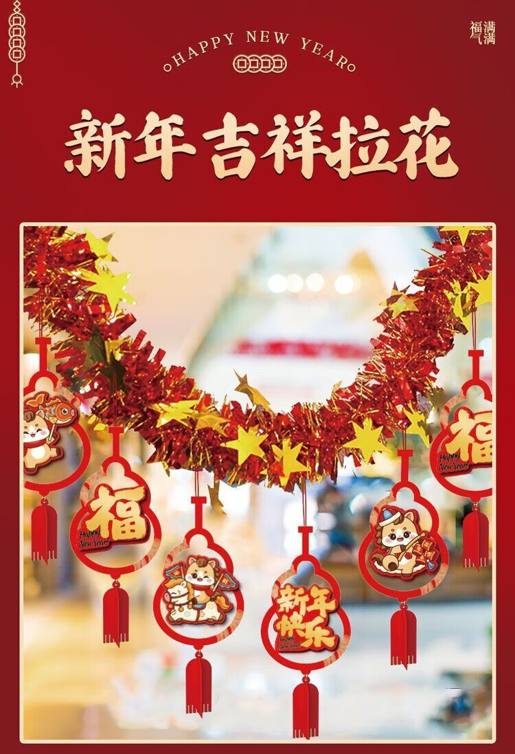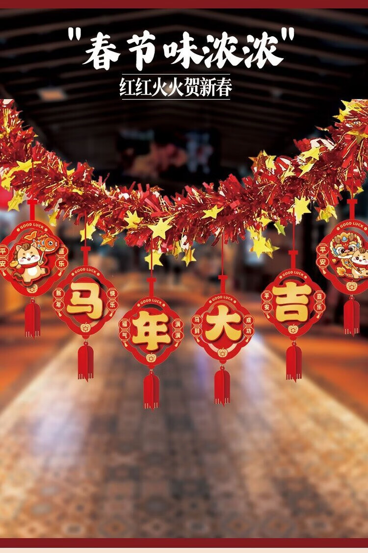 OYKTN2026马年创意拉花4米挂件新年过年装饰新春挂饰春节客厅商场布置 【福马 迎春】/送挂钩 彩条2米
