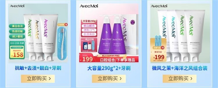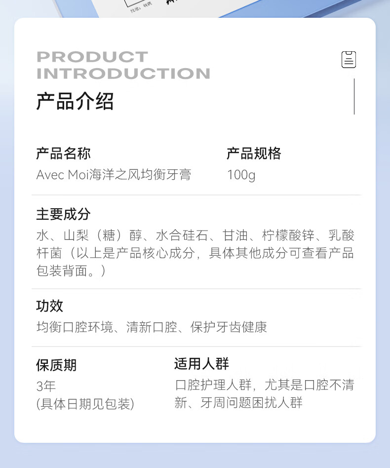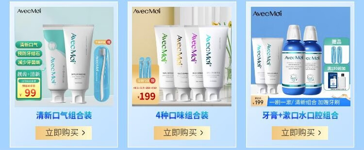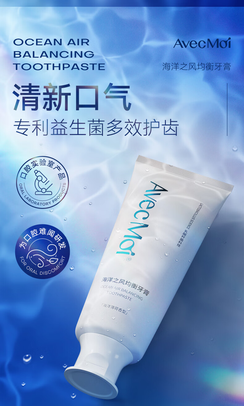 Avec Moi 牙膏 益生菌海洋之风口腔清新+美白靓齿组合装100g*4支+牙刷*1支