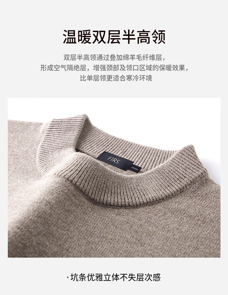 杉杉【重磅加厚】秋冬男士绵羊毛长袖休闲日常半高圆领莫兰迪保暖毛衣
