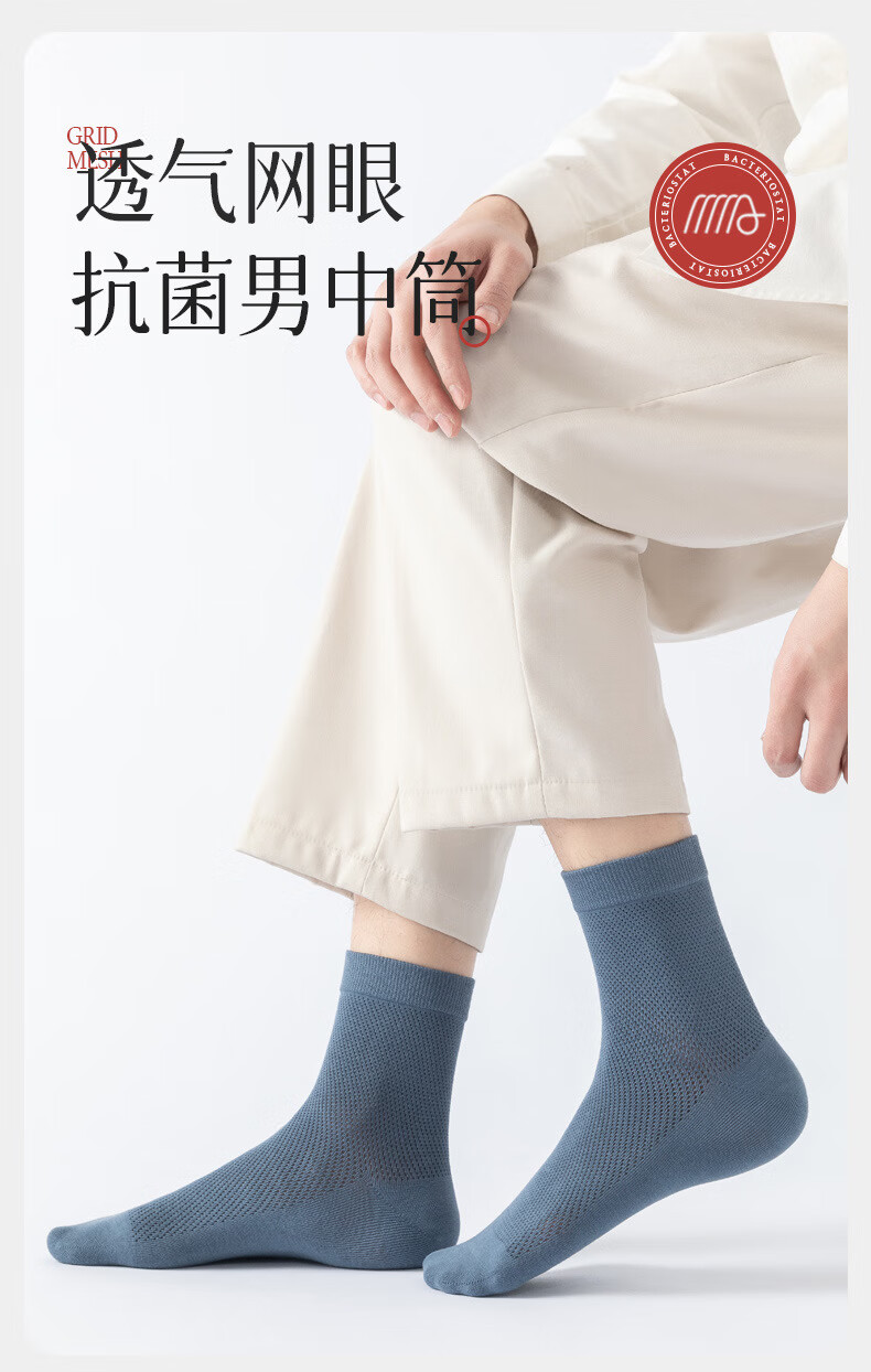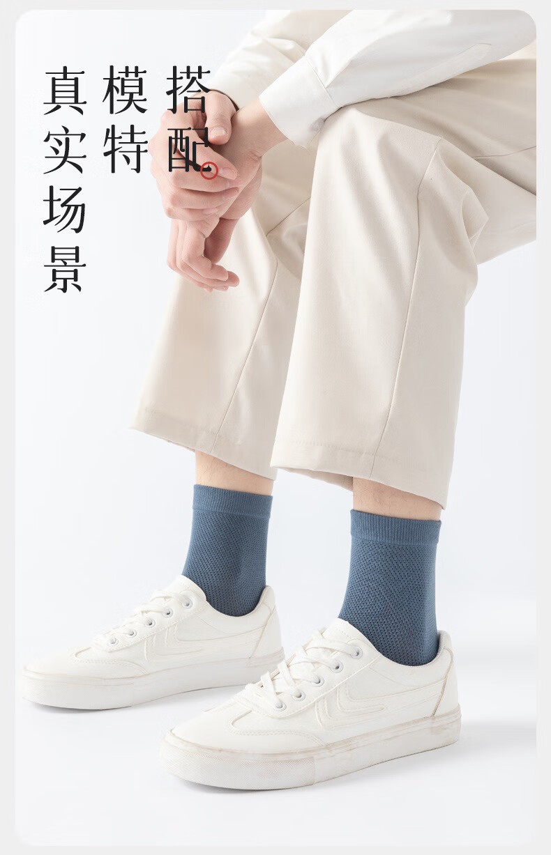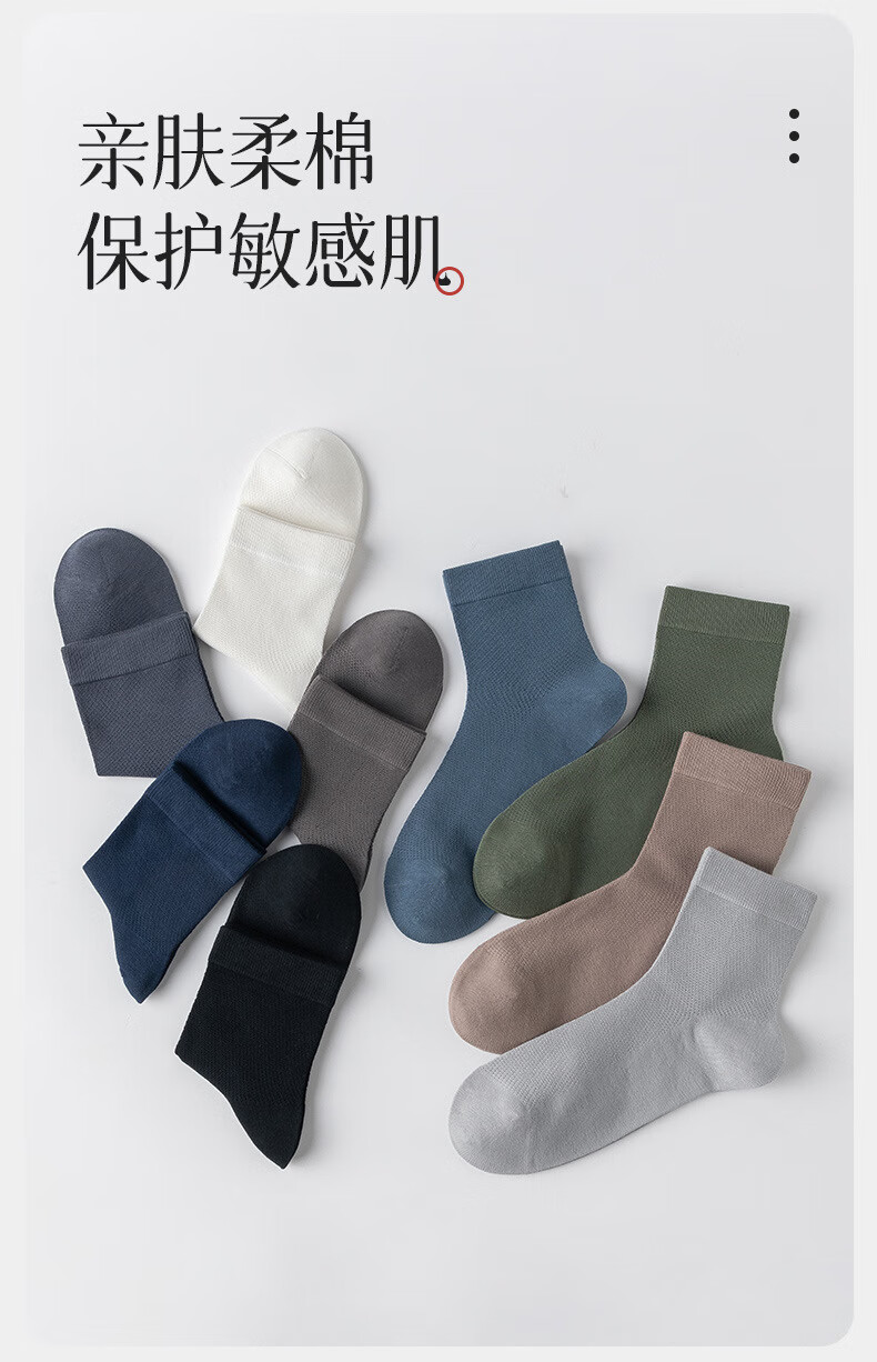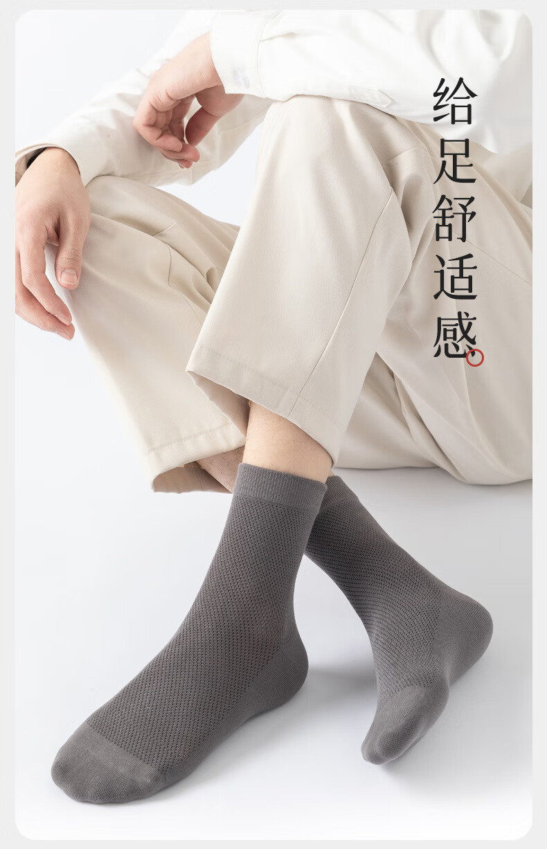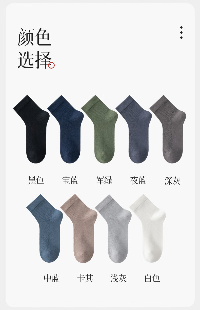 【优选直发】男士袜子春夏中筒袜防臭纯色棉袜男透气网眼薄款长袜 黑色+宝蓝+深灰+军绿+卡其 均码