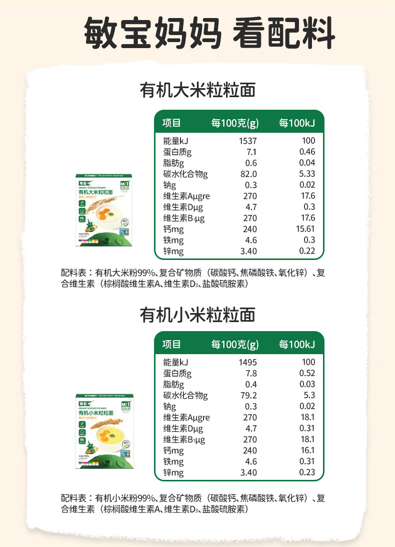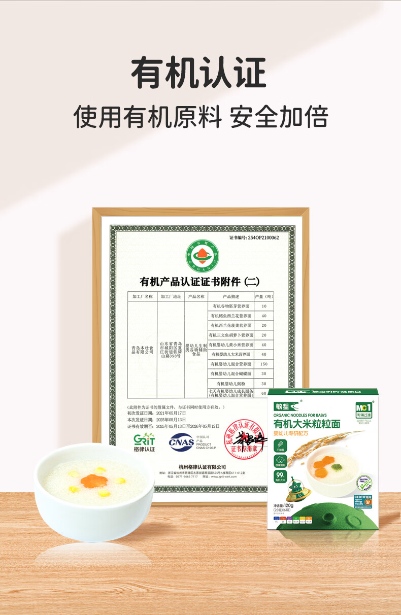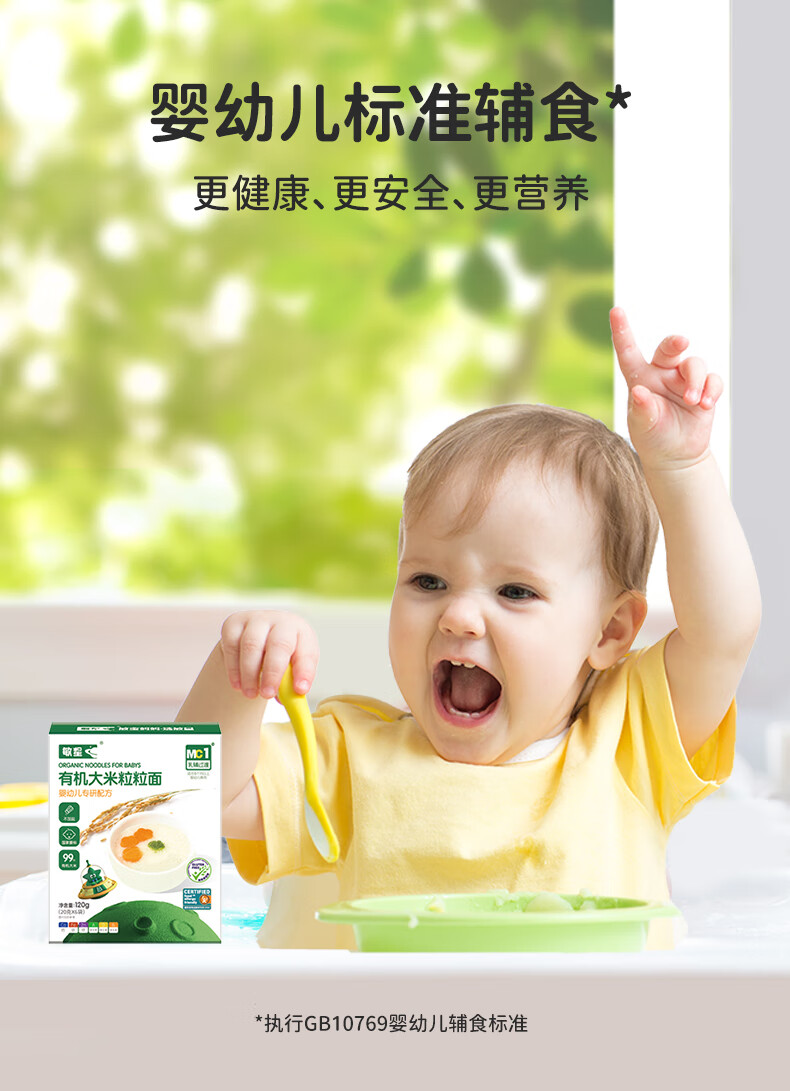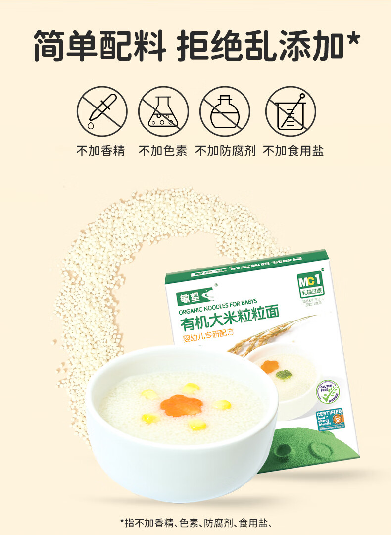 敏星婴幼儿有机大米粒粒面小米颗粒面宝宝辅食粒粒面条不添加小麦蛋奶 大米粒粒面120g*1盒