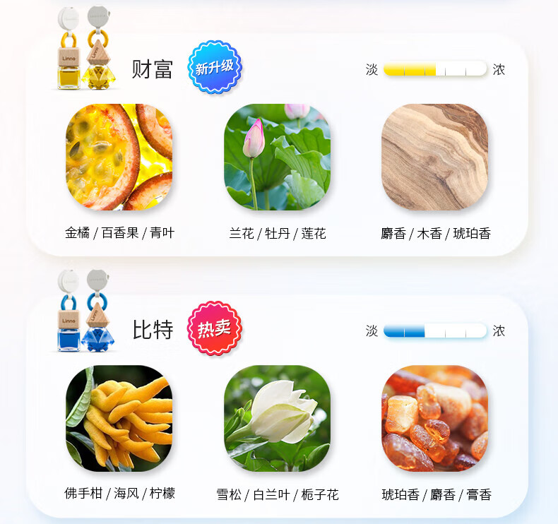 LINTTA朗汽车香水挂件车载香薰香水挂饰车内香氛装饰用品汽车摆件 【晶钻】黄色-财富 春