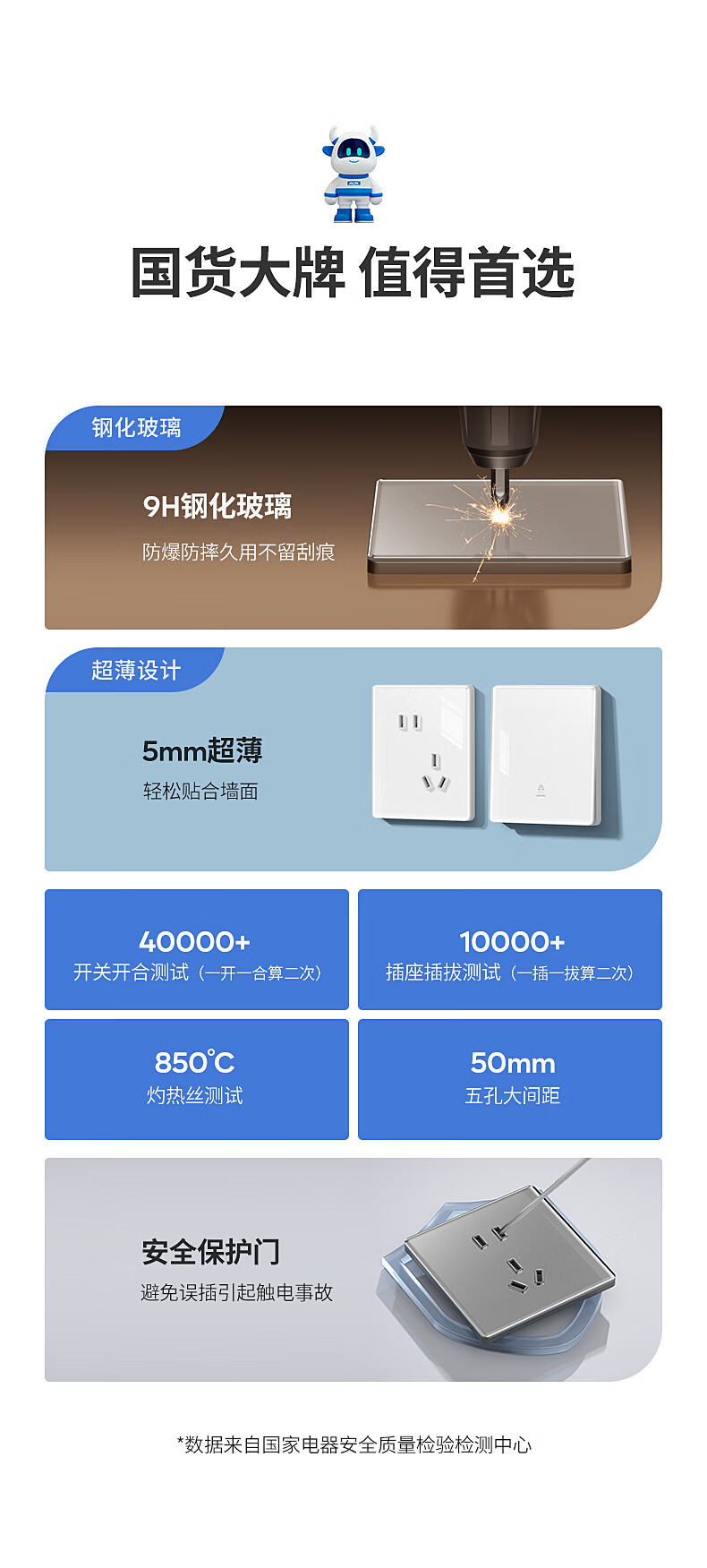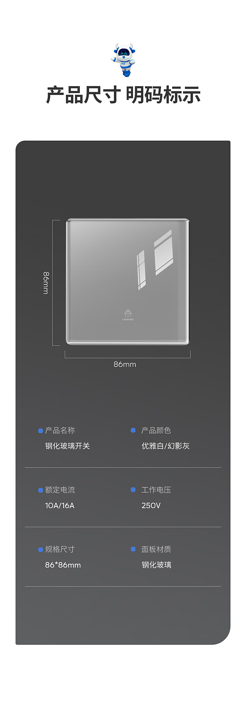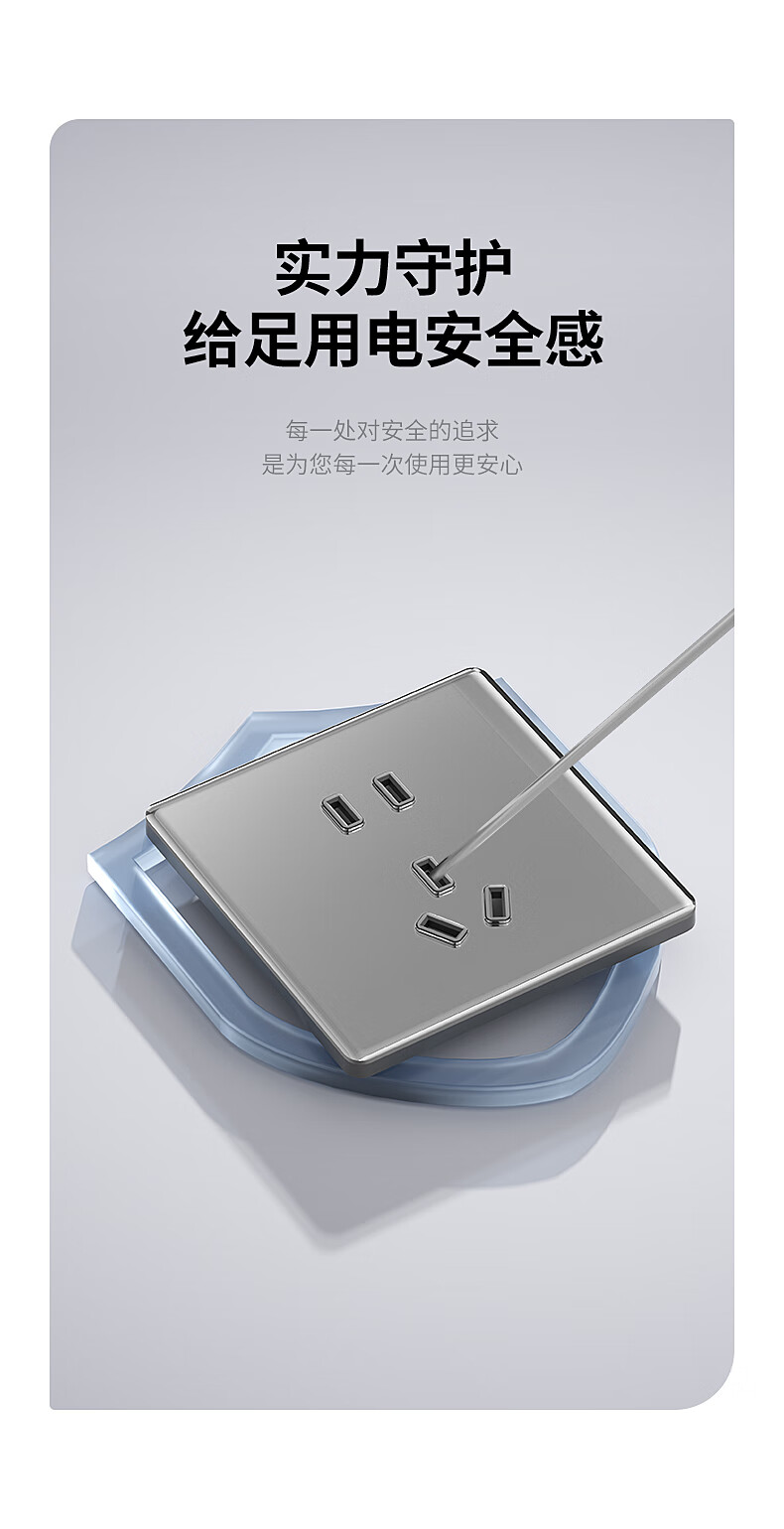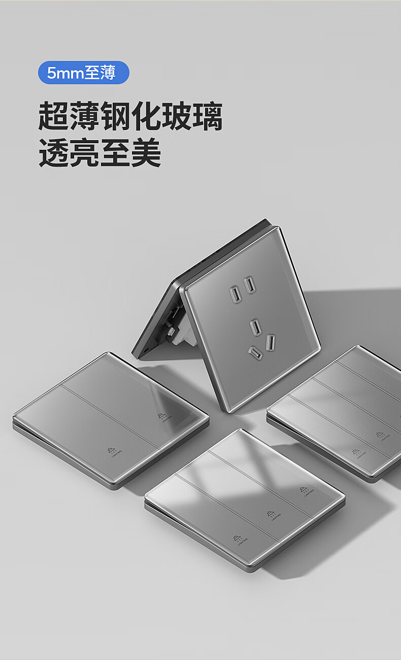 奥克斯超薄钢化玻璃开关插座面板16a亮面家用86型墙壁一开五5孔双控开关 【钢化超薄】错位五孔