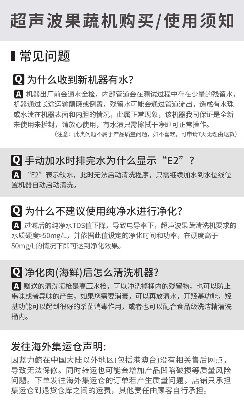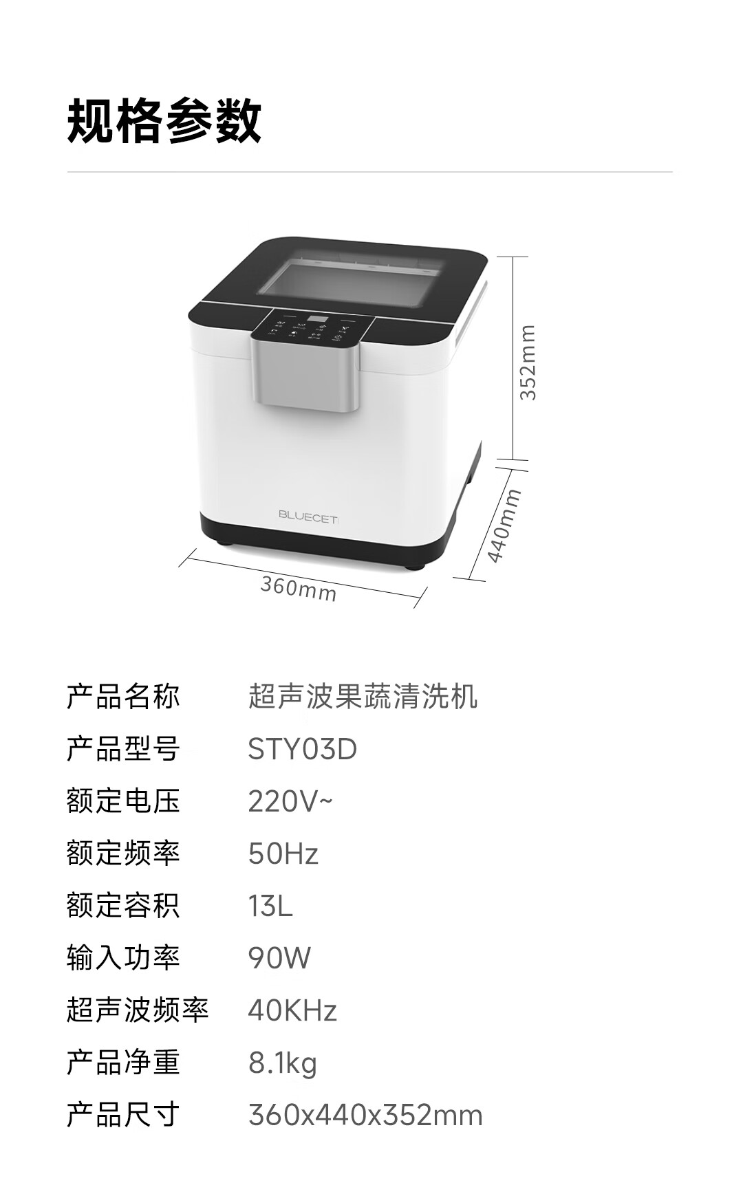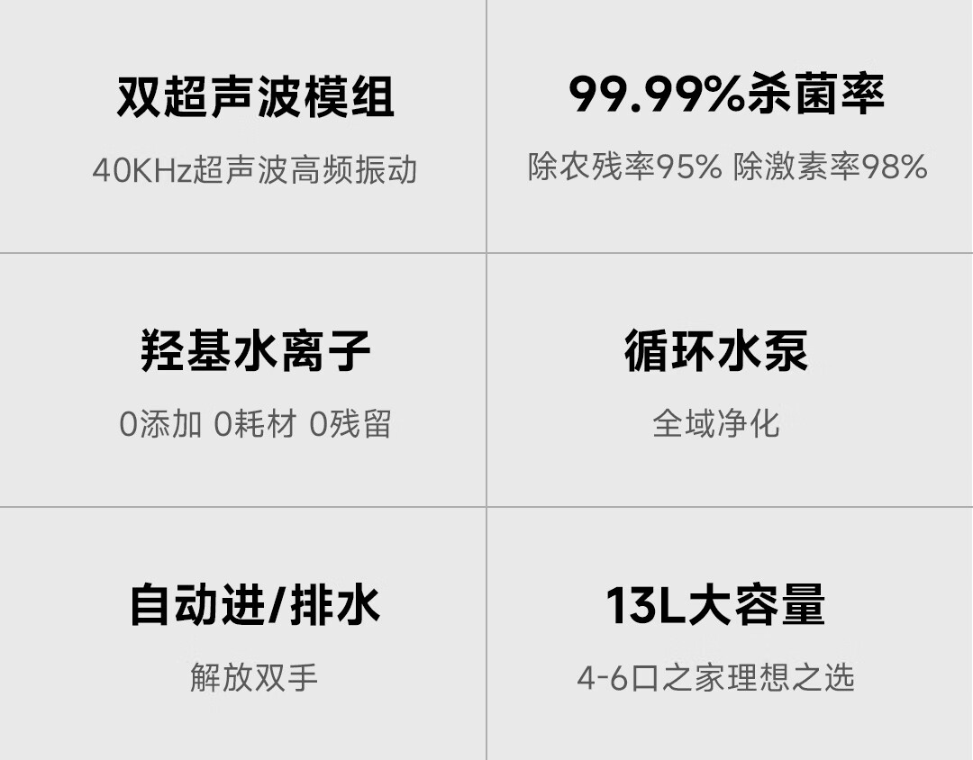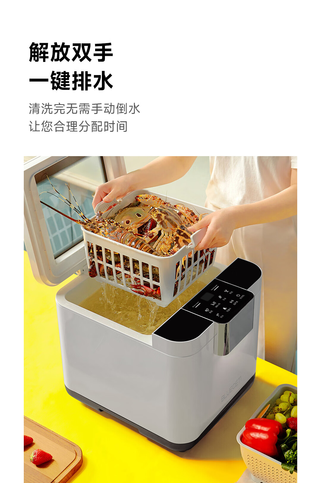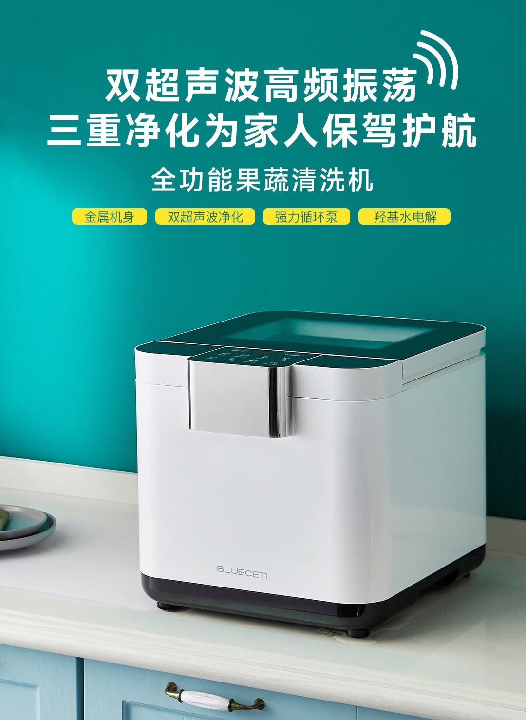 蓝力鲸超声波果蔬清洗机家用洗菜机农药残留清洗食材净化机 【双进水模式】双高频超声波