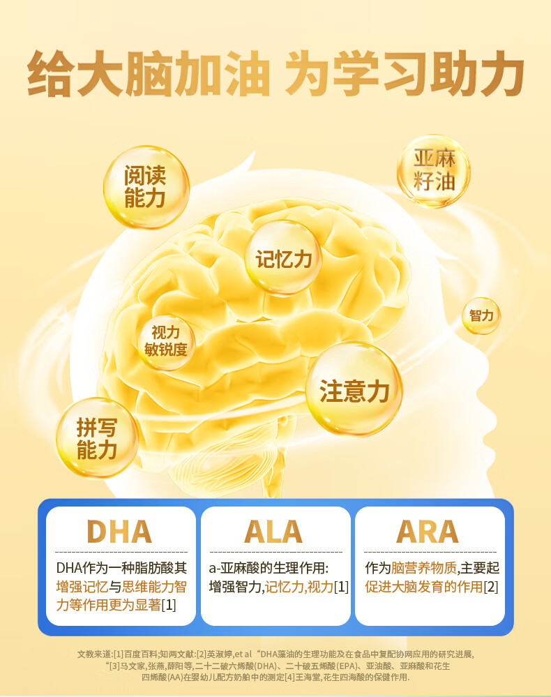 奈力士进口儿童dha学生青少年6-18岁0-3备孕妇高中生成人藻油 【2瓶 日常保养】