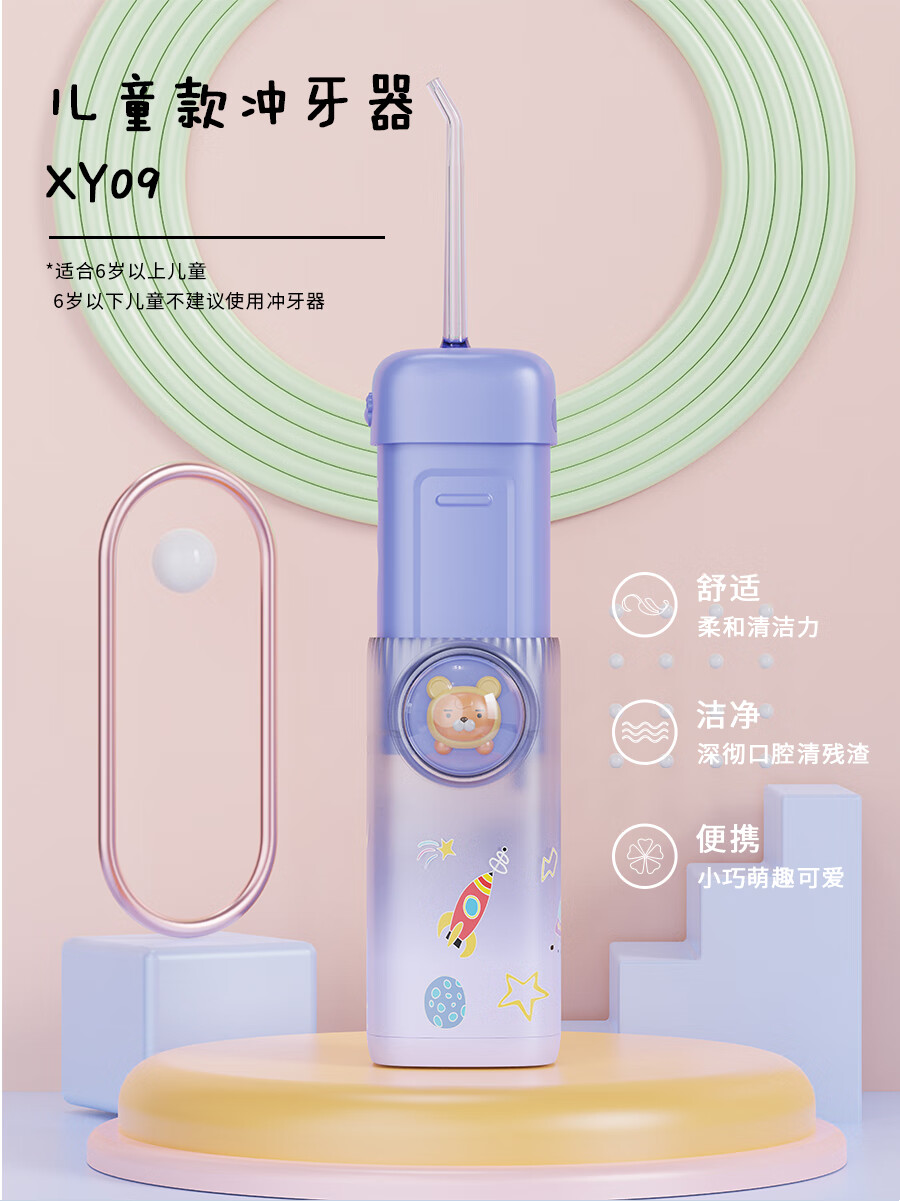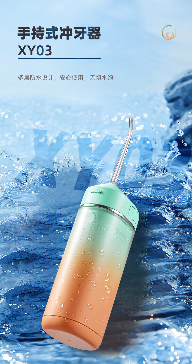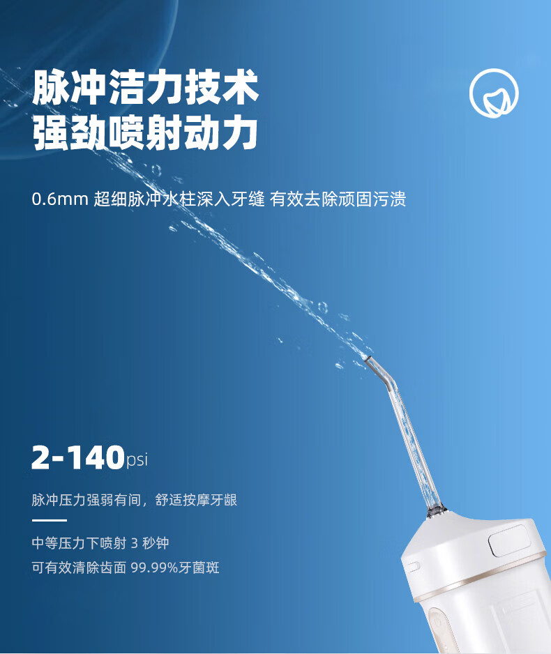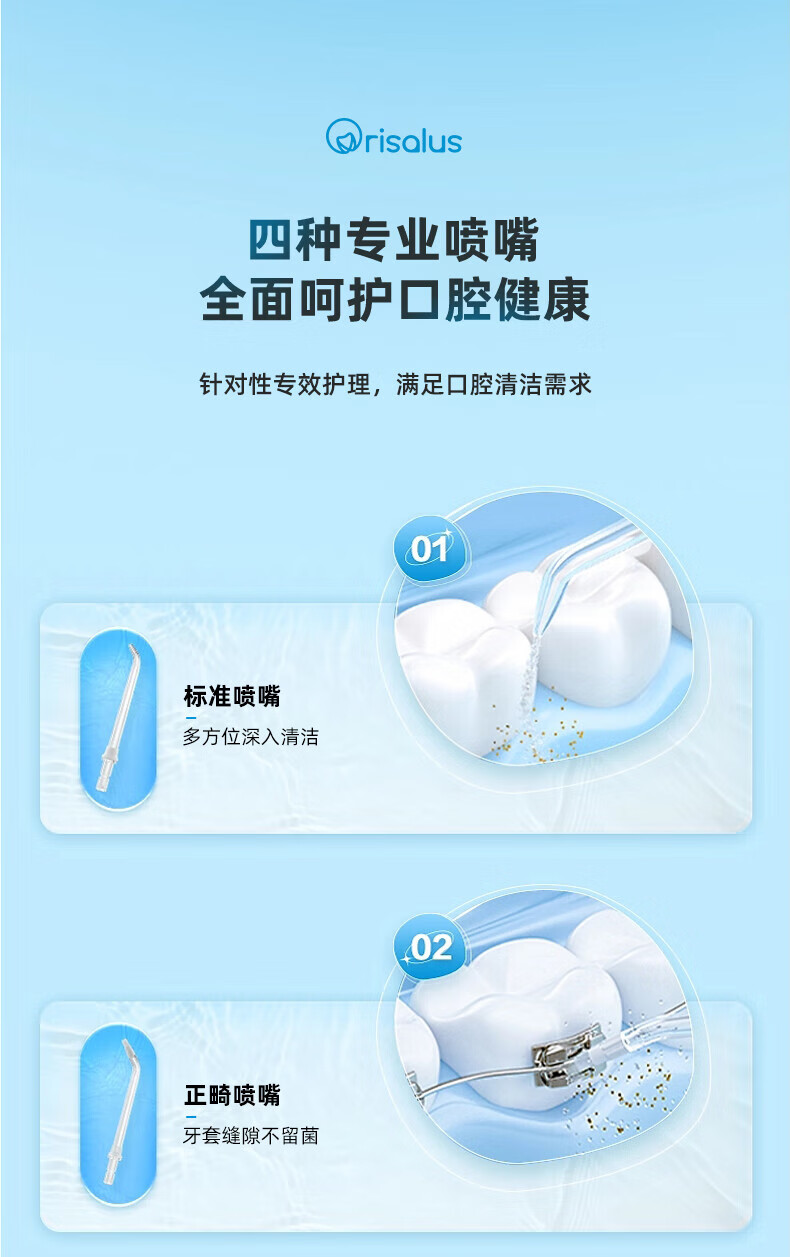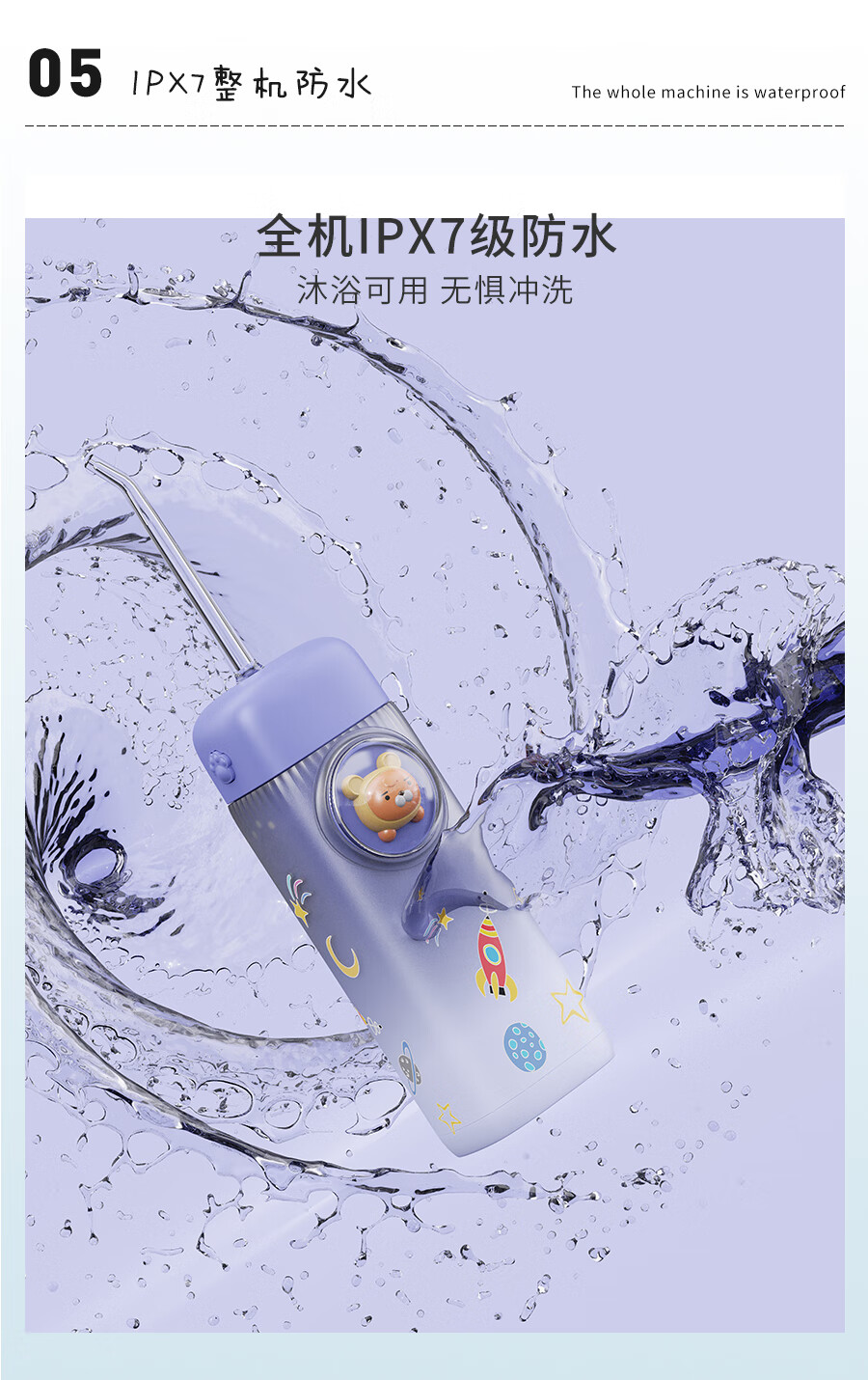 Orisalus儿童冲牙器【畅销海外12年】清洁口腔洁牙护齿洗牙器青少年正畸专用呵护小巧便携水牙线洁牙器礼物 蓝色 4支喷头 一键换挡+整机防水【儿童专用款】