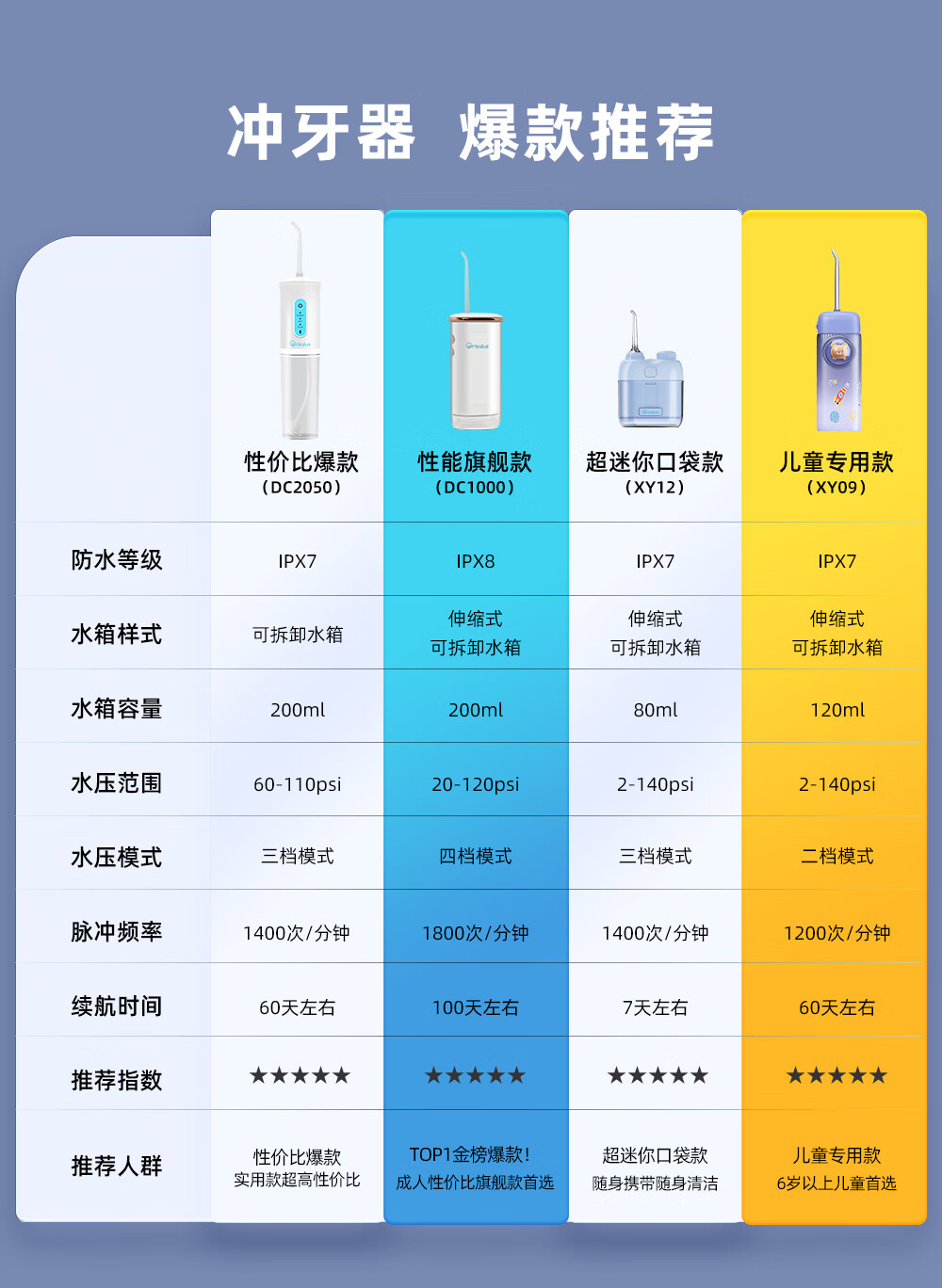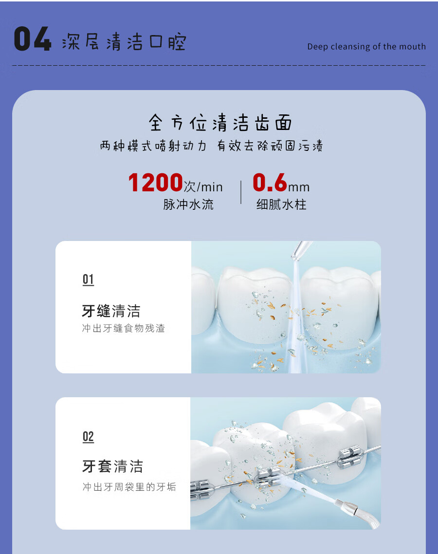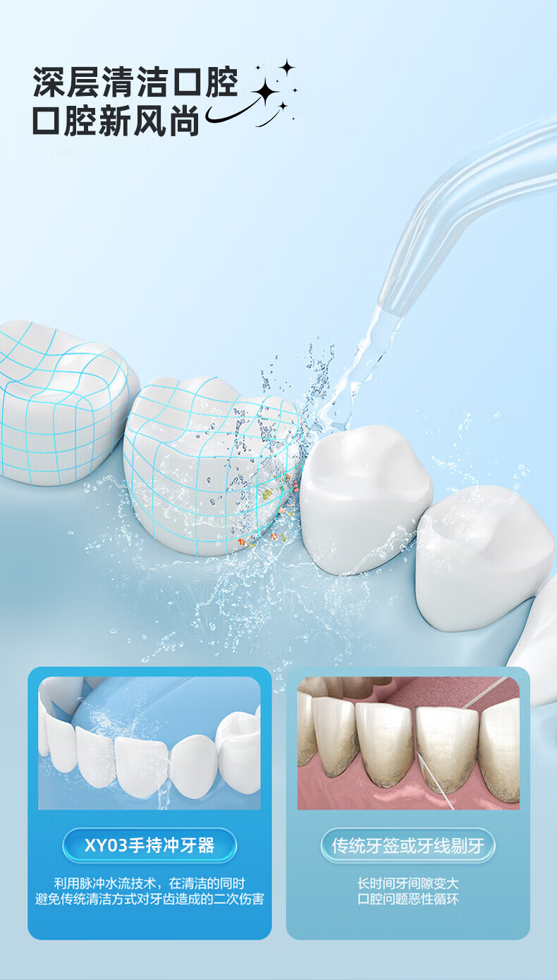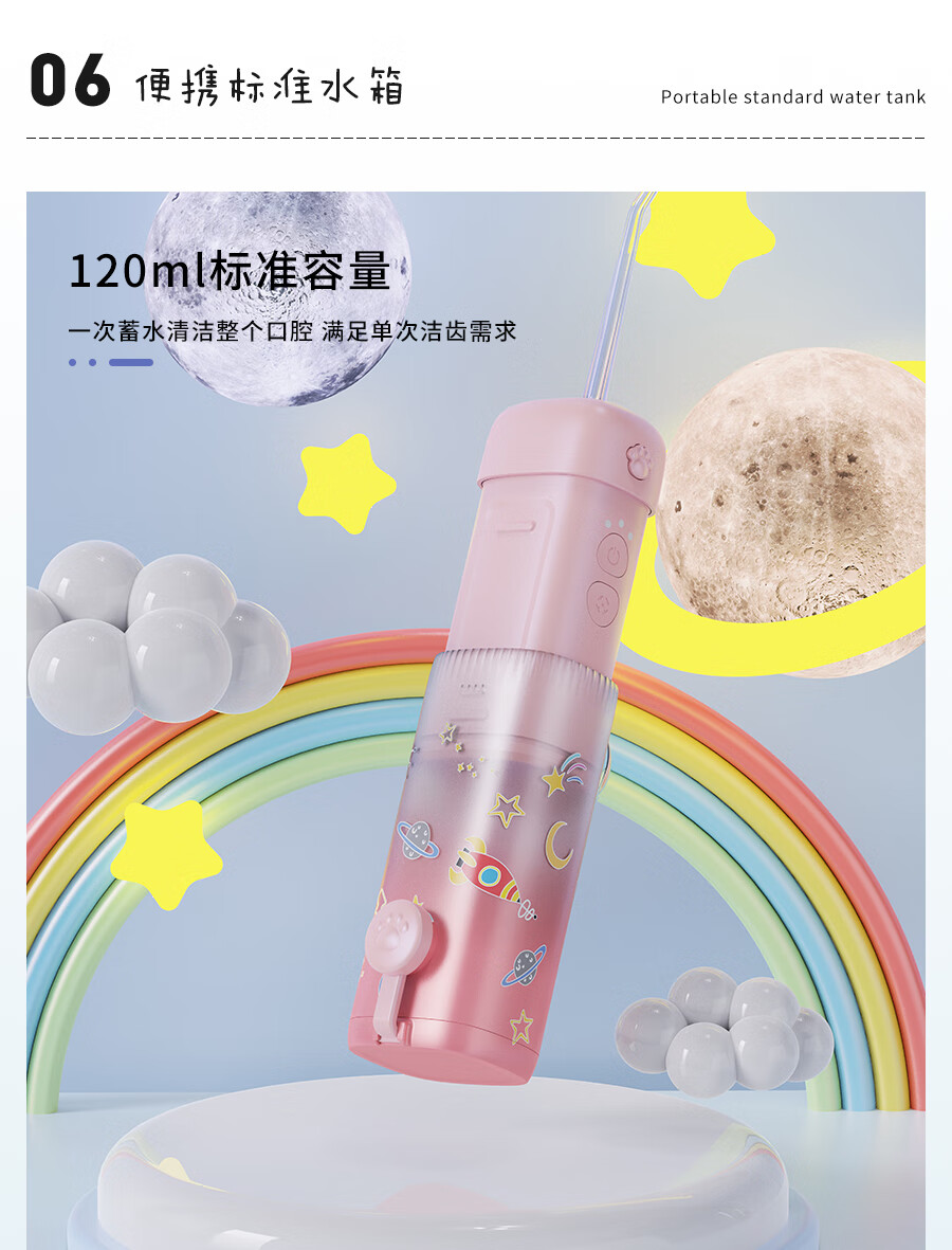 Orisalus儿童冲牙器【畅销海外12年】清洁口腔洁牙护齿洗牙器青少年正畸专用呵护小巧便携水牙线洁牙器礼物 蓝色 4支喷头 一键换挡+整机防水【儿童专用款】