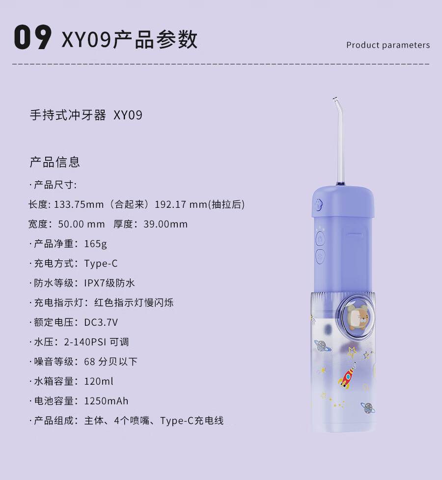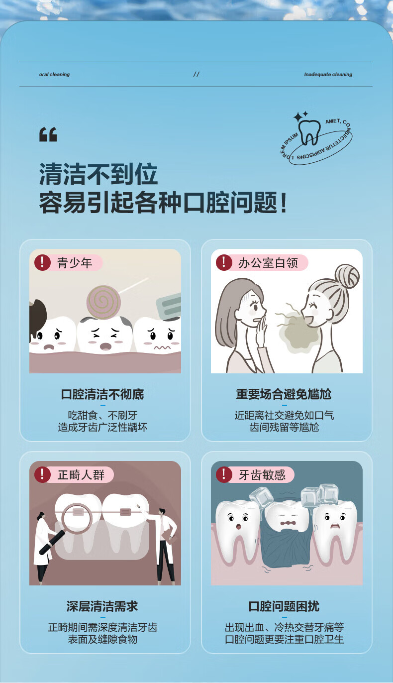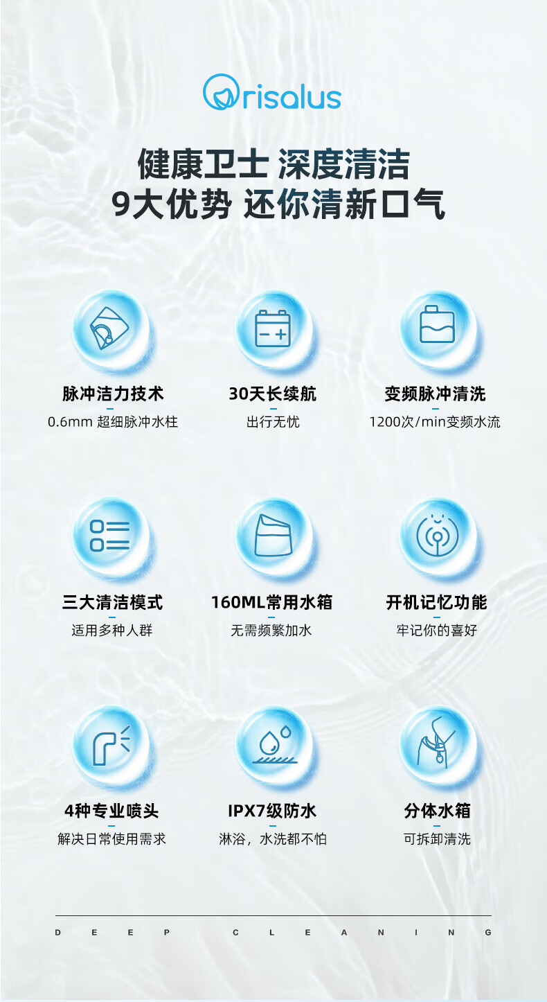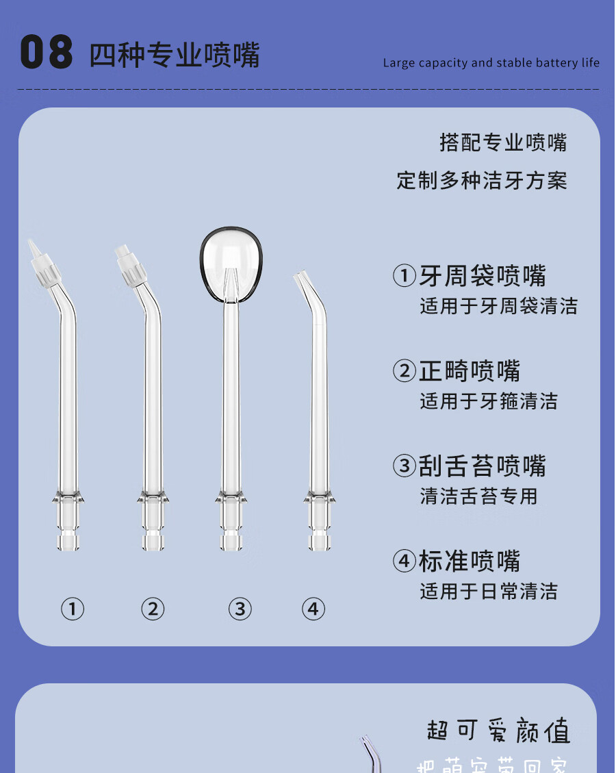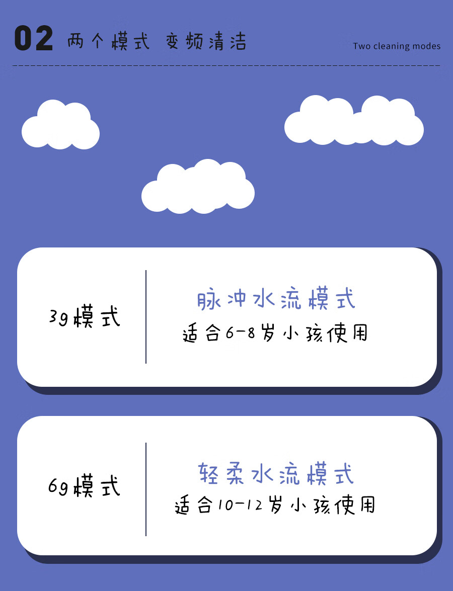 Orisalus儿童冲牙器【畅销海外12年】清洁口腔洁牙护齿洗牙器青少年正畸专用呵护小巧便携水牙线洁牙器礼物 蓝色 4支喷头 一键换挡+整机防水【儿童专用款】
