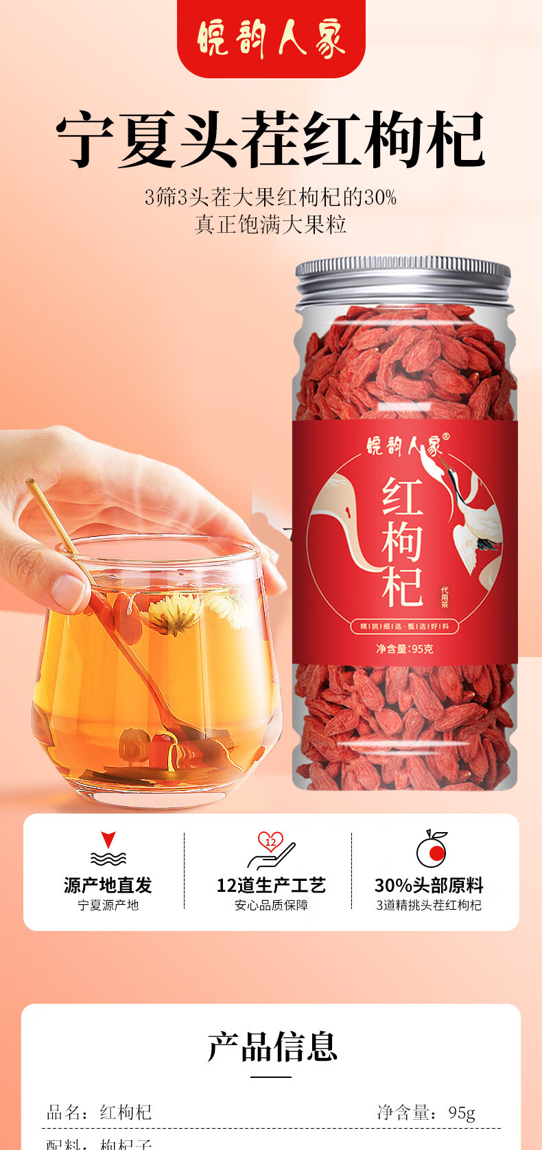 宁夏枸杞子红枸杞罐装头茬新货免洗大果干净批发泡茶泡酒 皖韵人家【红枸杞580粒】95g/瓶