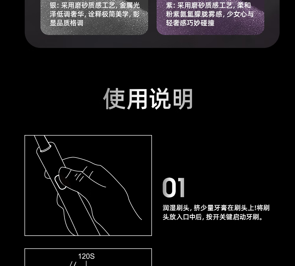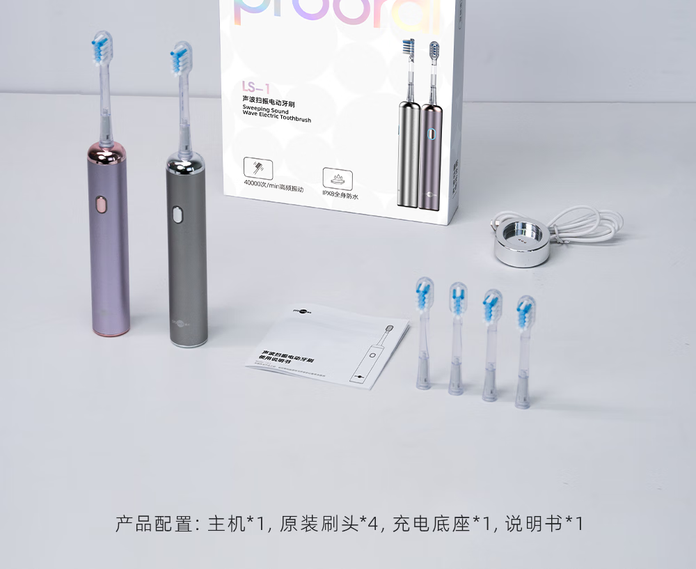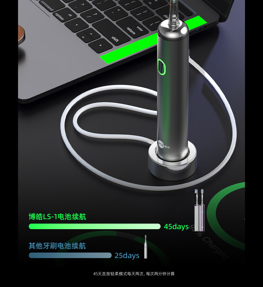 博皓电动牙刷成人男士女士扫震全自动智能牙刷磁吸充电铝合金情侣牙刷 送朋友父母生日情人节礼物 LS-1 银色+紫色