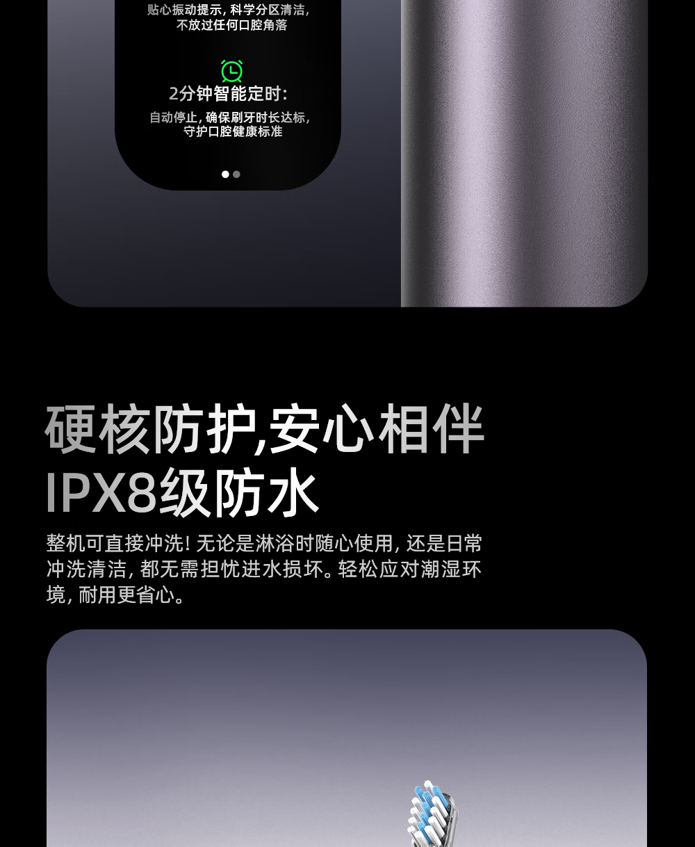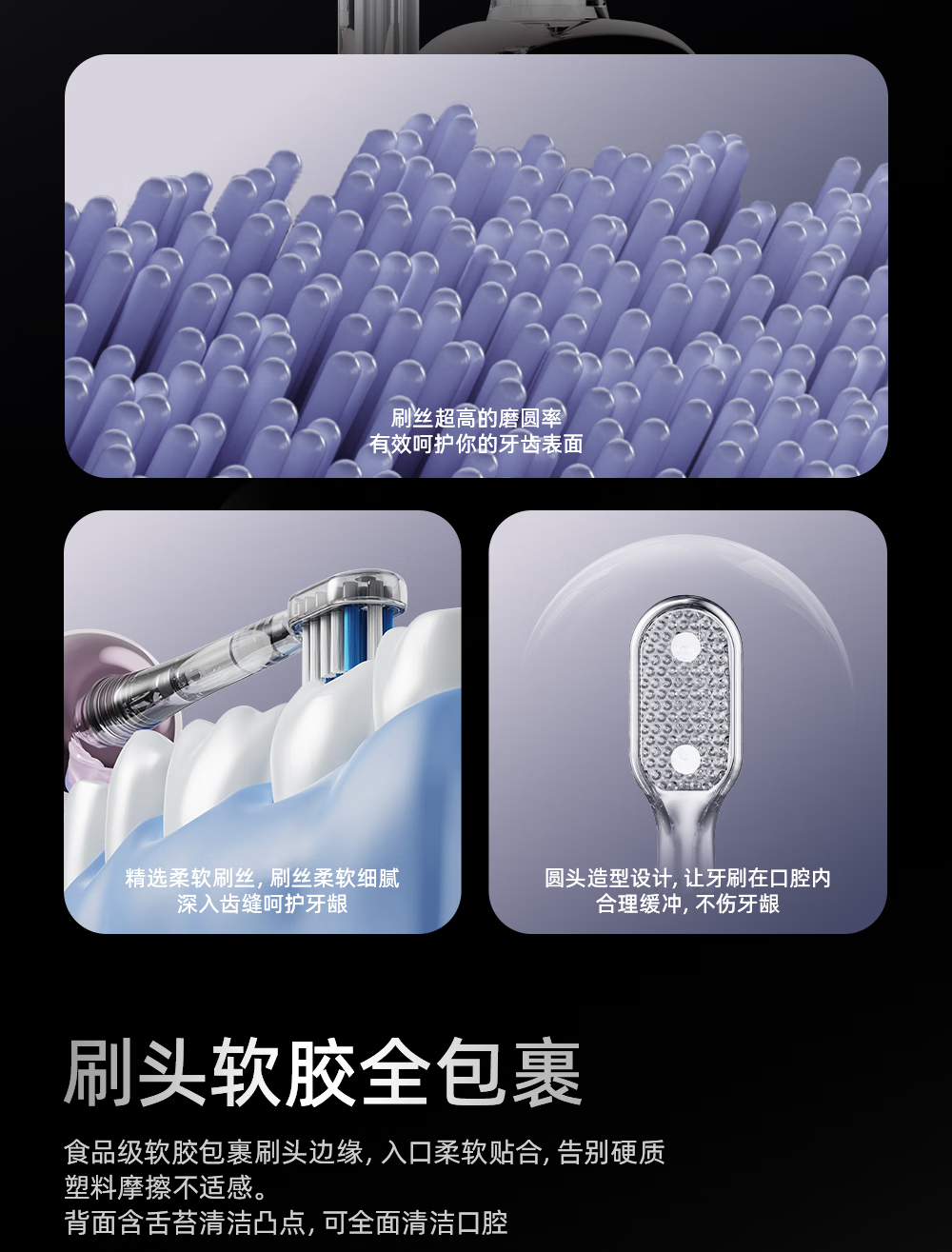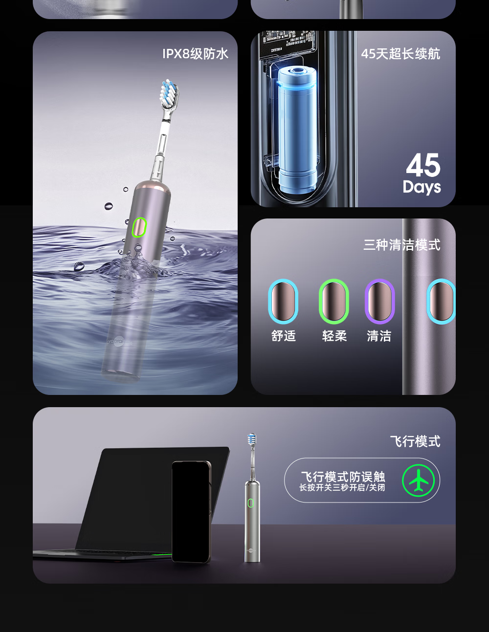 博皓电动牙刷成人男士女士扫震全自动智能牙刷磁吸充电铝合金情侣牙刷 送朋友父母生日情人节礼物 LS-1 银色+紫色