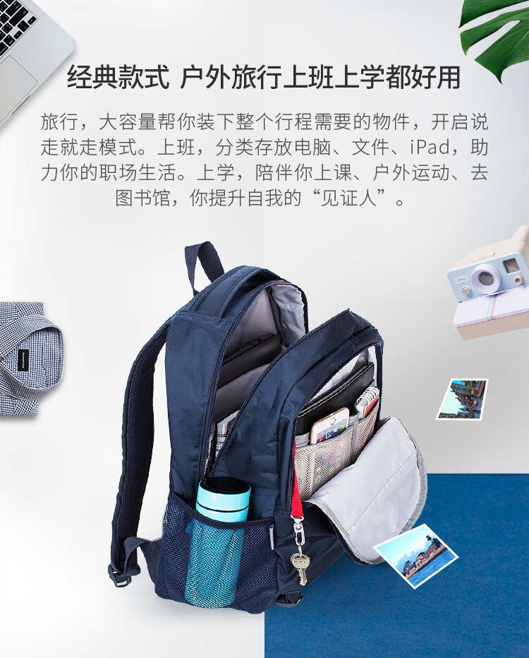 卡拉羊【爆款推荐】30L大容量书包男休闲透气双肩包旅行背包CX5558 藏青