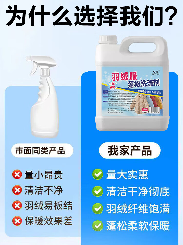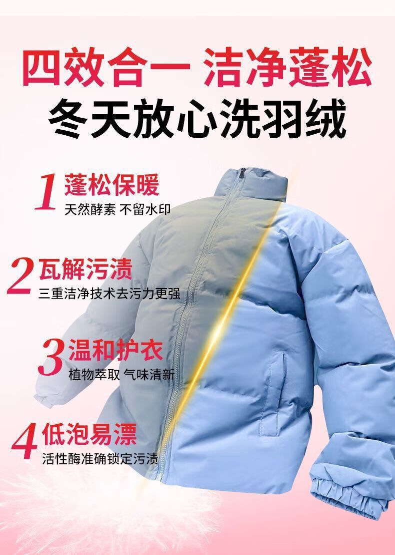全耀羽绒服蓬松洗涤剂服蓬松剂洗衣机专用洗衣液去污防结块棉袄清洗剂 羽绒服蓬松剂+防结块+可机洗 2瓶