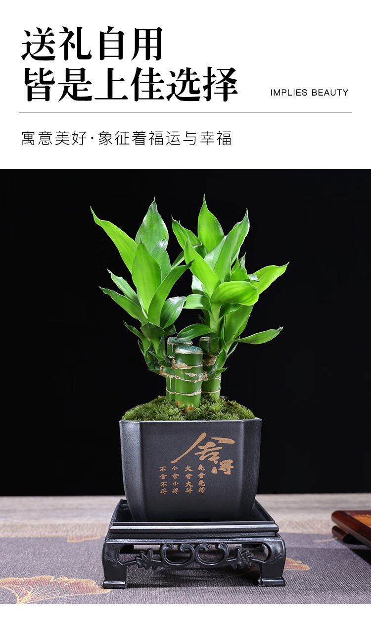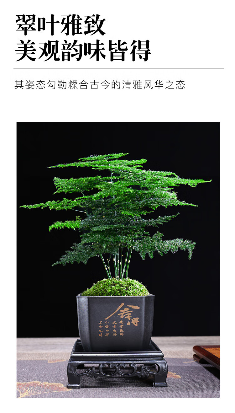 幼薇文竹盆栽室内绿植好养桌面古风艺术小盆景桌面茶几办公摆件装饰 富贵竹丛林+四方舍得PVC+方底盘 带盆栽好