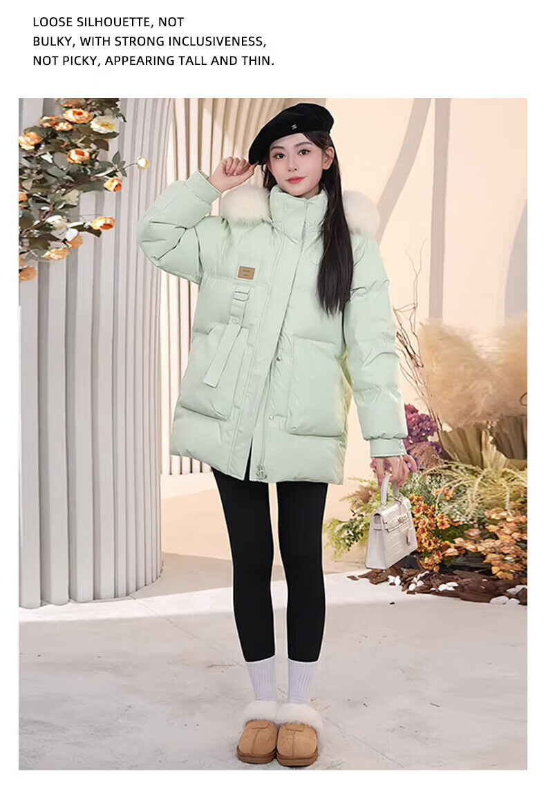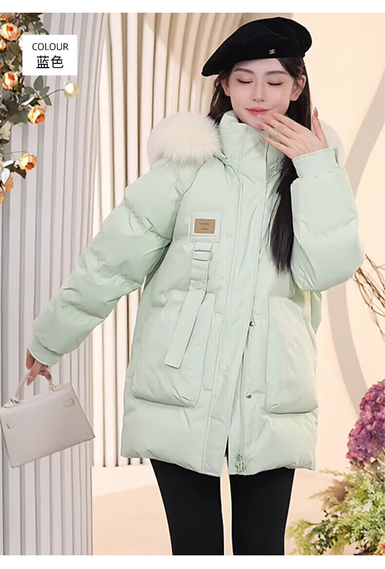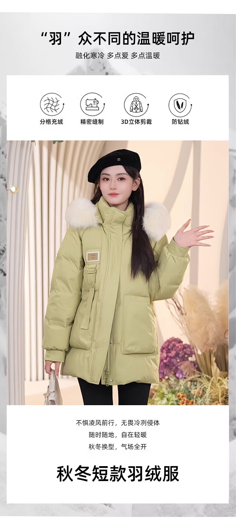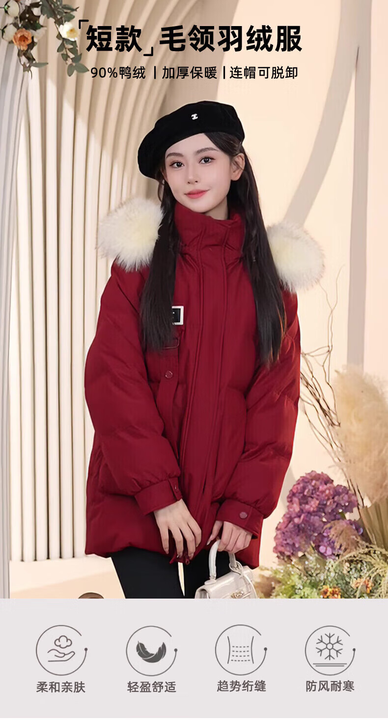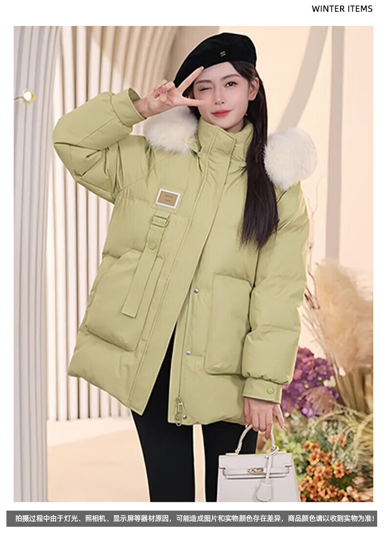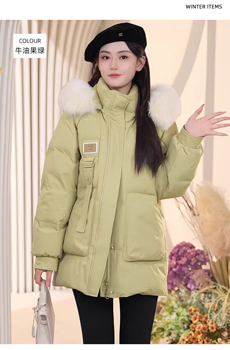 鸭鸭(YAYA)羽绒服女厚款连帽毛领短款保暖2025冬季新款时尚百搭羽绒外套 牛油果绿 M (160)