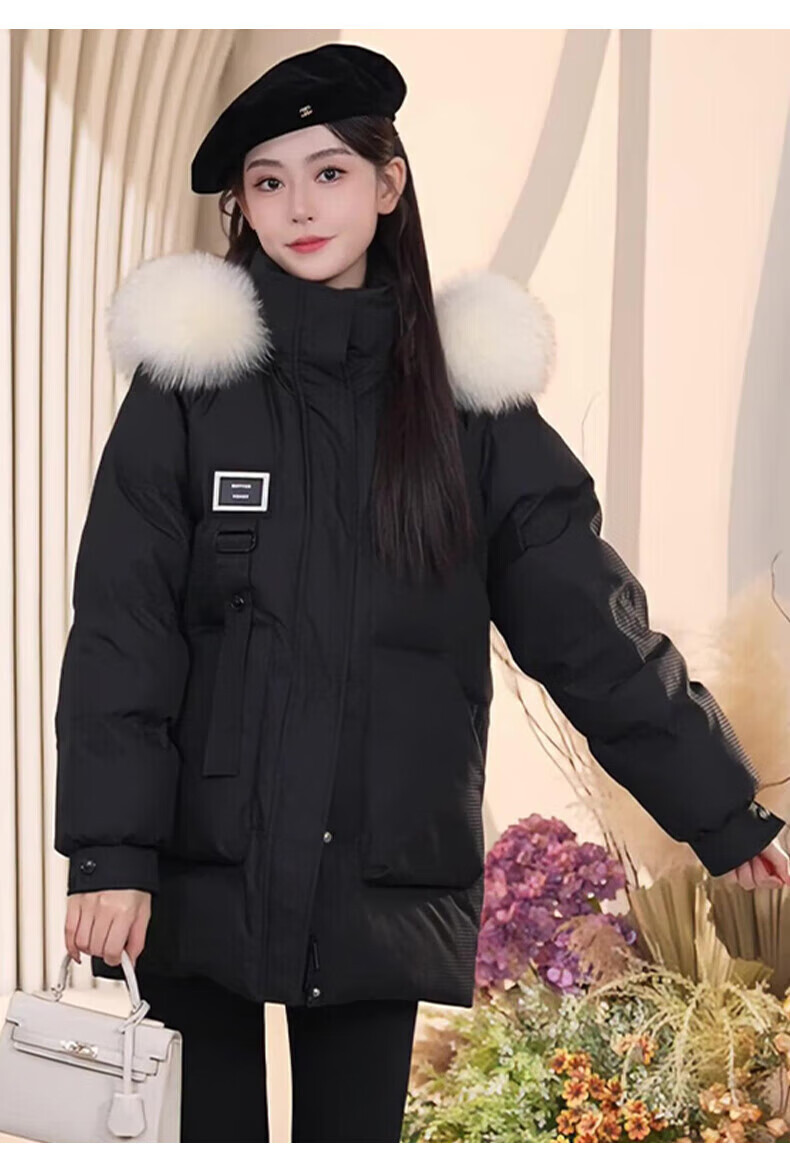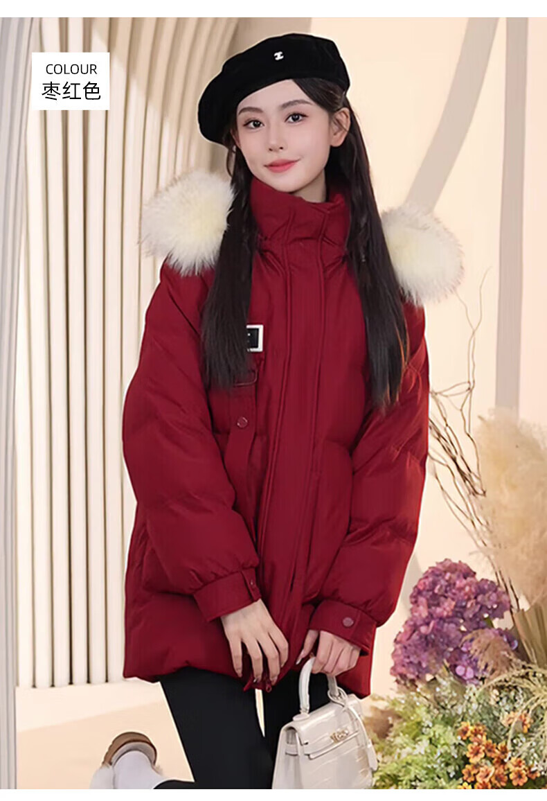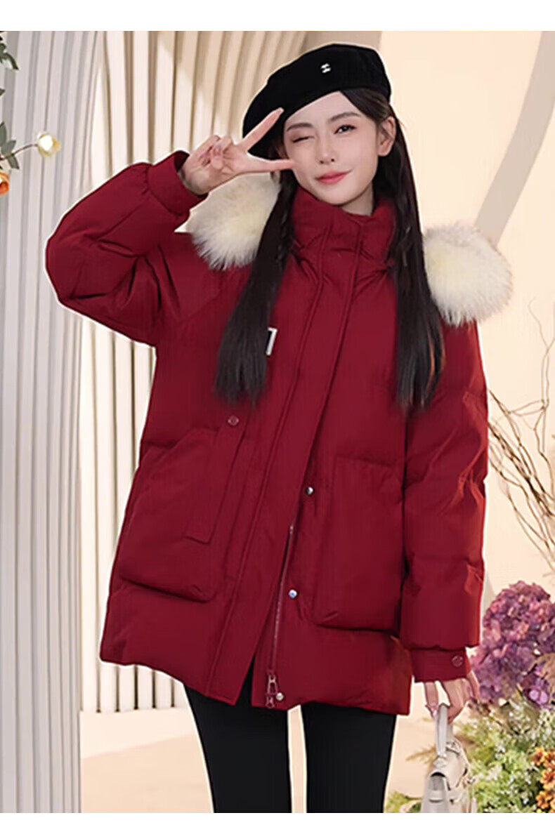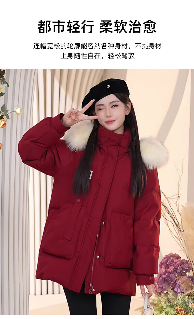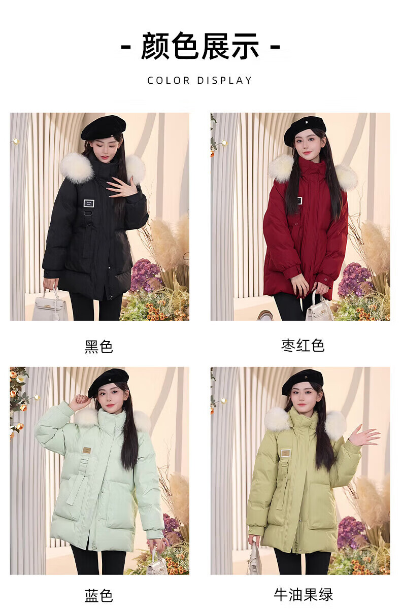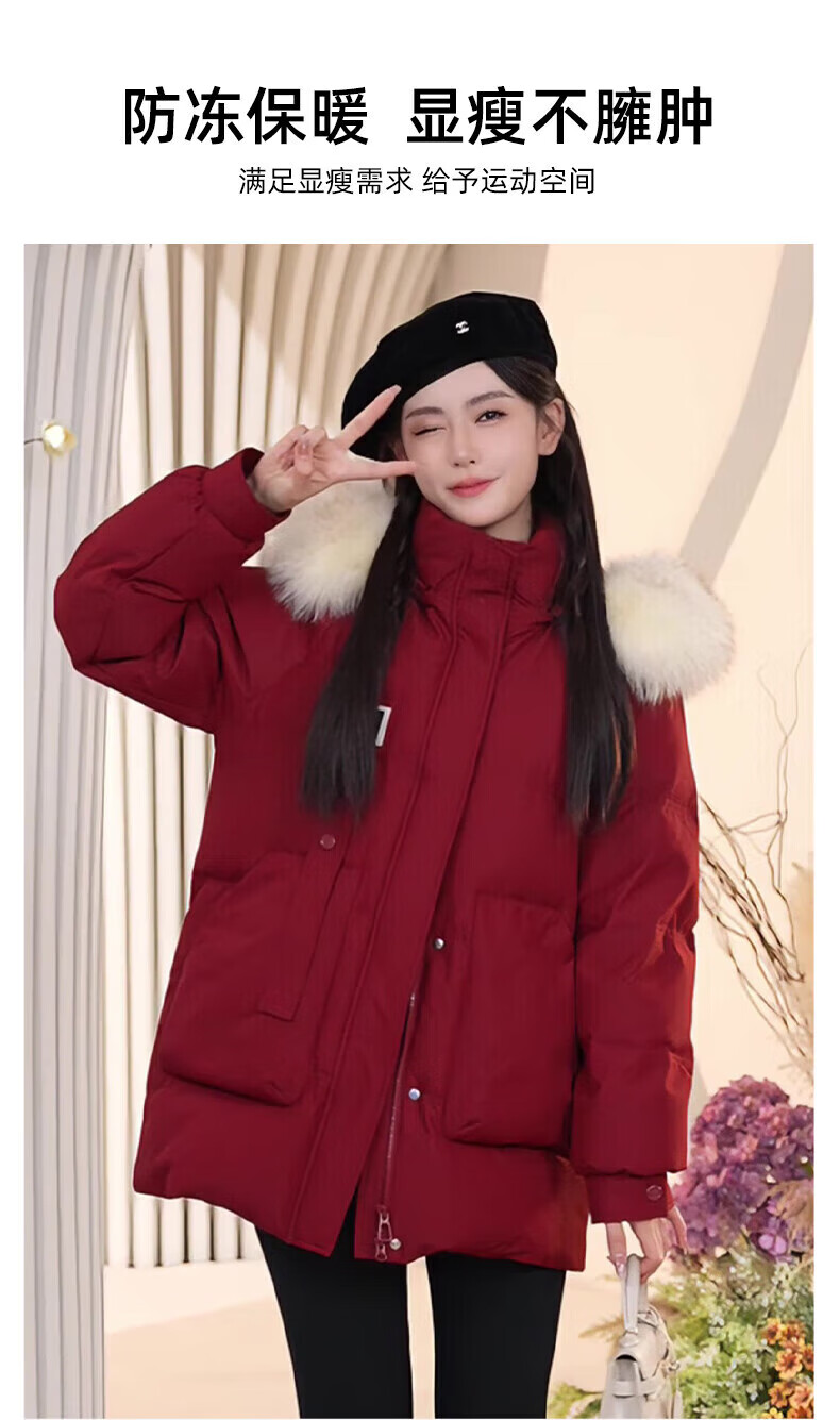 鸭鸭(YAYA)羽绒服女厚款连帽毛领短款保暖2025冬季新款时尚百搭羽绒外套 牛油果绿 M (160)