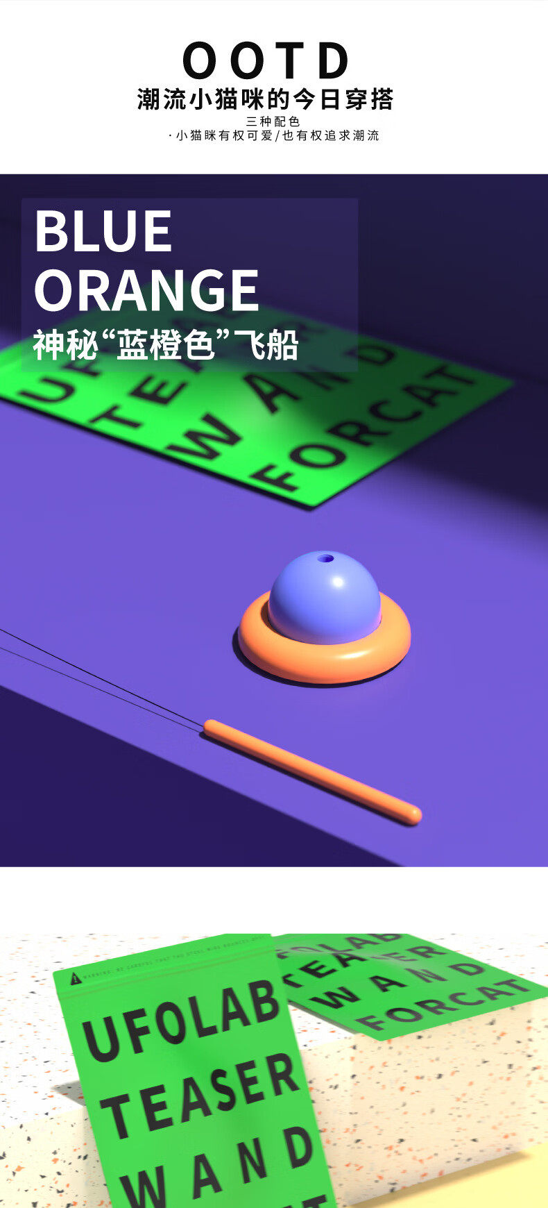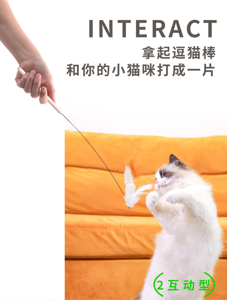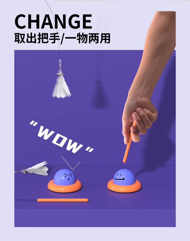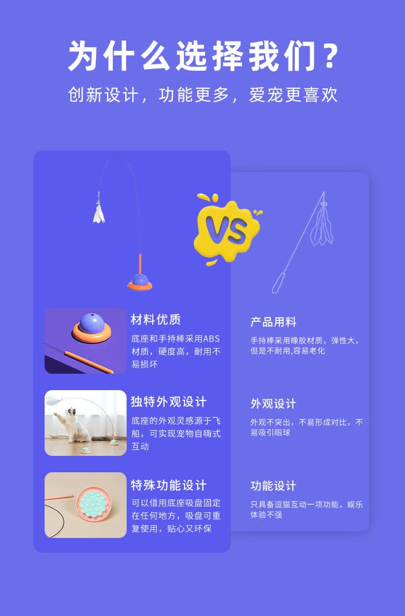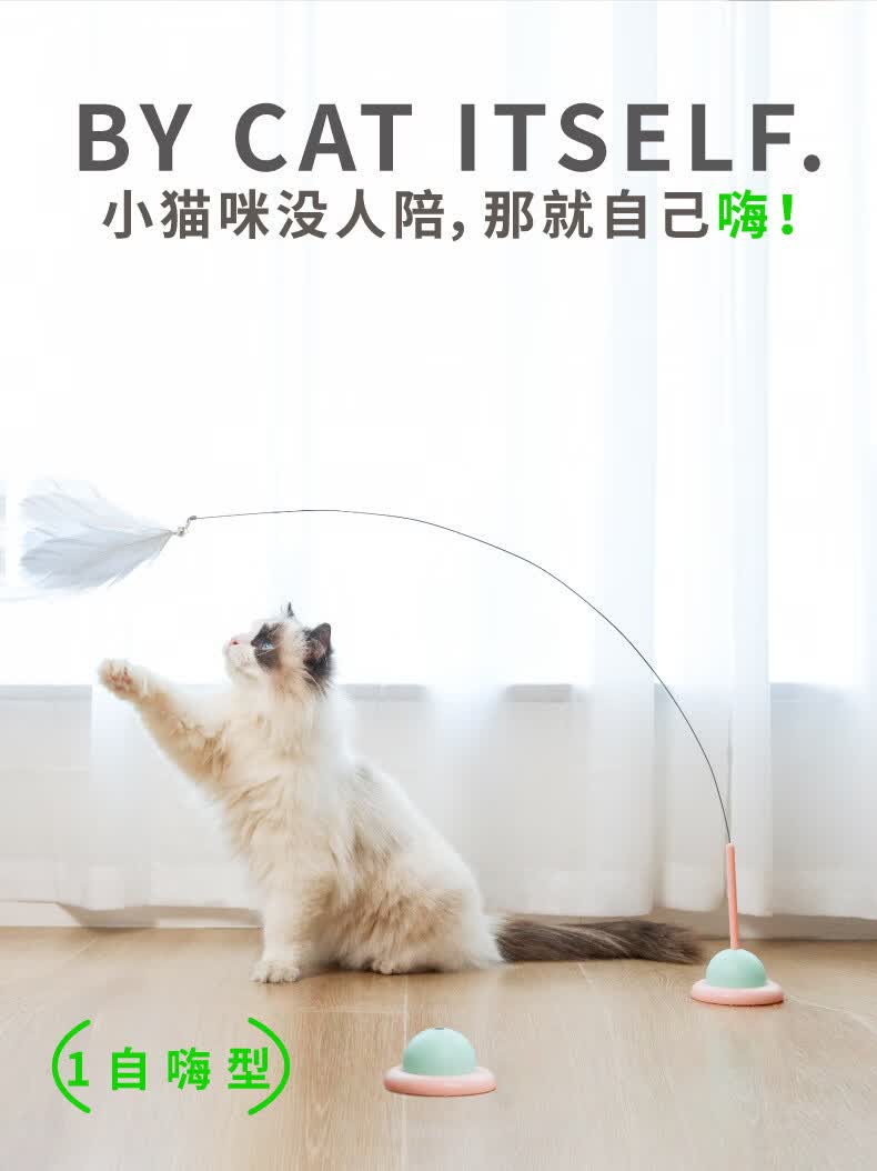 吸盘逗猫棒钢丝羽毛替换头耐咬可拆专用宠物猫咪自嗨玩具批发 橙蓝色