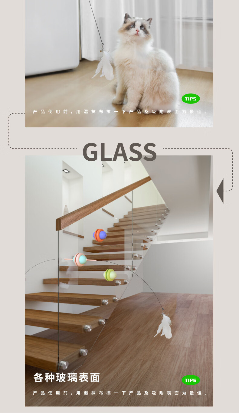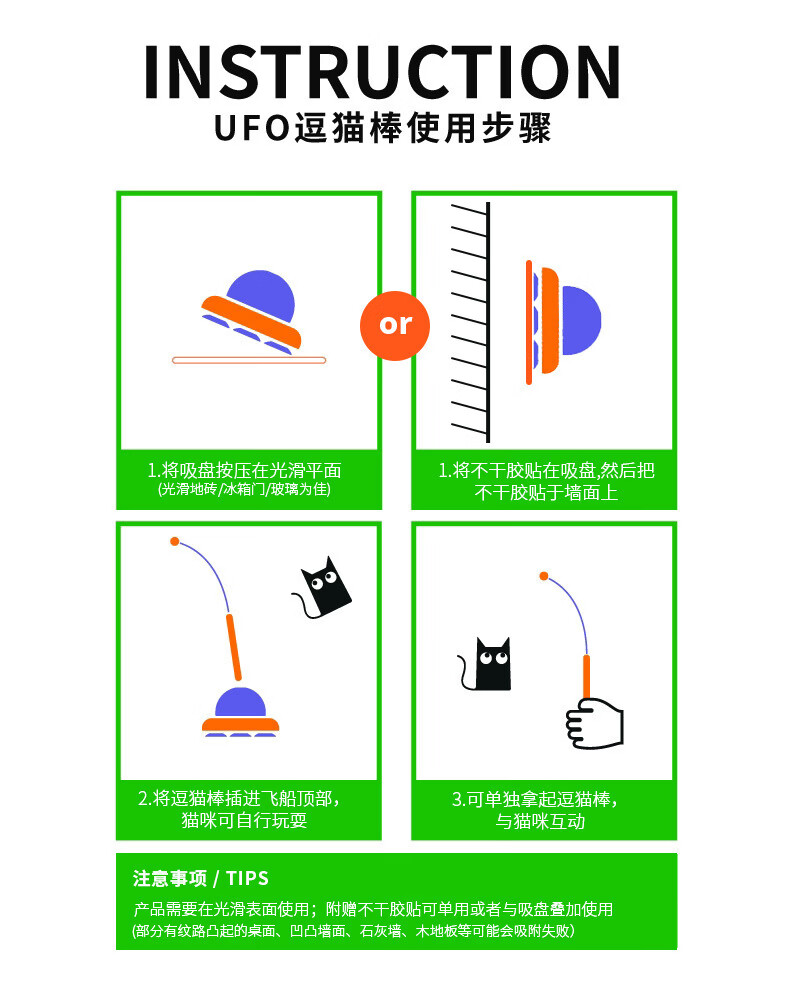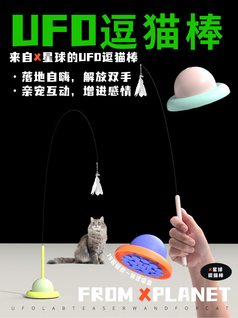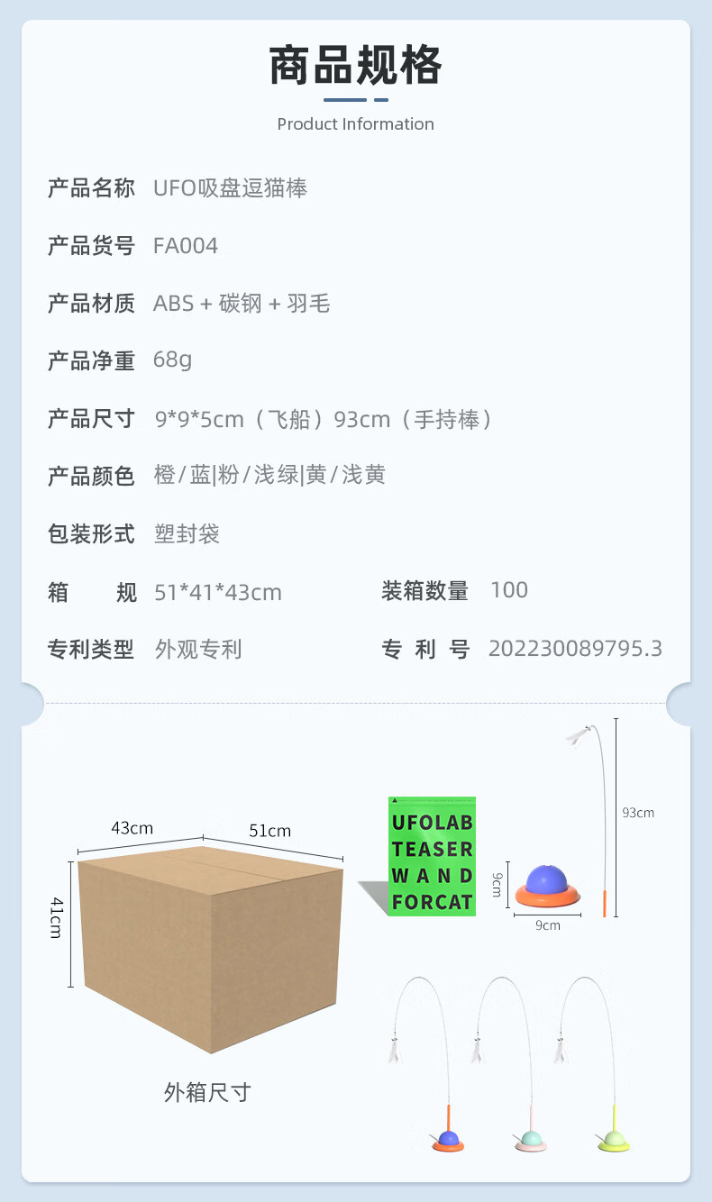 吸盘逗猫棒钢丝羽毛替换头耐咬可拆专用宠物猫咪自嗨玩具批发 橙蓝色