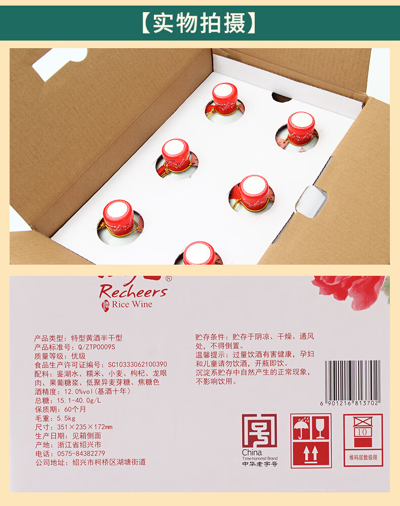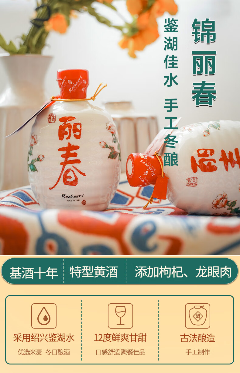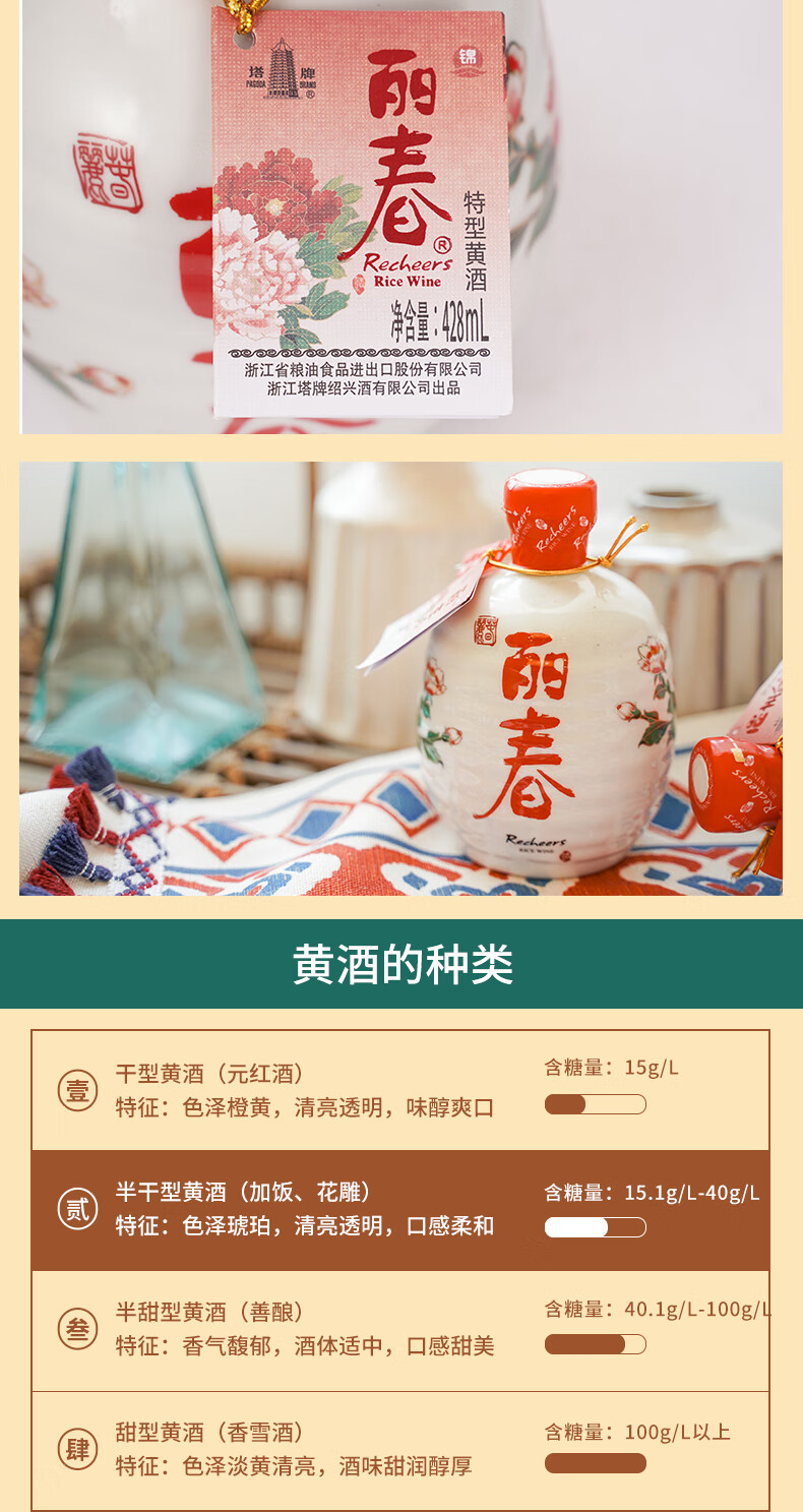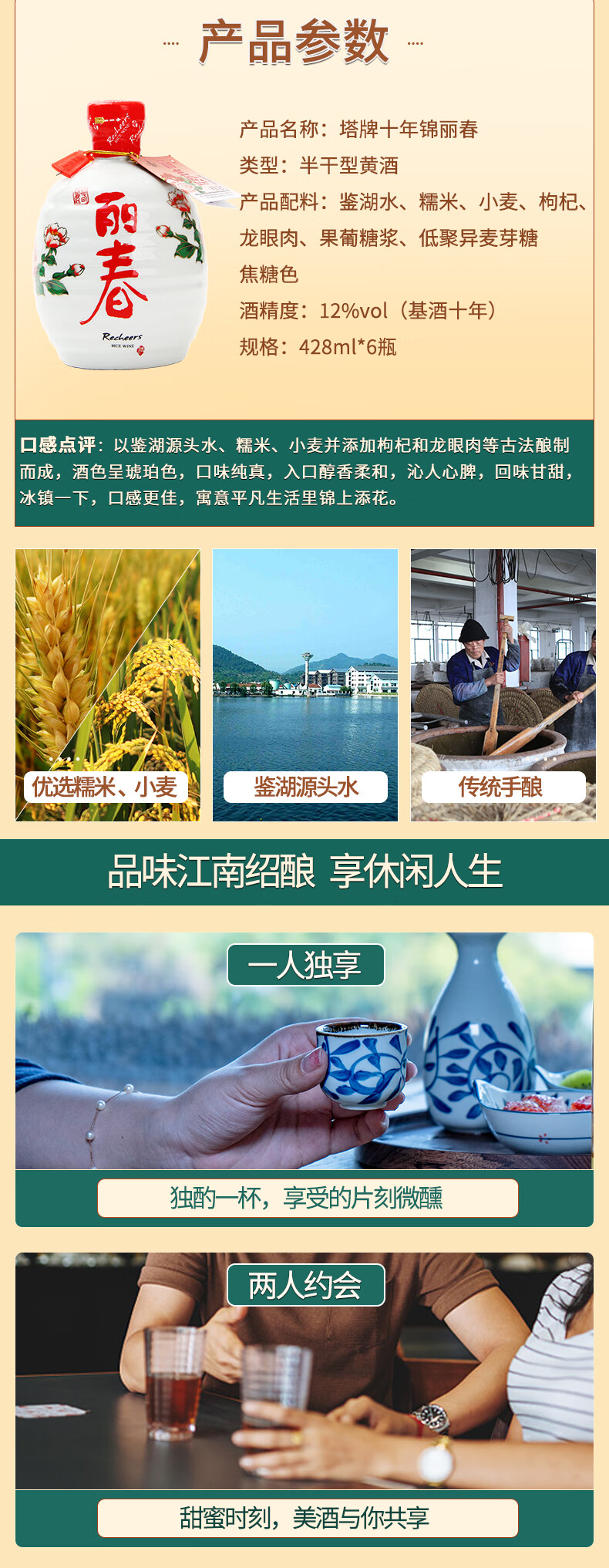 塔牌 十年锦丽春 半干型绍兴黄酒 立春花雕酒 礼盒送礼 428mL 6瓶 礼盒装
