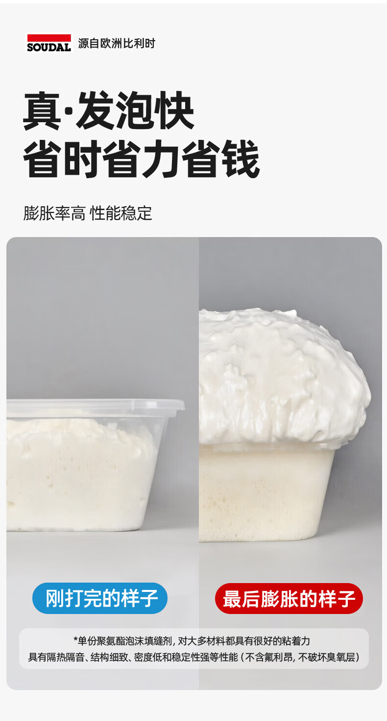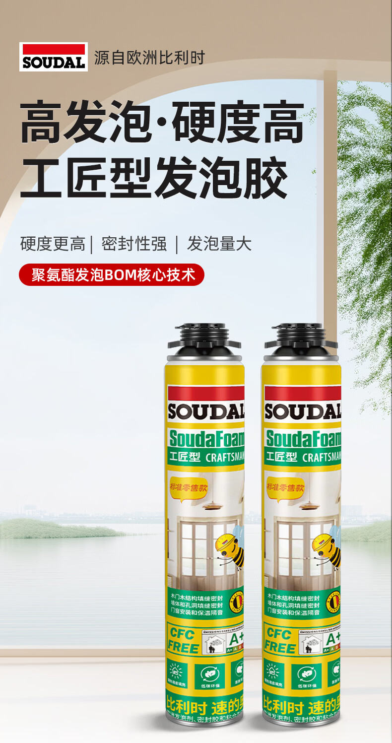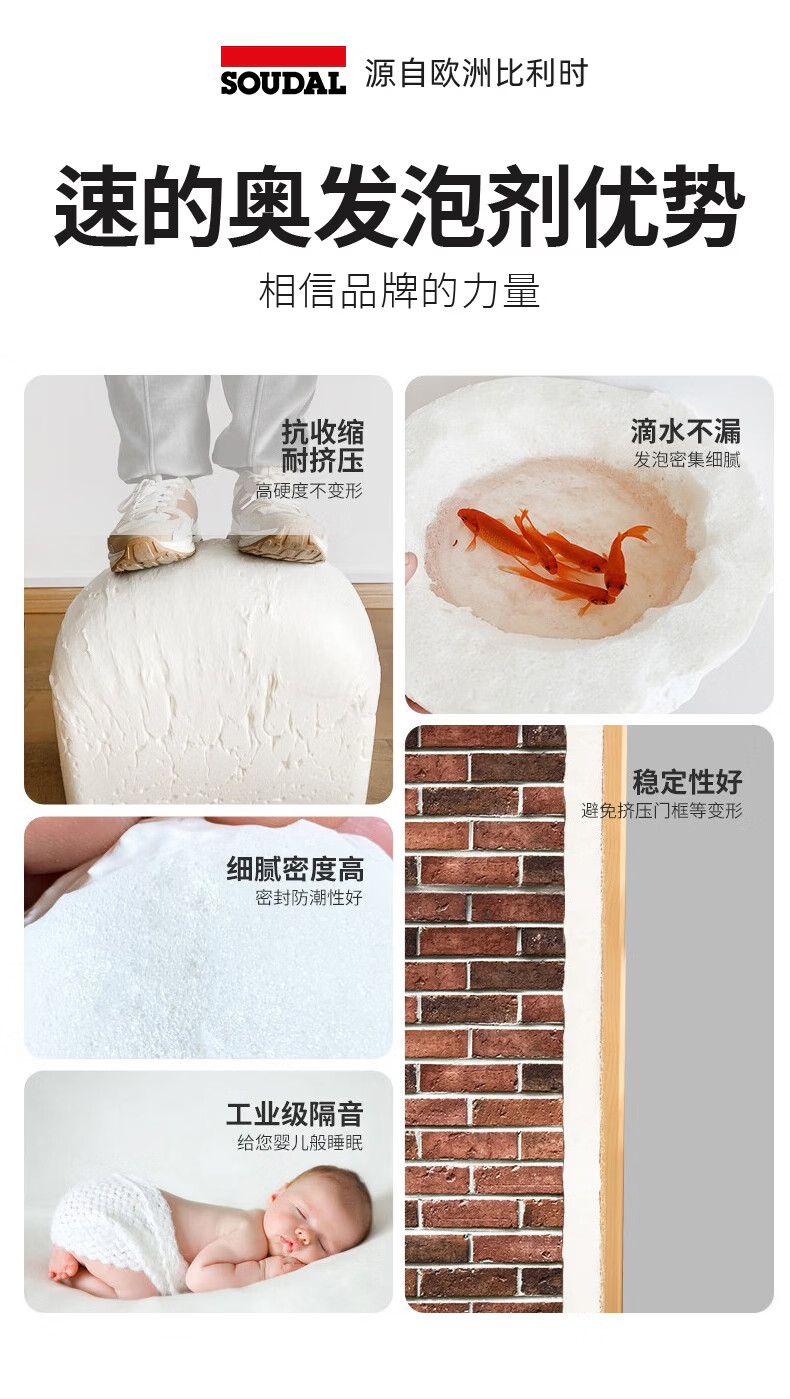 速的奥(SOUDAL)小蜜蜂发泡胶门窗填充堵缝剂防水补漏泡沫密封造景隔音 900g 快速固化 高发泡 1瓶 比利时皇室指定品牌