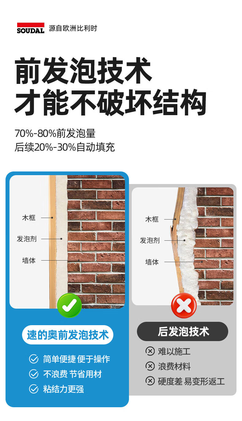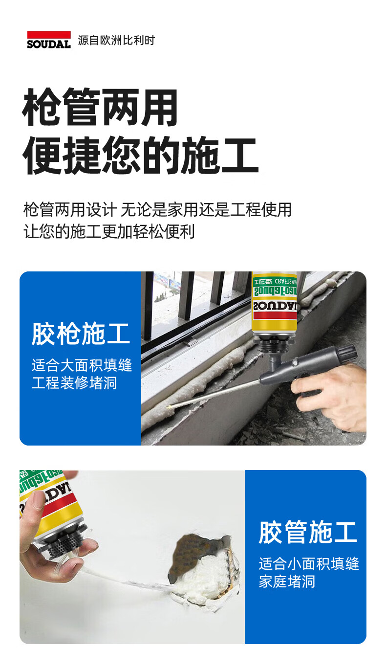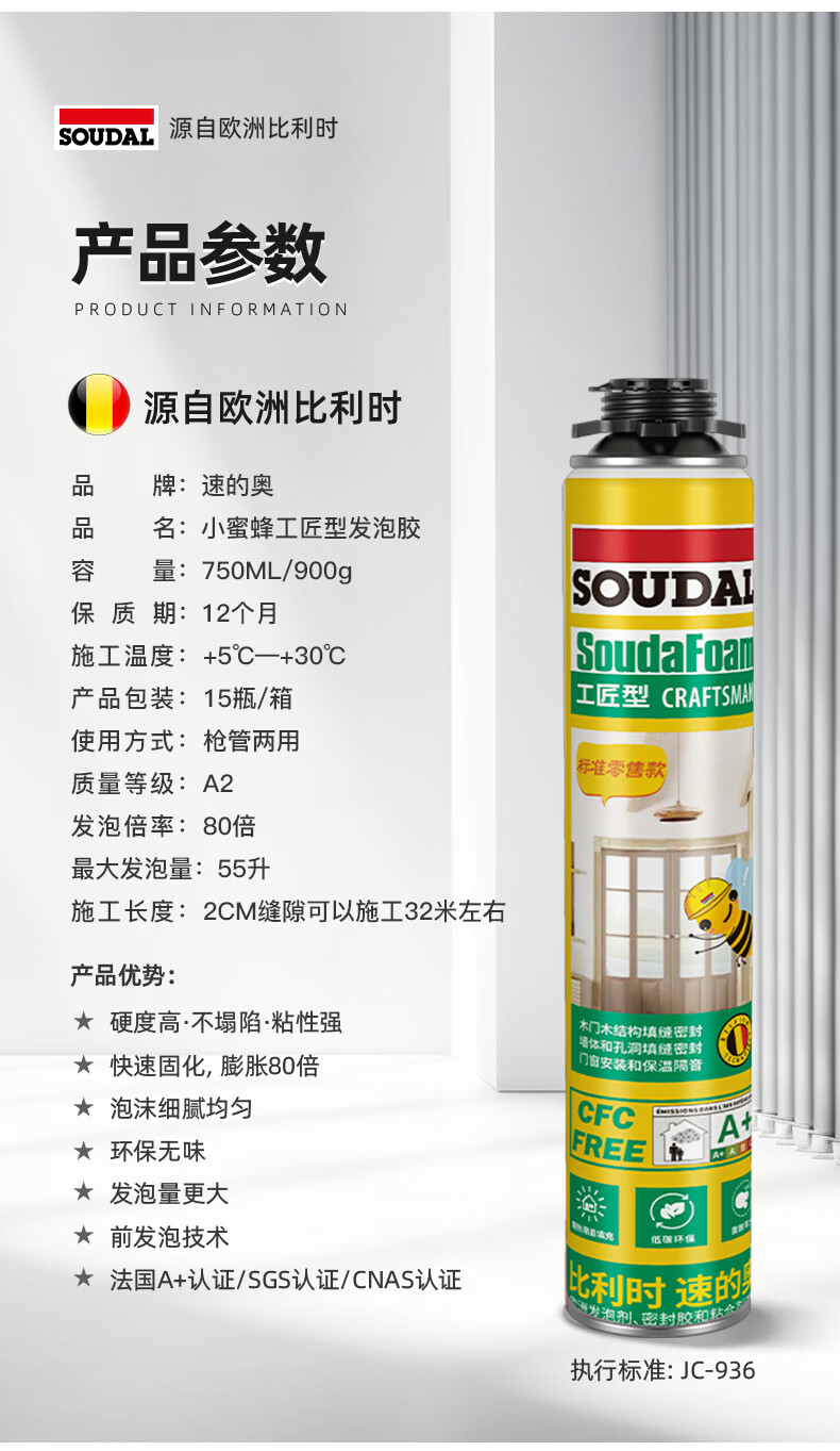 速的奥(SOUDAL)小蜜蜂发泡胶门窗填充堵缝剂防水补漏泡沫密封造景隔音 900g 快速固化 高发泡 1瓶 比利时皇室指定品牌